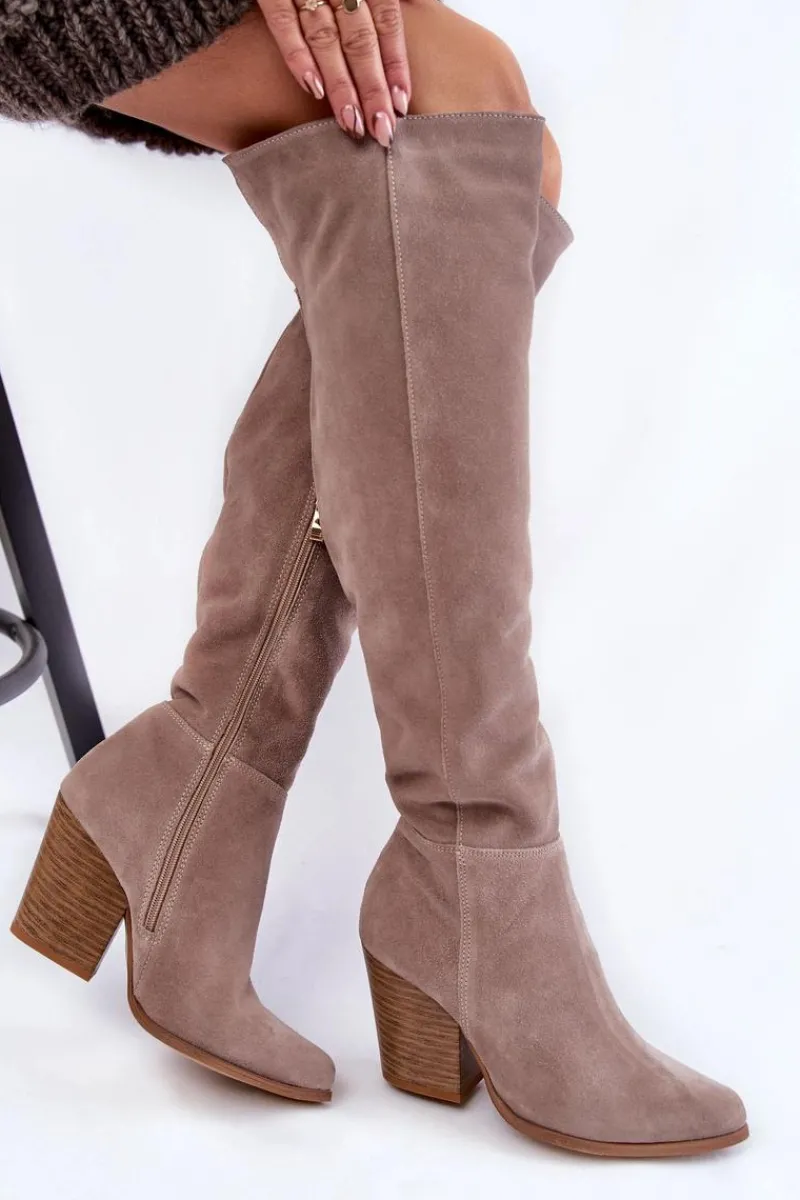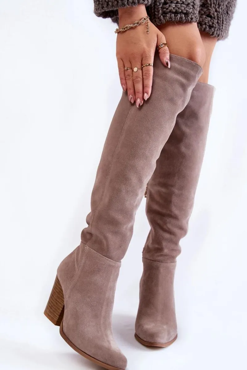 Wyjątkowe kozaki damskie o fasonie muszkieterek. Wysoka cholewka za kolano jest wsuwana i dodatkowo zamykana na suwak. Zapiętek jest usztywniany, co zapewni stabilizację stopy. Model wykonany ze skór wysokiej jakości. Kozaki te zostały wewnątrz ocieplone kocem obuwniczym. Miękka wkładka zapewni komfort podczas użytkowania. Przy wyborze rozmiaru prosimy kierować tabelą rozmiarów.
