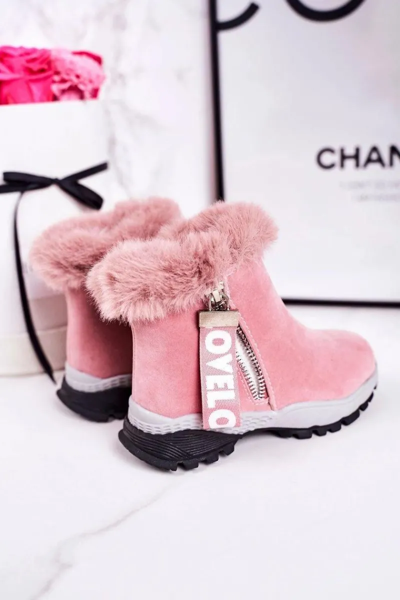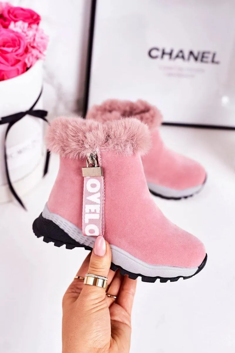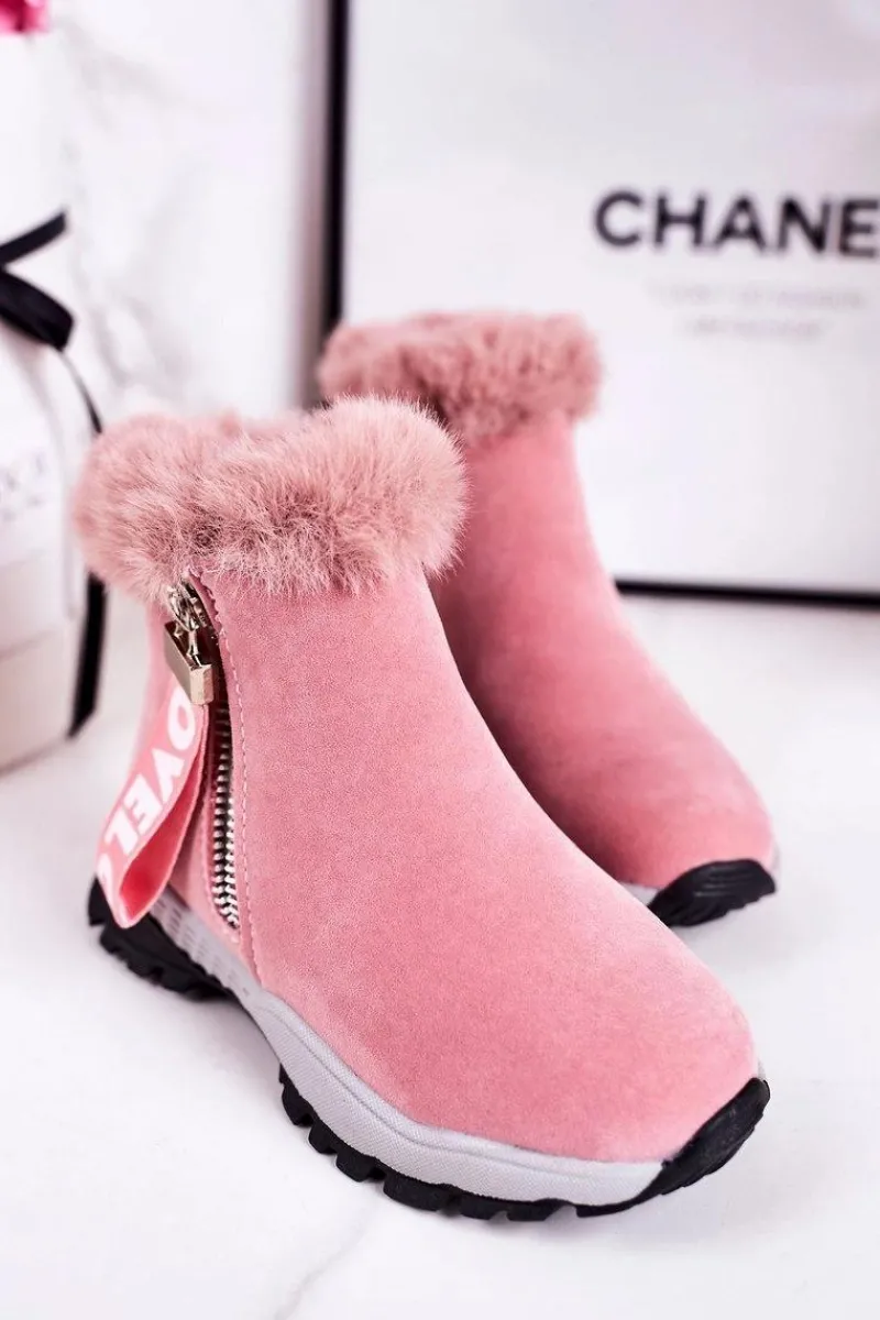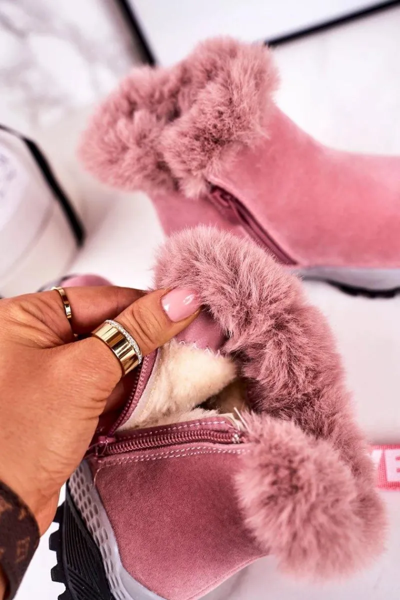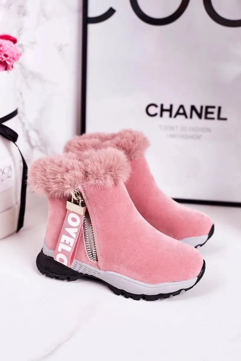 Hot Boto Dziecięce Ocieplane Botki Śniegowce Z Futerkiem Różowe Love-Love