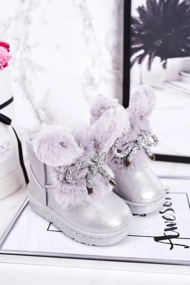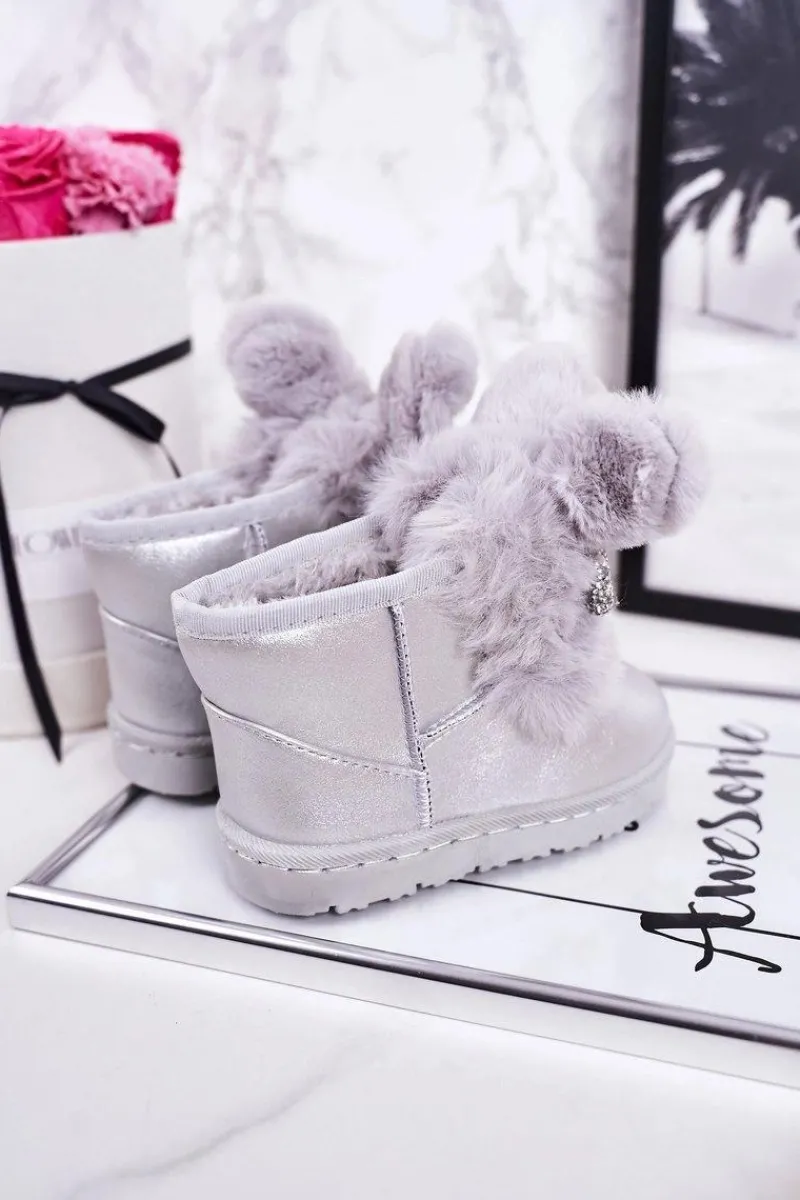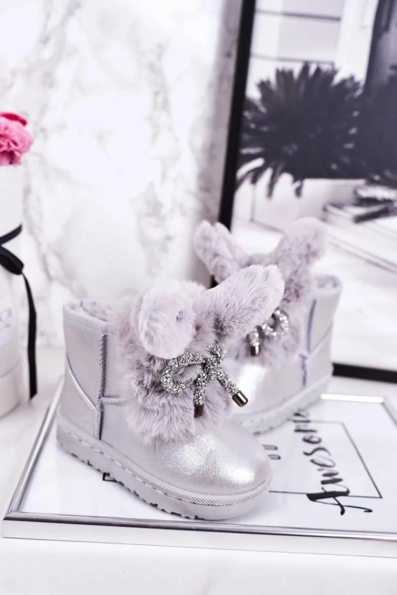 Hot Boto Dziecięce Śniegowce Ocieplane Futerkiem Z Uszami Srebrne Bunny