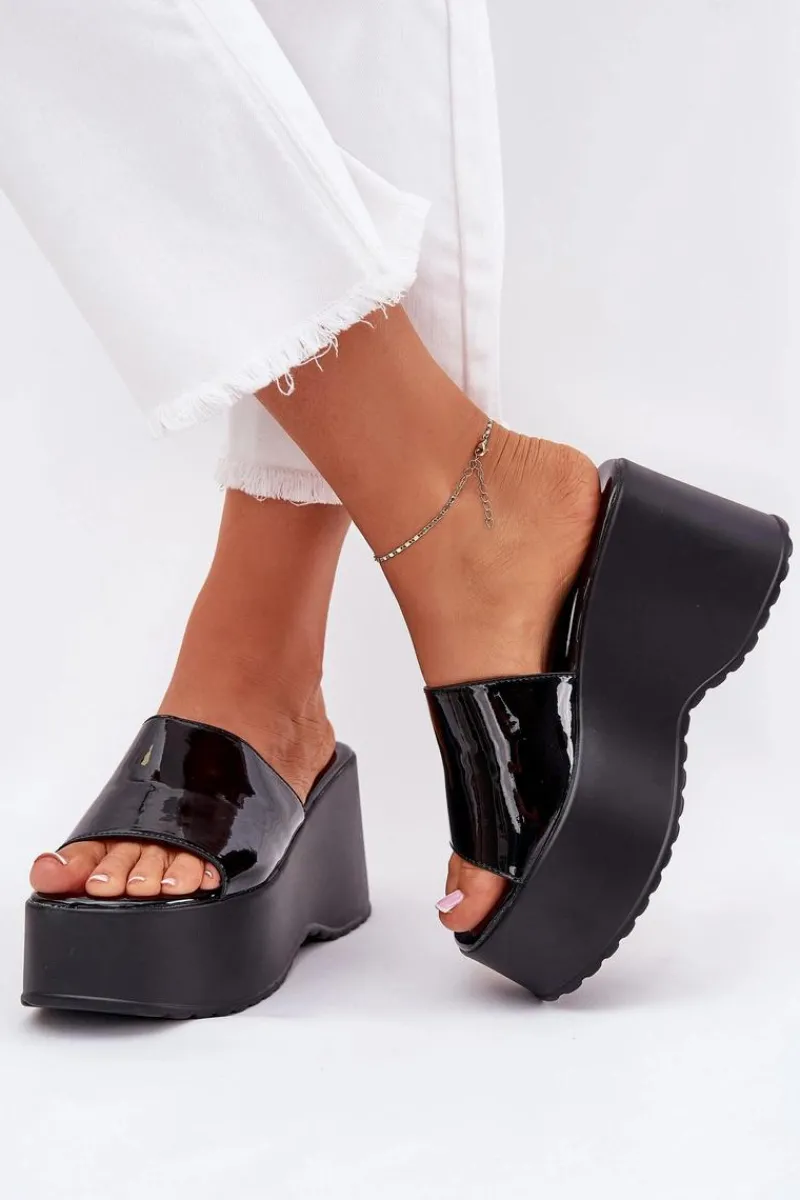 Klasyczne klapki damskie wykonane z eko skóry to połączenie stylu, komfortu. Osadzone na platformie i koturnie, zapewniają stabilność i dodatkową wysokość, jednocześnie utrzymując wygodę przez cały dzień. Ich uniwersalny design sprawia, że będą doskonałym uzupełnieniem codziennych i letnich stylizacji, idealnie pasując do zarówno sukienek, jak i spodni. Przy wyborze rozmiaru prosimy sugerować się tabelą rozmiarów.