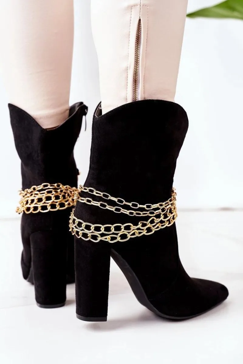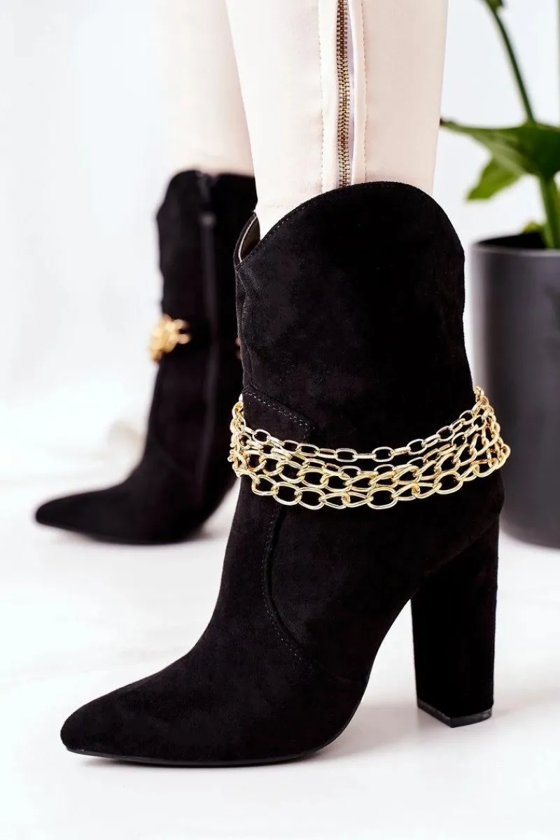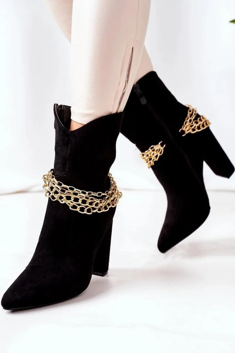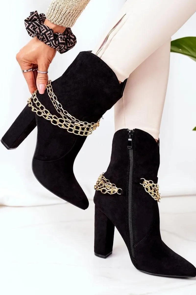 Wygodne i stylowe botki na słupku. Wnętrze butów ocieplone jest miłym w dotyku kocem obuwniczym. Botki wykonane są z eko zamszu.Przy wyborze rozmiaru prosimy sugerować się tabelą rozmiarów.