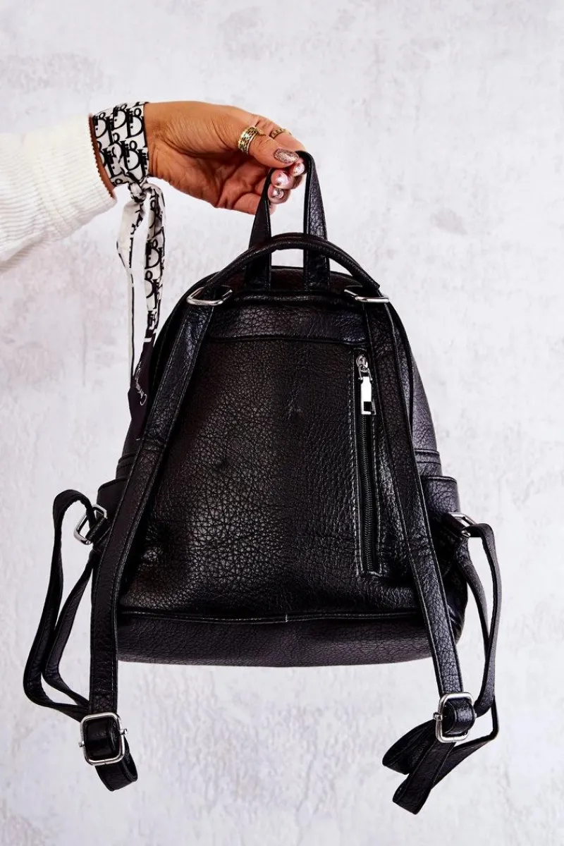 Świetny plecak na różne podróże – te małe i te duże! Idealnie sprawdzi się podczas wycieczek rowerowych, na spotkanie z przyjaciółmi czy niewielkie zakupy! Posiada dużą komorę zapinaną na suwak, w której znajduje się mała otwarta kieszeń oraz kieszeń zapinana na suwak. Po bokach plecaka znajdują się otwarte kieszenie. Z zewnętrznej strony plecak posiada dwie kieszonki zapinane na suwak – jedną mniejszą, drugą większą. Na tyle natomiast znajduje się także jedna kieszeń zapinana na suwak. Paski plecaka są regulowane, dlatego możesz go odpowiednio dopasować do własnych potrzeb. Został wykonany z zewnątrz z eko skóry, natomiast środek jest wykonany z tkaniny.