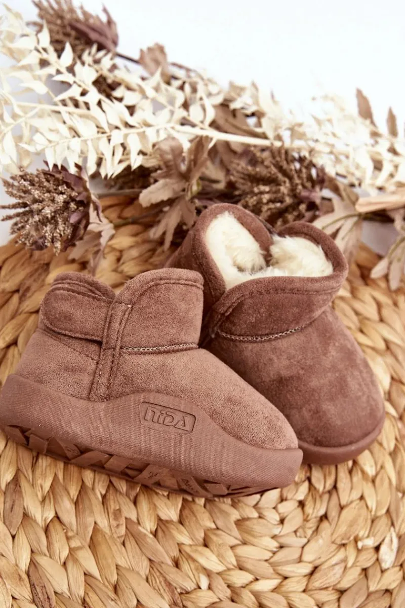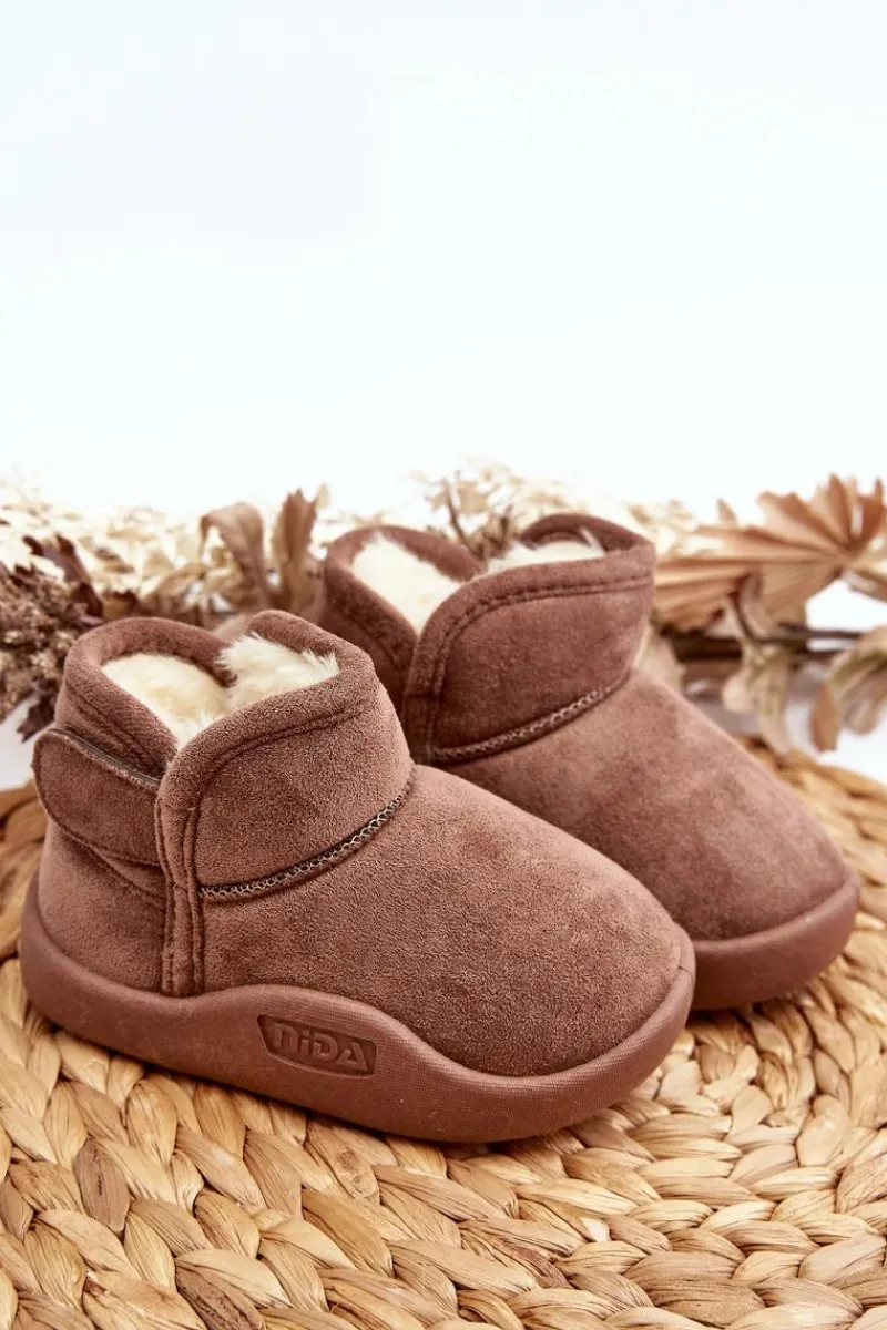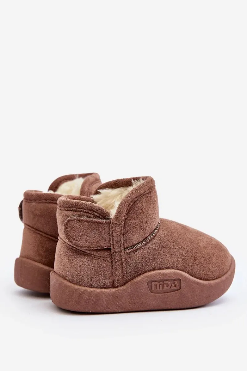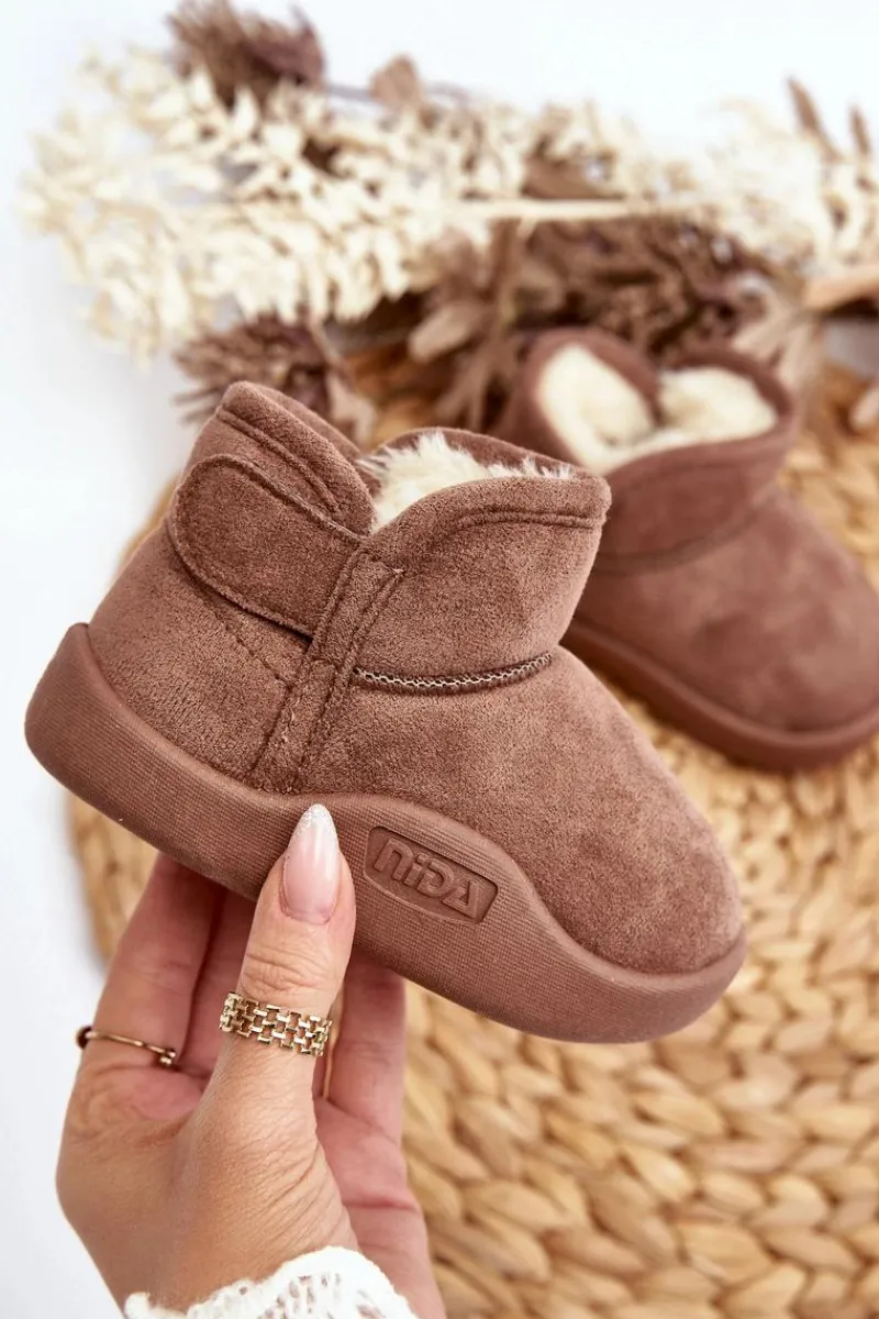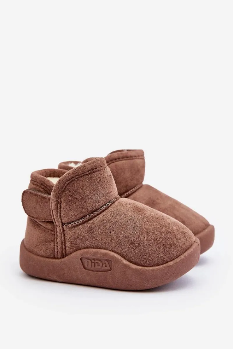 Śniegowce dziecięce zapinane na rzep. Wykonane z eko zamszu. W środku ocieplone grubym futerkiem. Osadzone na elastyczniej podeszwie, z gumowego tworzywa. Idealne na jesień i zimę! Przy wyborze rozmiaru prosimy kierować tabelą rozmiarów.