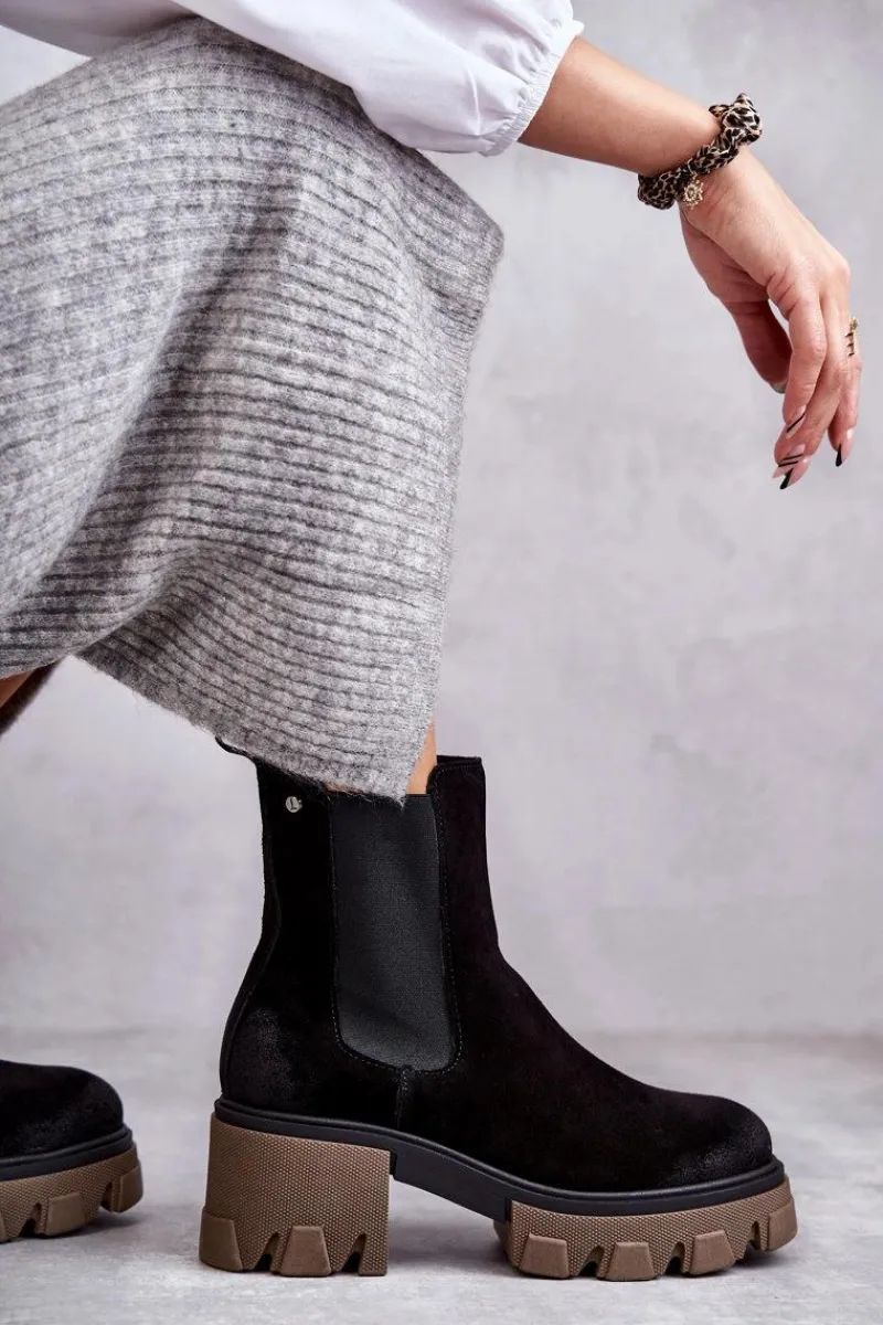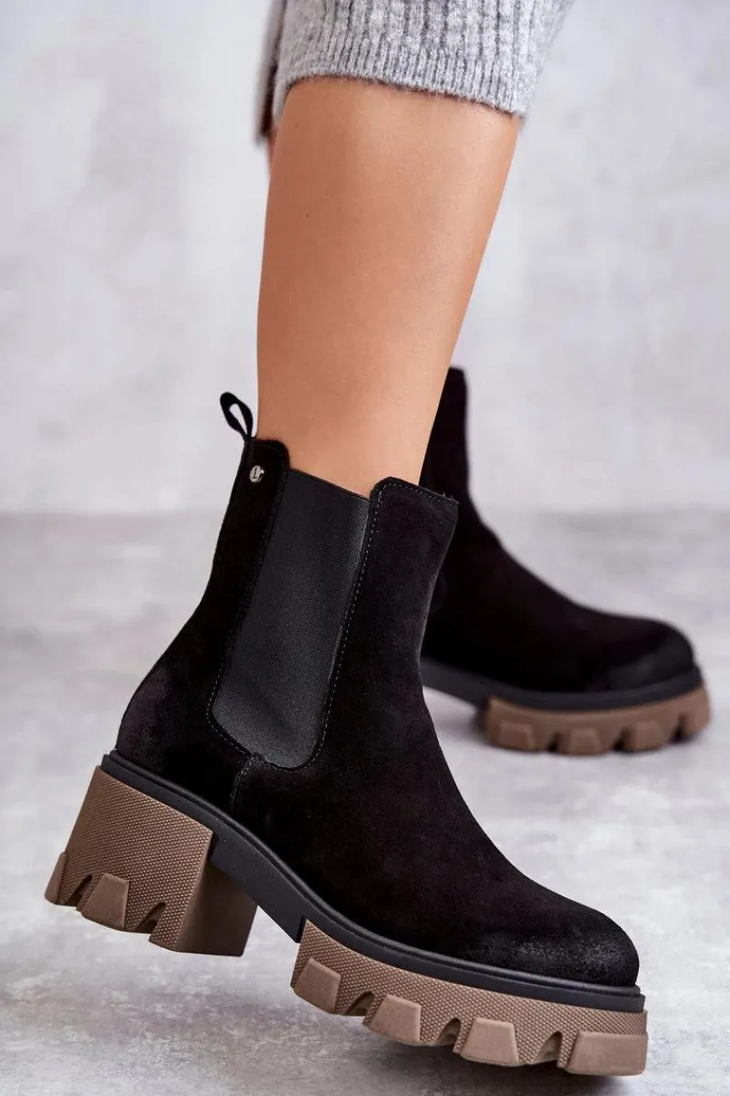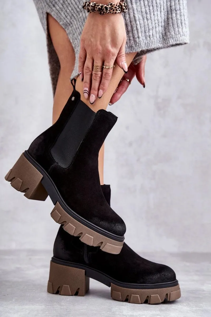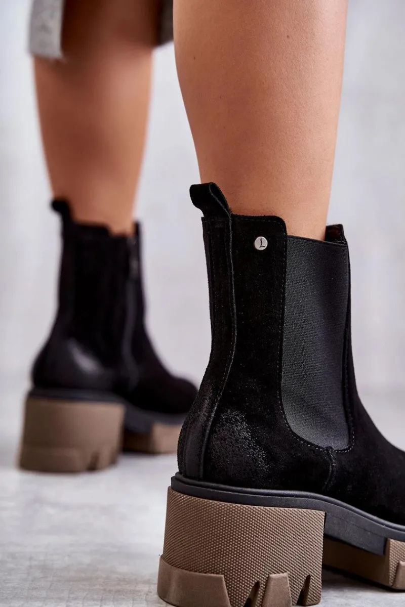 Hot Boto Zamszowe Damskie Botki Na Platformie Czarne Lemar Hilde