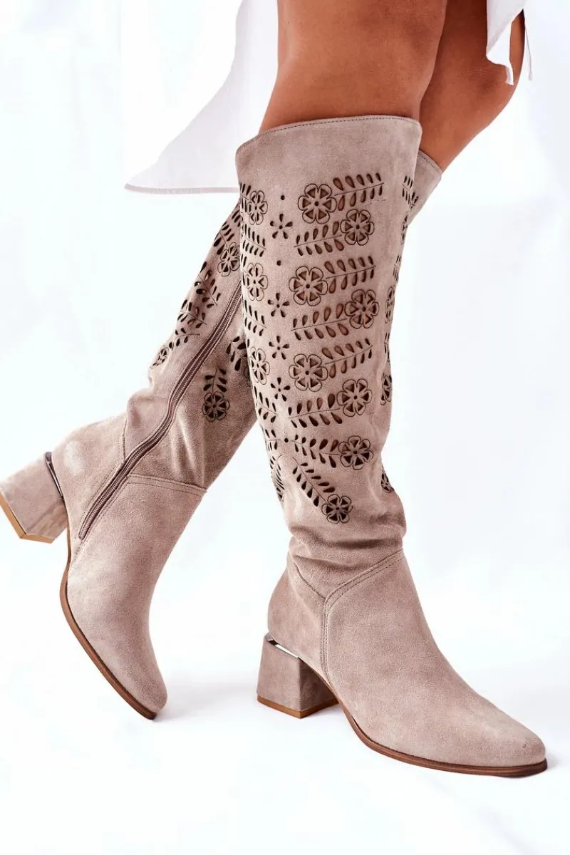 Piękne kozaki damskie od polskiego producenta, firmy Lewski. Każdy model wykonany jest z naturalnych skór wysokiej jakości. Ażurowe kozaki wykonane są z miękkiego, naturalnego zamszu. Wszyty zamek w cholewce ułatwi zakładanie, a dodatkowa guma dopasuje kozaki do łydki. Przy wyborze rozmiaru prosimy sugerować się tabelą rozmiarów.