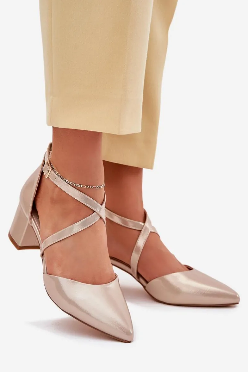 Czółenka damskie wykonane z eko skóry to idealne połączenie elegancji i wygody. Osadzone na niskim słupku, gwarantują stabilność i komfort noszenia przez cały dzień. Szpiczaste noski nadają im szykownego charakteru, a dwa przeplatające się paseczki na śródstopiu dodają subtelnego uroku. Skórzana wkładka zapewnia wygodę. Te czółenka to doskonały wybór zarówno na co dzień, jak i na wyjątkowe okazje! Przy wyborze rozmiaru prosimy sugerować się tabelą rozmiarów.