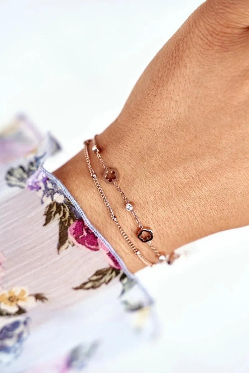 Hot Damska Bransoleta Celebrytka Różowe Złoto Koniczynka Bransoletki