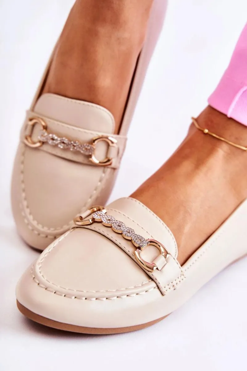 Eleganckie mokasyny osadzone na płaskim obcasie. Zostały wykonane z wysokiej jakości eko skóry z dbałością o każdy detal. Miękka wkładka z perforacją zadba o Twój komfort podczas użytkowania. Mokasyny sprawdzą się w wielu stylizacjach. Na przodzie znajduje się ozdobny element z dżetami imitującymi cyrkonie. Nosek zaokrąglony. Przy wyborze rozmiaru prosimy sugerować się tabelą rozmiarów.