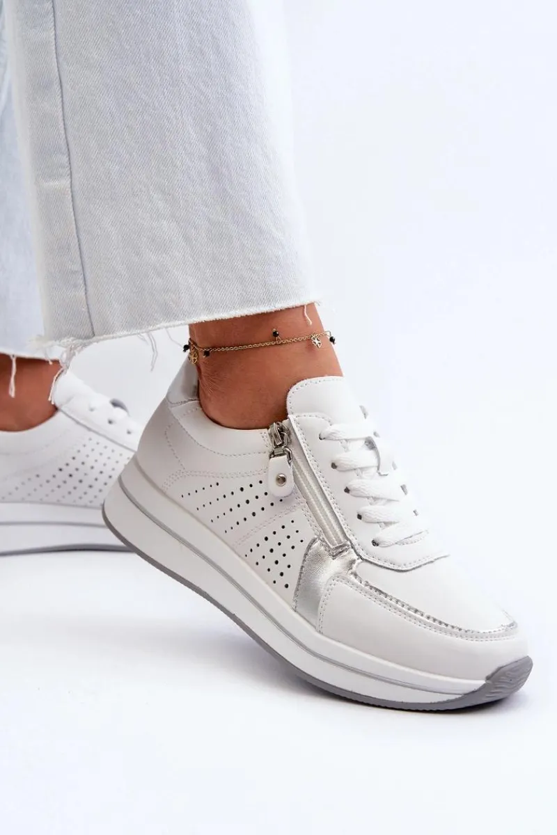 Sneakersy damskie idealnie sprawdzą się podczas codziennych aktywności. Wykonane z naturalnej skóry. Osadzone delikatnej platformie, co sprawia, że są stabilne na każdym kroku. Dodatkowo usztywniony zapiętek zapewnia dodatkowe wsparcie i stabilizację, zapewniając niezrównany komfort! Przy wyborze rozmiaru prosimy sugerować się tabelą rozmiarów.