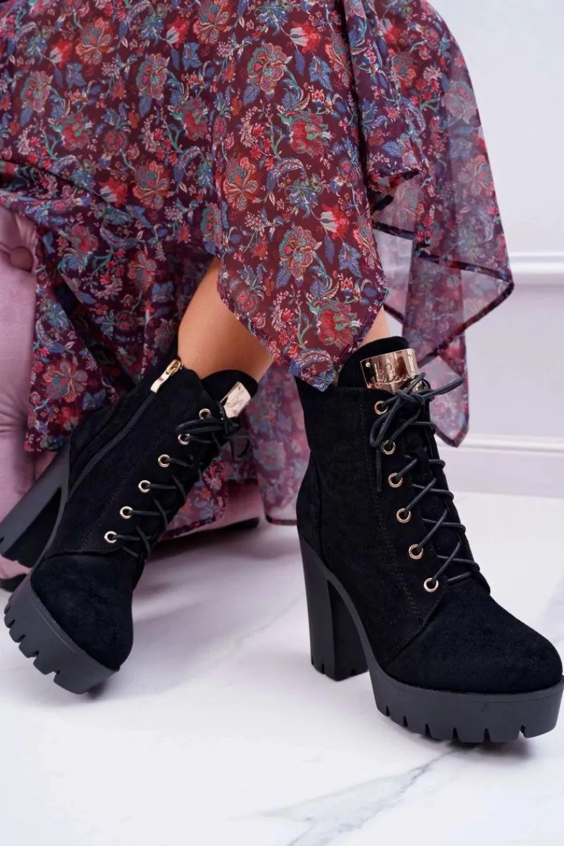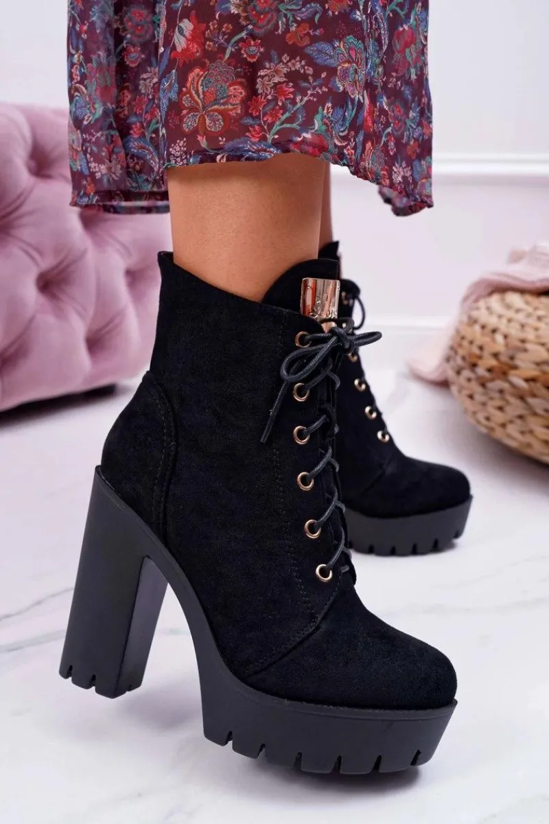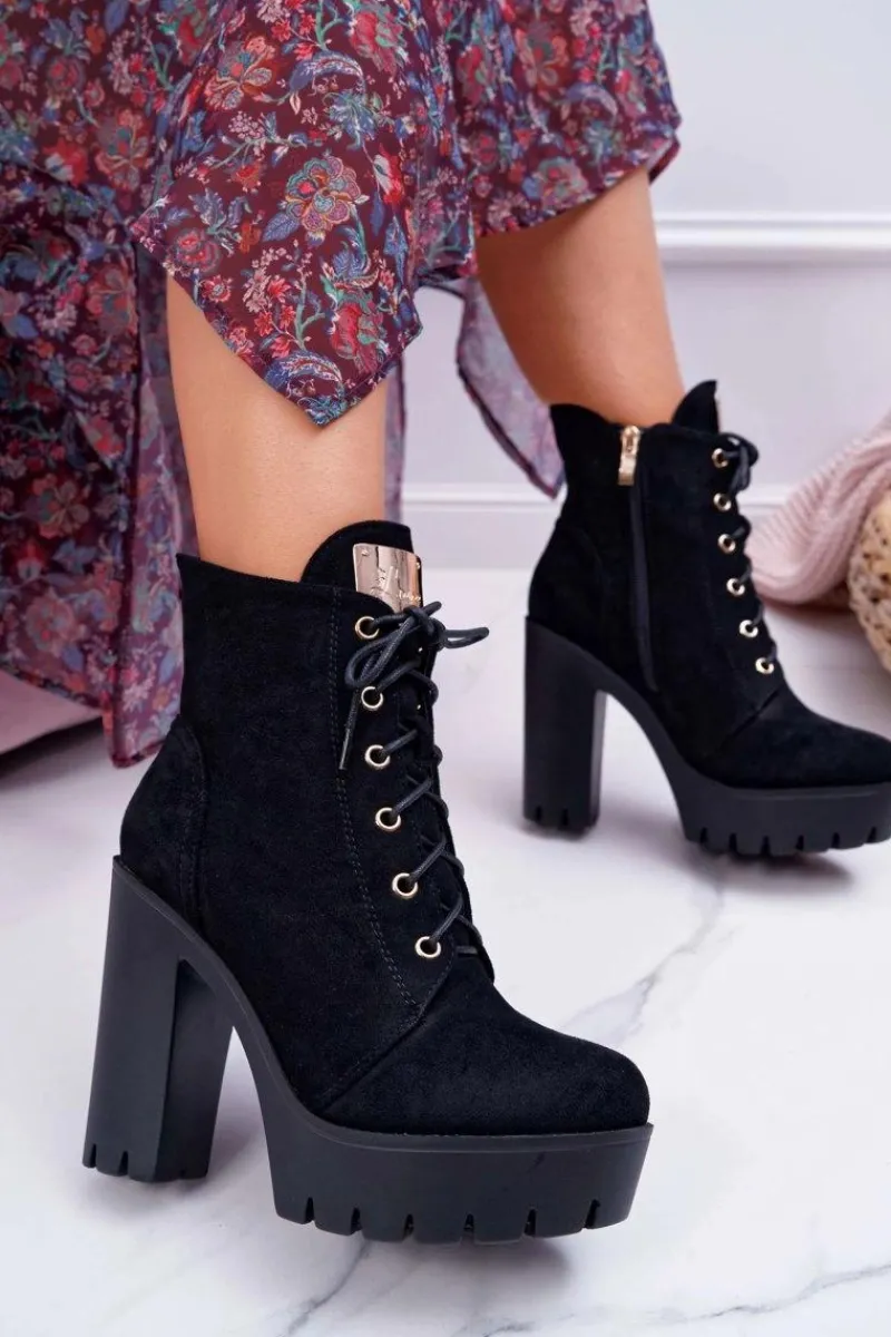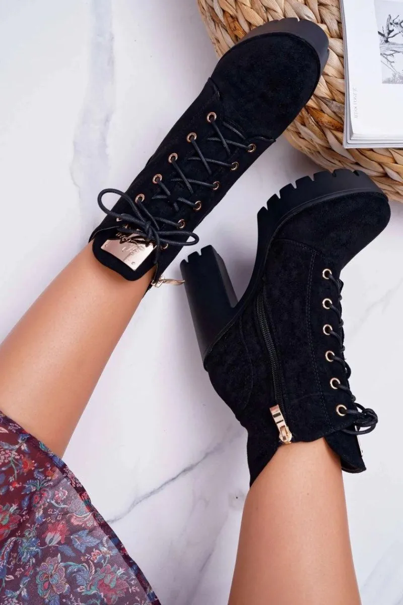 Hot Damskie Wysokie Botki Czarne Zamszowe Grunge Midow Damskie Botki Sznurowane|Botki Na Słupku