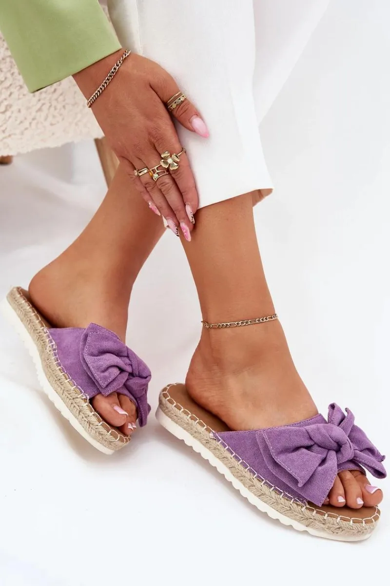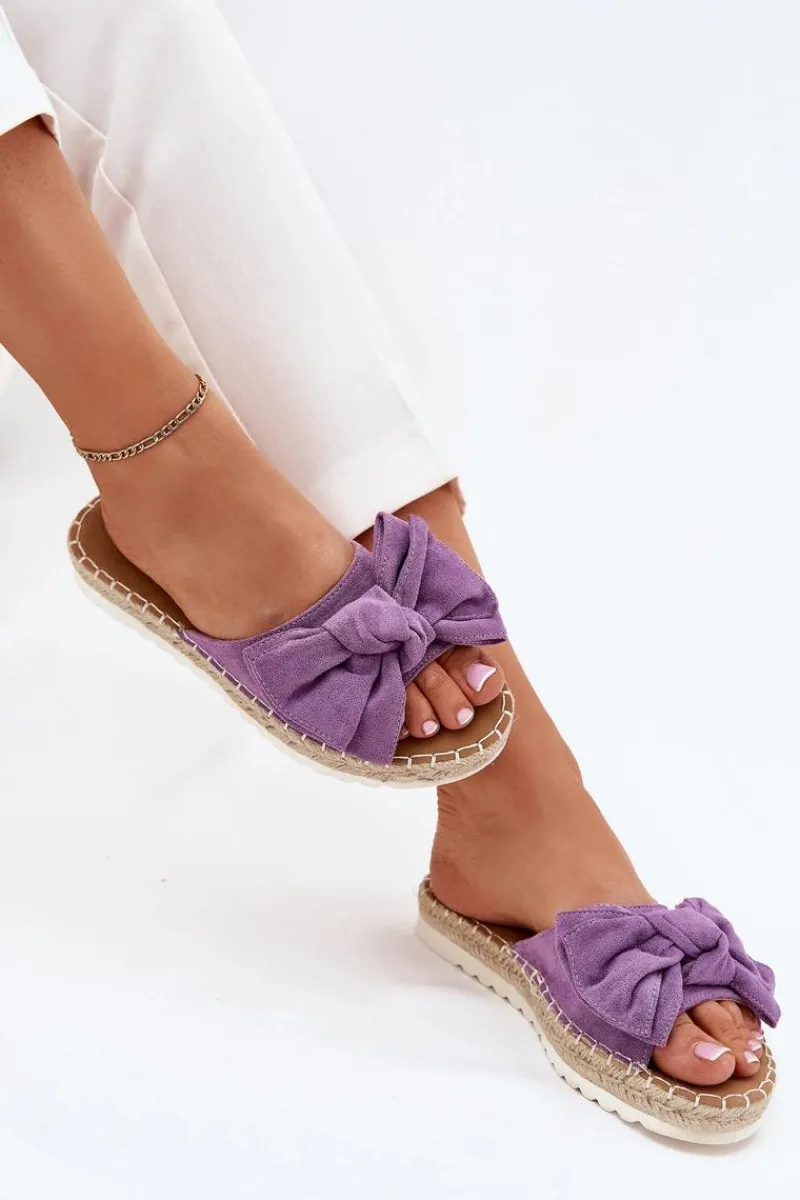 Hot Klapki Damskie Na Platformie Z Plecionką I Kokardką Fioletowe Alpireda Damskie Klapki Na Platformie|Klapki Damskie Klasyczne