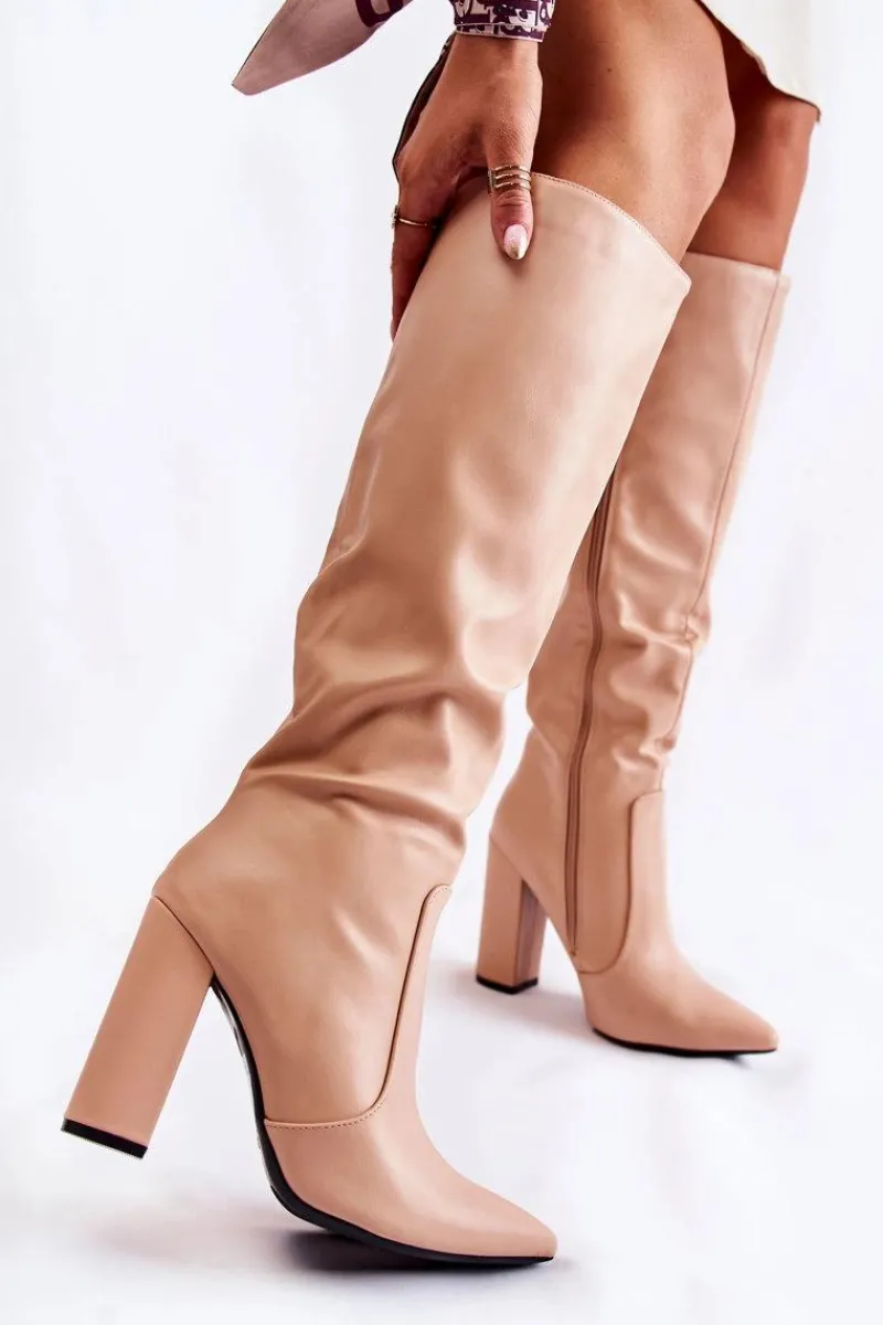 Klasyczne kozaki na obcasie wykonane z eko skóry. Buty posiadają nosek w szpic. Zamykane na suwak na całej wysokości cholewki. Posiadają usztywniany zapiętek. Obcas w postaci słupka uniesie sylwetkę i optycznie wydłuży nogi. Wkładka wykonana z eko skóry. Model ten świetnie będzie pasować do wielu stylizacji. Przy wyborze rozmiaru prosimy sugerować się tabelą rozmiarów.