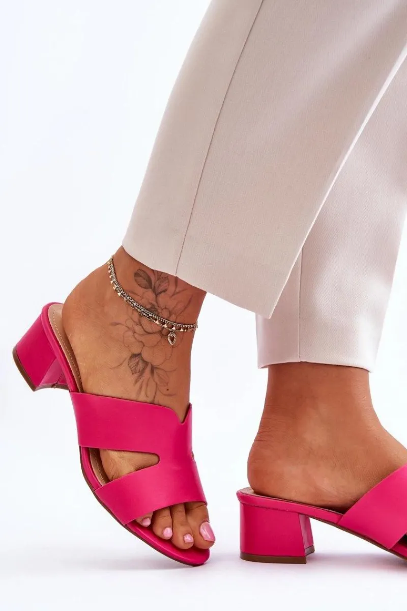 Klasyczne klapki na obcasie wykonane w całości z eko skóry. Posiadają wycięcia z boku cholewki. Miękka wkładka zapewni wygodę nawet przez cały dzień. Prosty, klasyczny fason osadzony na niskim słupku. Klapki te posiadają odkryty, zaokrąglony nosek. Ten moden świetnie sprawdzi się w wielu stylizacjach. Przy wyborze rozmiaru prosimy kierować się tabelą rozmiarów.