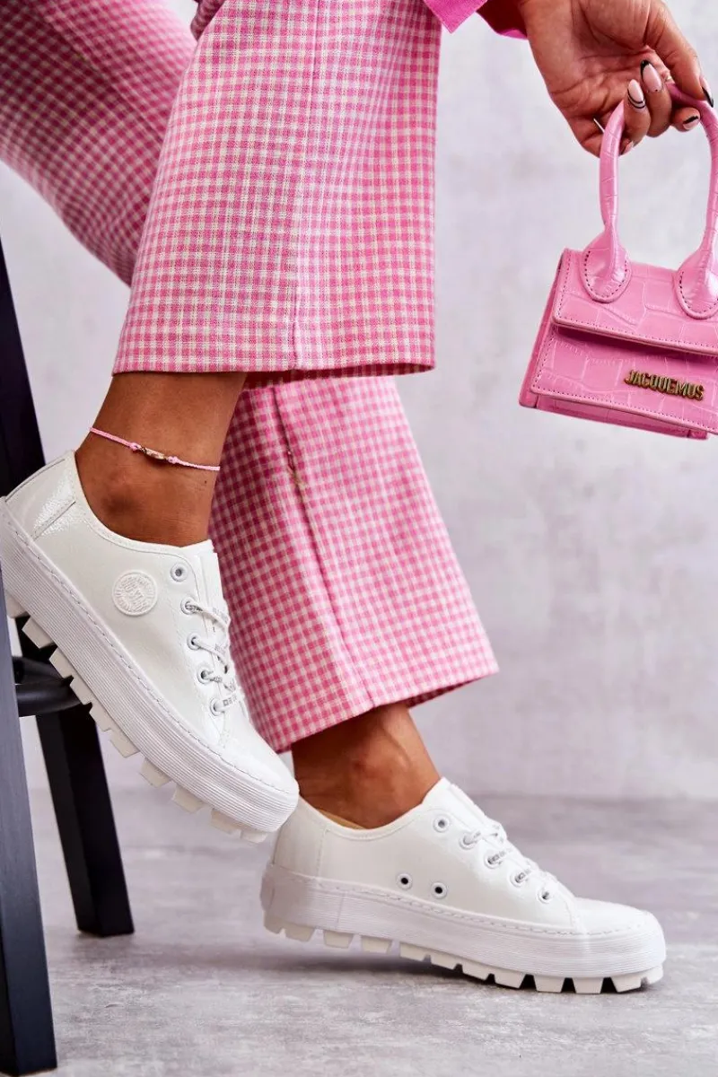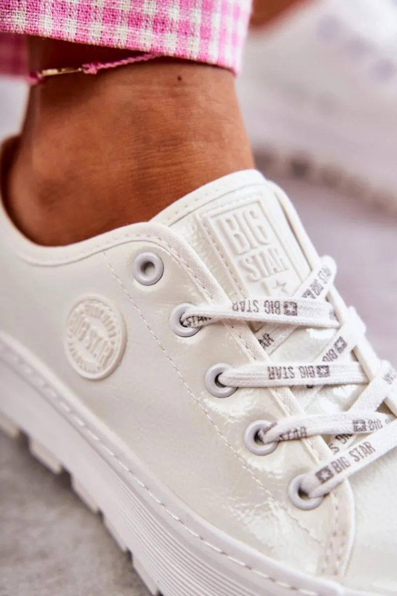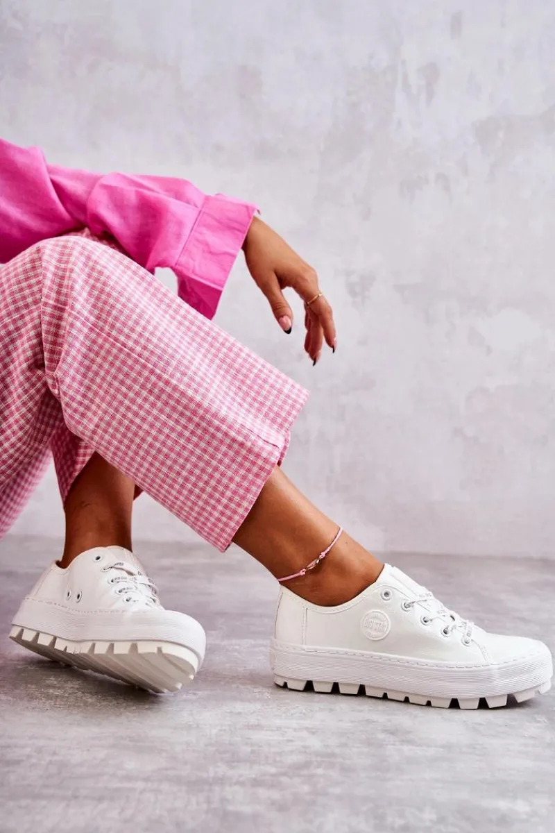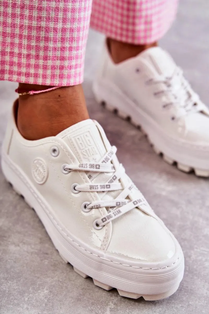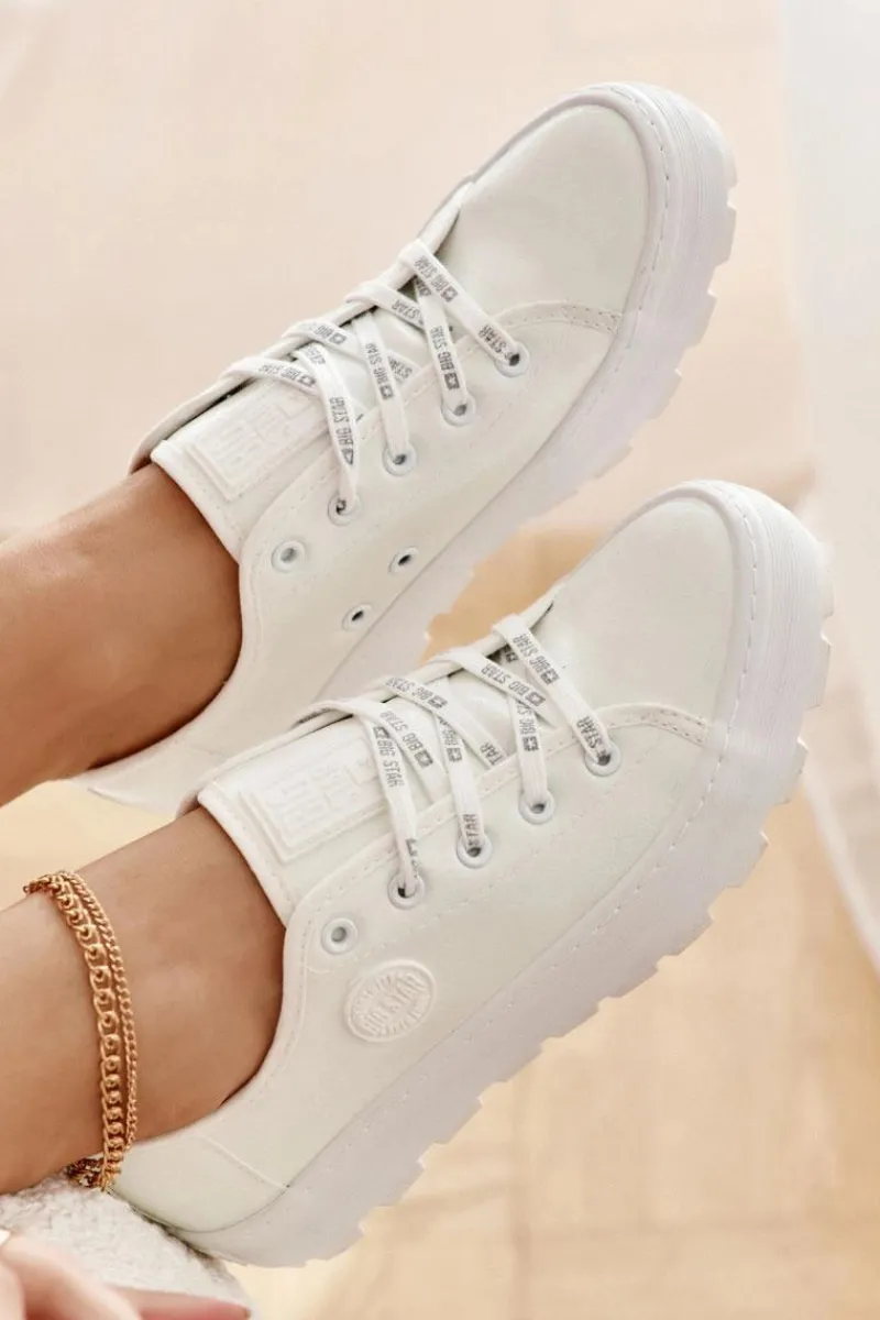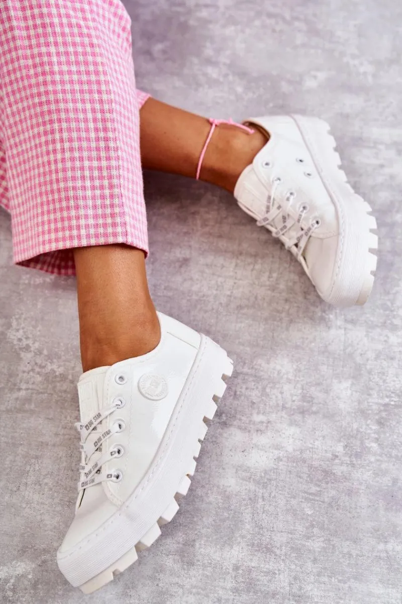 Rewelacyjne trampki od marki Big Star! Nowoczesny design oraz podeszwa z wysokim bieżnikiem wyróżnia ten model spośród innych! Z boku cholewki znajduje się gumowy emblemat. Trampki te dodatkowo posiadają logowane sznurowadła. Podeszwa antypoślizgowa zapewni stabilność. Model ten posiada także usztywniany zapiętek. Koniecznie powinnaś je mieć w swojej garderobie! Przy wyborze rozmiaru prosimy sugerować się tabelą rozmiarów.
