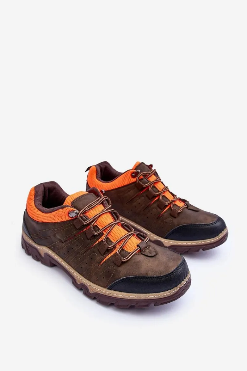 Męskie buty trekkingowe z niską cholewką świetnie sprawdzą się np.: podczas wycieczki w góry. Fason ten został wykonany z materiału tekstylnego, tworzywa sztucznego oraz eko skóry. Buty te posiadają usztywniany zapiętek oraz klasyczne sznurowanie. Osadzone na platformie z płaskim obcasem. Koniecznie sprawdź pozostałe obuwie trekkingowe na naszej stronie! Przy wyborze rozmiaru prosimy kierować tabelą rozmiarów.