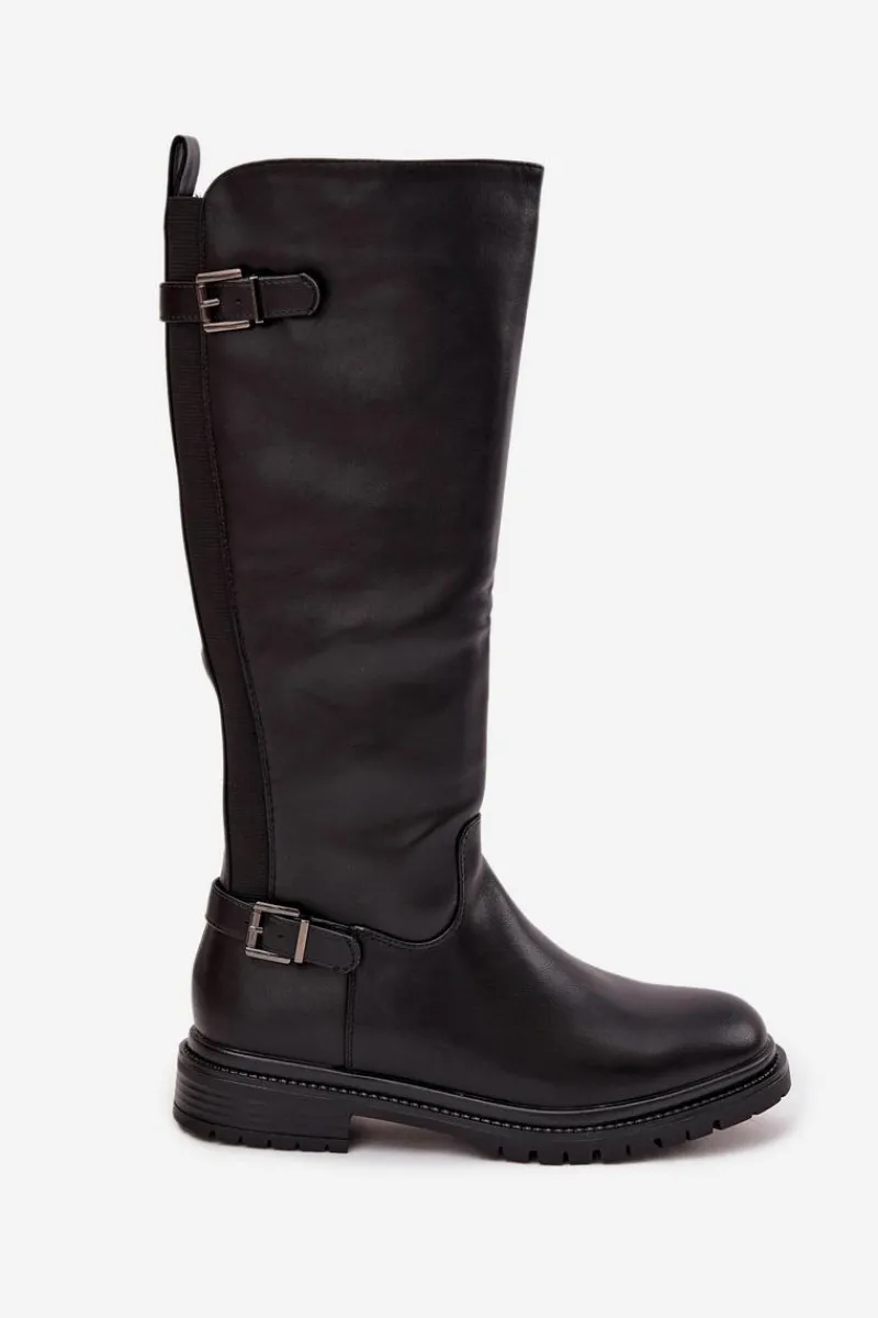 Kozaki damskie wykonane z eko skóry to propozycja łącząca styl, wygodę i funkcjonalność. Osadzone na płaskim obcasie, zapewniają komfort podczas codziennego noszenia, a praktyczne zapięcie na zamek ułatwia zakładanie i zdejmowanie. Wnętrze ocieplone kocem obuwniczym gwarantuje przyjemne ciepło w chłodniejsze dni. Model ten posiada dwie elastyczne wstawki oraz paski z ozdobnymi klamrami nadają całości stylowego, nieco rockowego charakteru. To idealne kozaki na sezon jesienno-zimowy – praktyczne, modne i wygodne. Przy wyborze rozmiaru prosimy kierować tabelą rozmiarów.