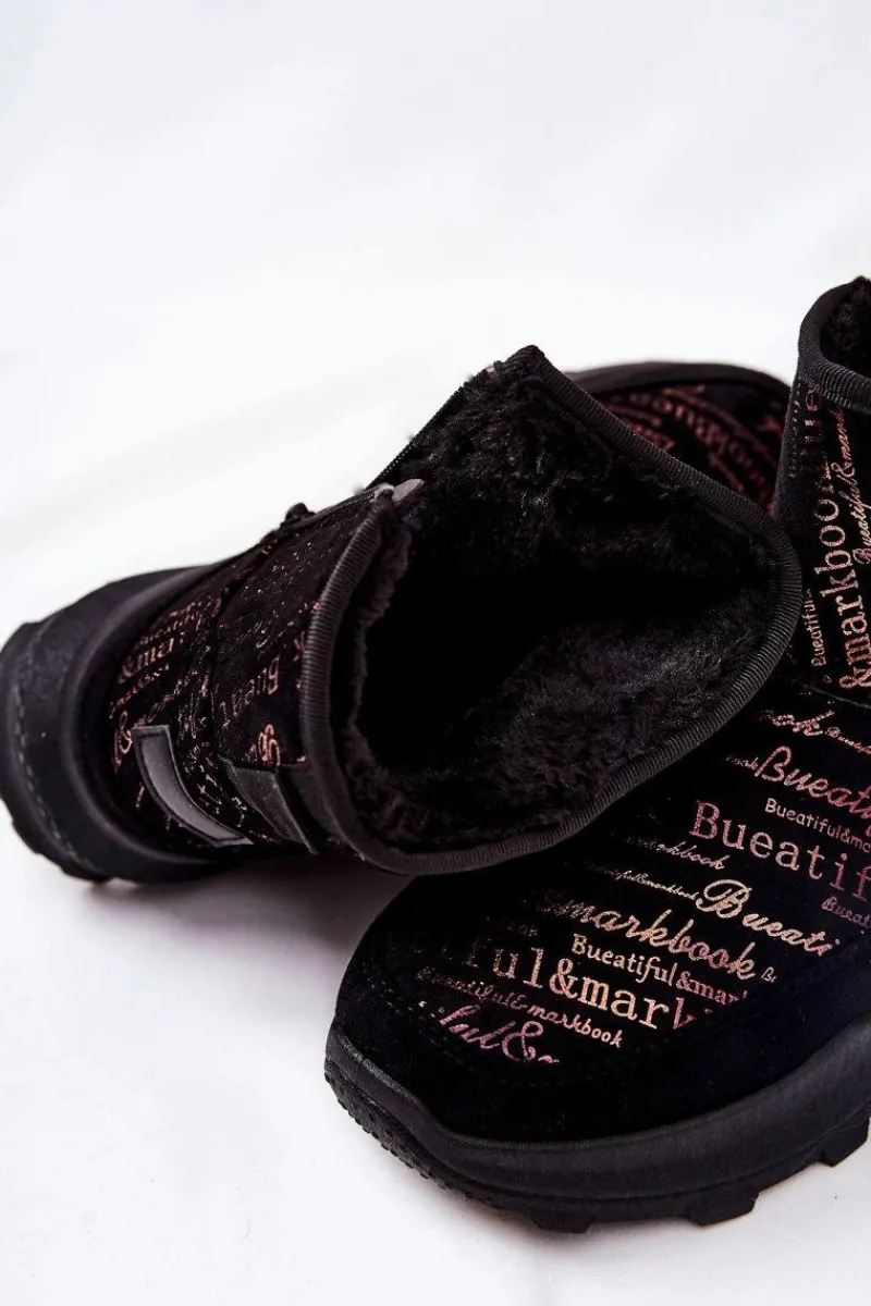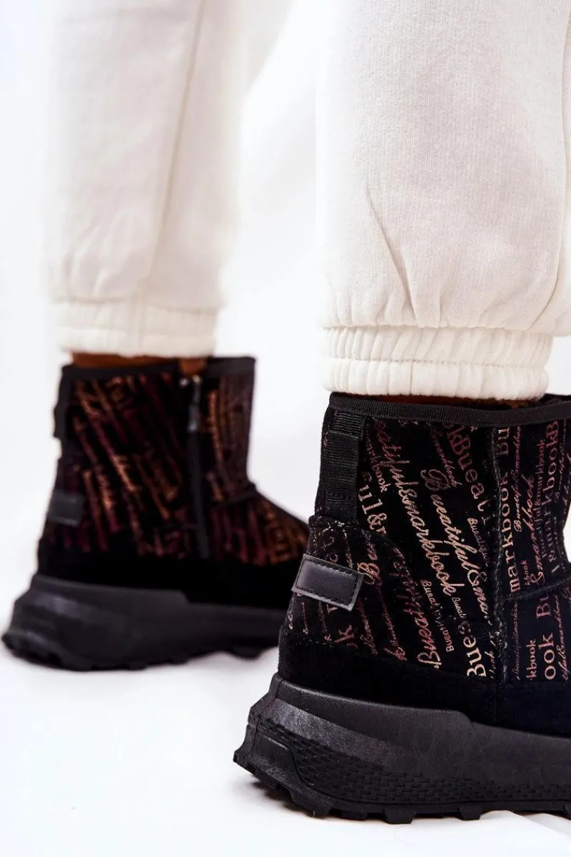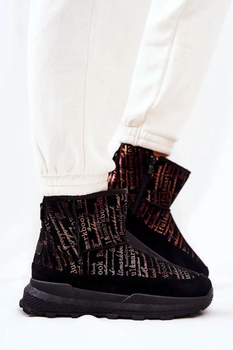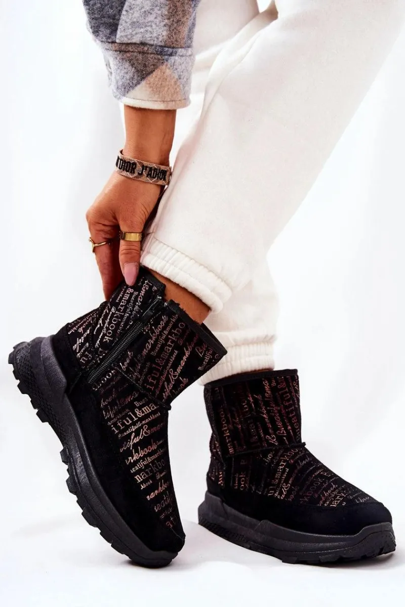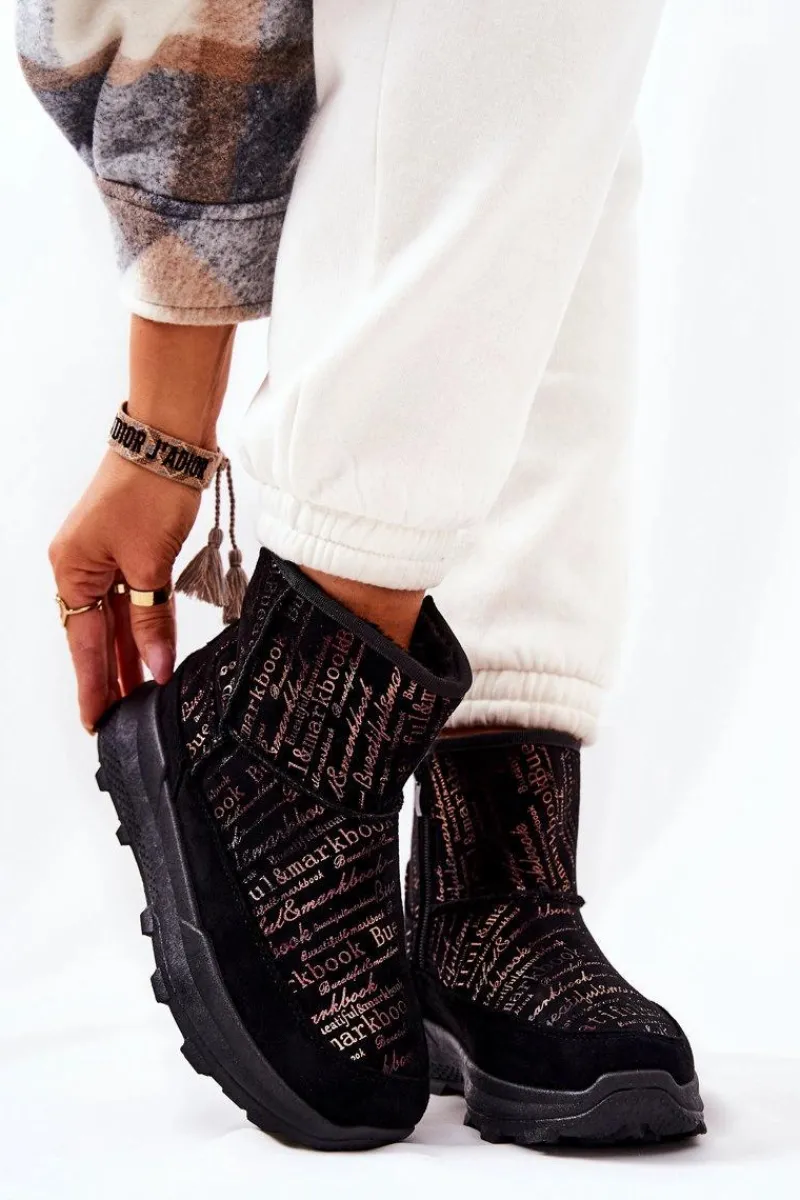 Hot Ocieplane Śniegowce Z Printem Czarne Freesia Damskie Śniegowce Damskie