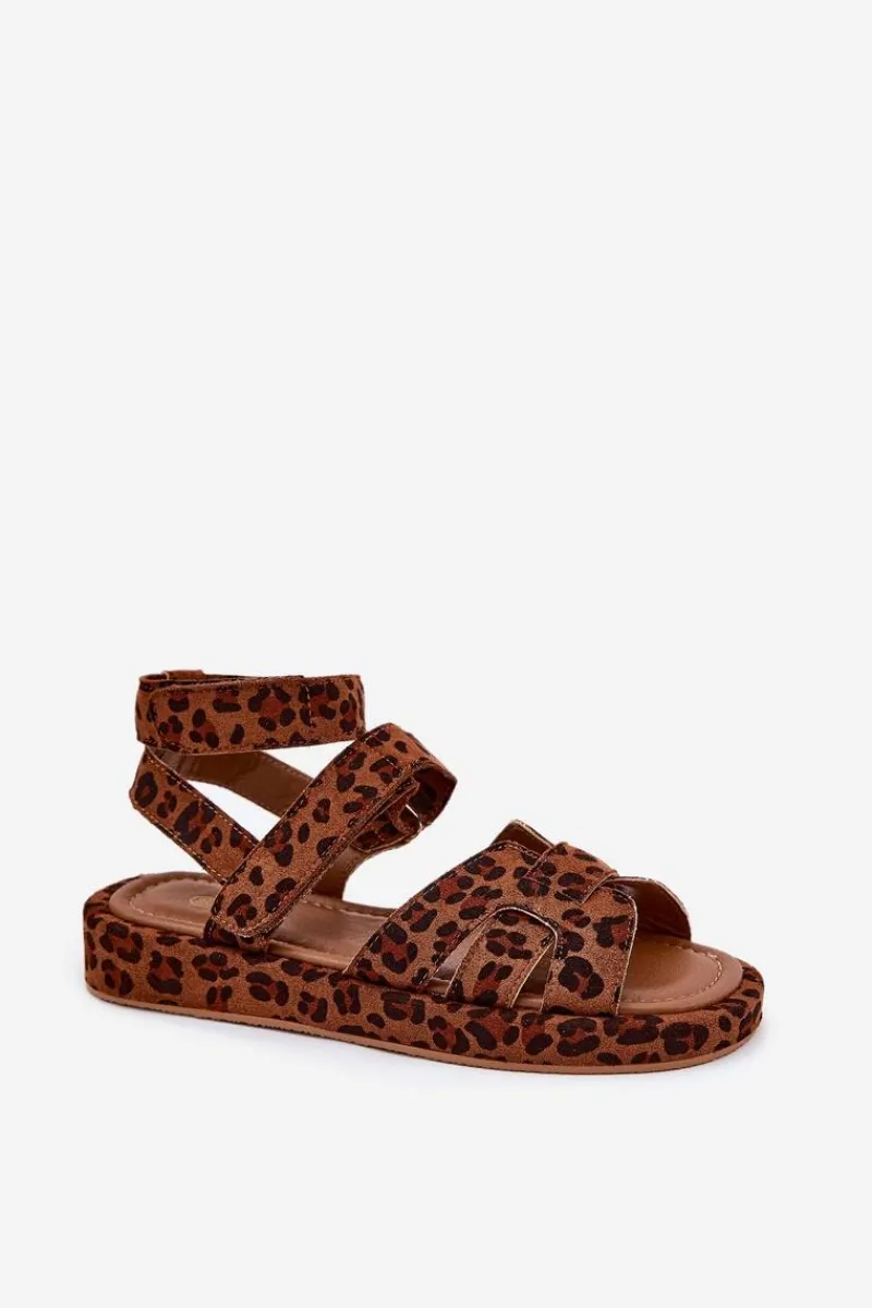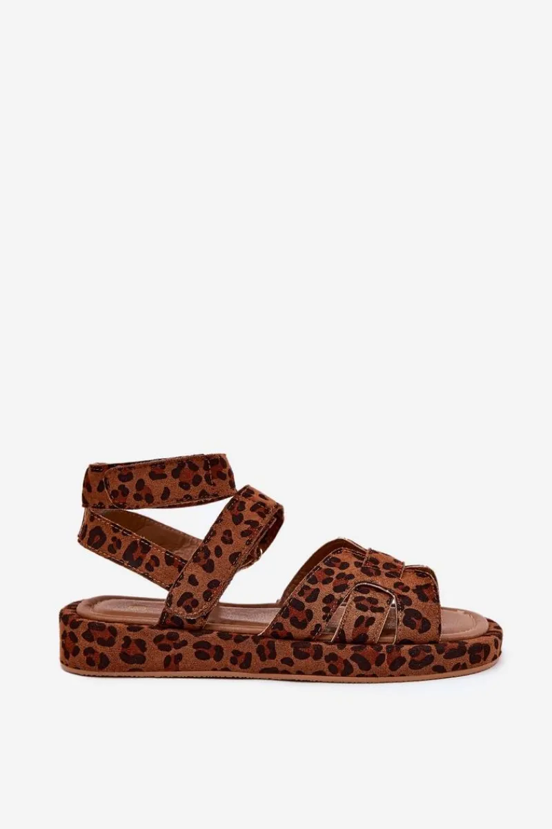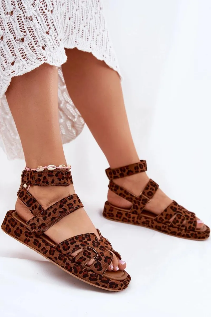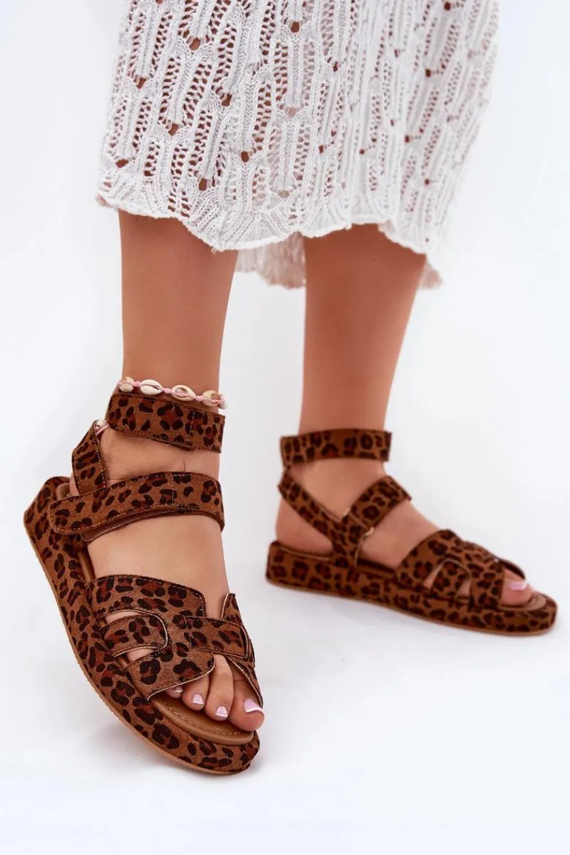 Hot Sandały Damskie Z Rzepami Panterka Uvissa Damskie Sandały Płaskie