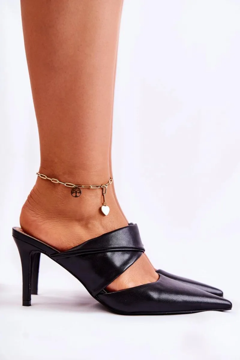 Wyjątkowe klapki na obcasie wykonane są z wysokiej jakości eko skóry z dbałością o detale. Klapki z paskiem przytrzymującym stopę przed przesuwaniem się. Miękka wkładka zapewni Ci wygodę przez cały dzień. Nowoczesny wzór skradnie serca niejednej miłośniczki wysokich obcasów. Buty osadzone na klasycznej szpilce. Elegancja i wygoda w jednym! Modny nosek w szpic. Koniecznie sprawdź także pozostałe modele eleganckich klapek! Przy wyborze rozmiaru prosimy kierować się tabelą rozmiarów.