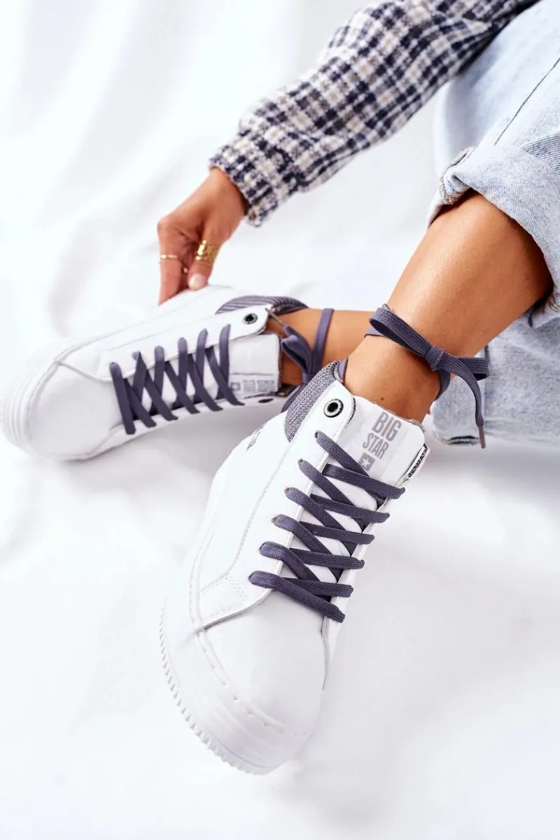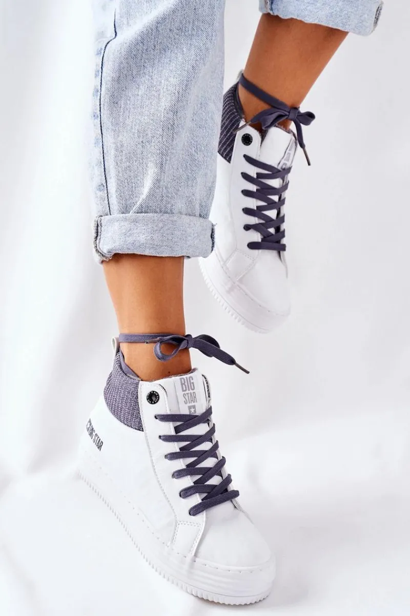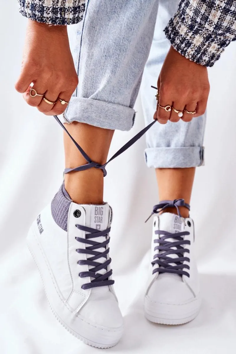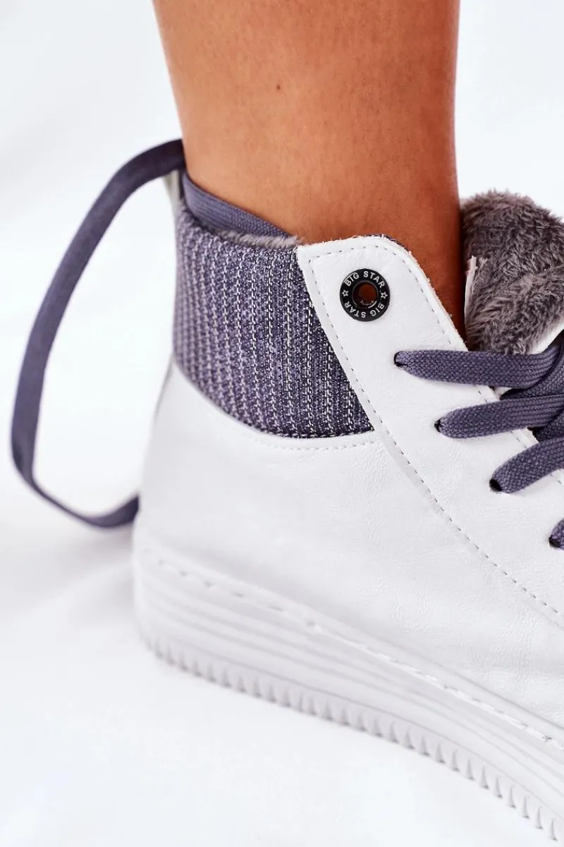 Hot Wysokie Ocieplane Trampki Big Star II274144 Biało-Szare Damskie Trampki Ocieplane|Trampki Damskie Big Star