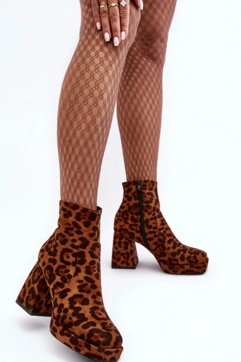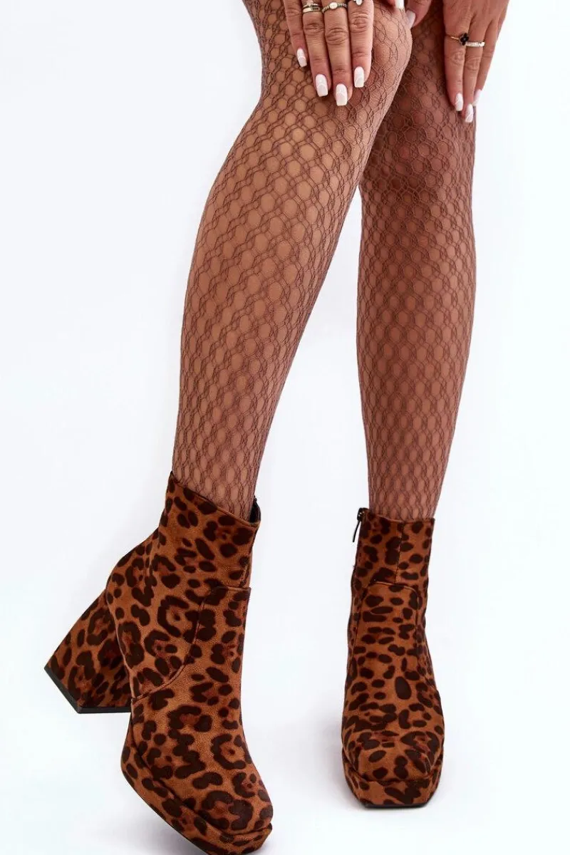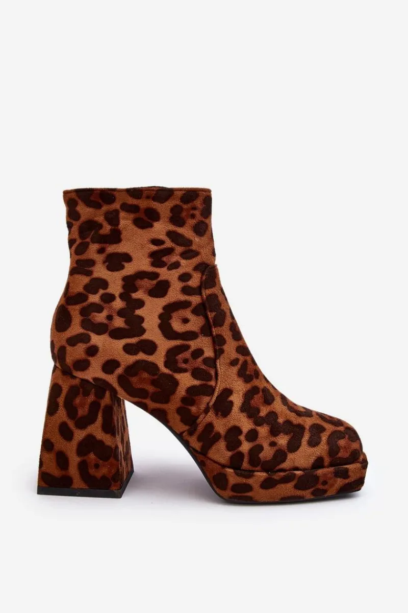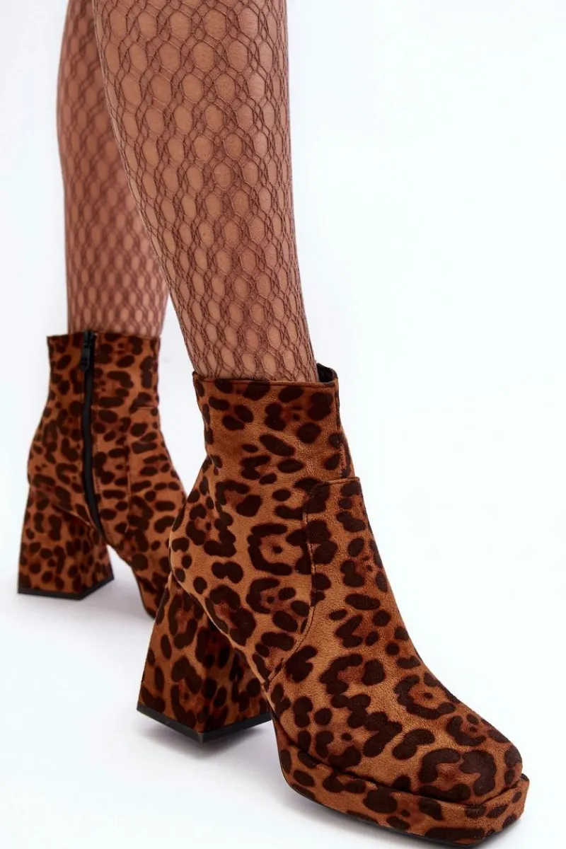 Botki Damskie osadzone na masywnym, wysokim klocku i platformie. Wykonane z eko zamszu. Zapinane na suwak po wewnętrznej stronie cholewki. Środek ocieplony kocem obuwniczym. Noski w kwadrat. Zapiętek jest usztywniony. Przy wyborze rozmiaru prosimy sugerować się tabelą rozmiarów.