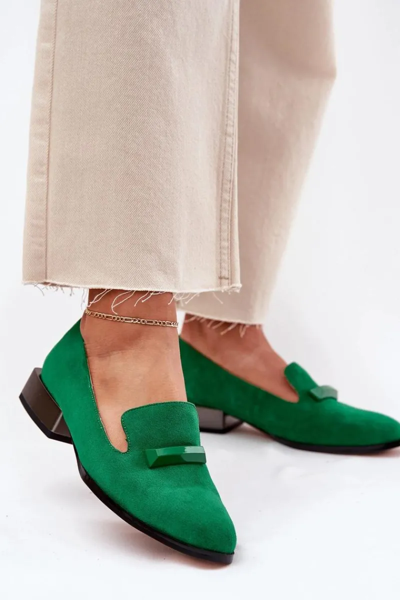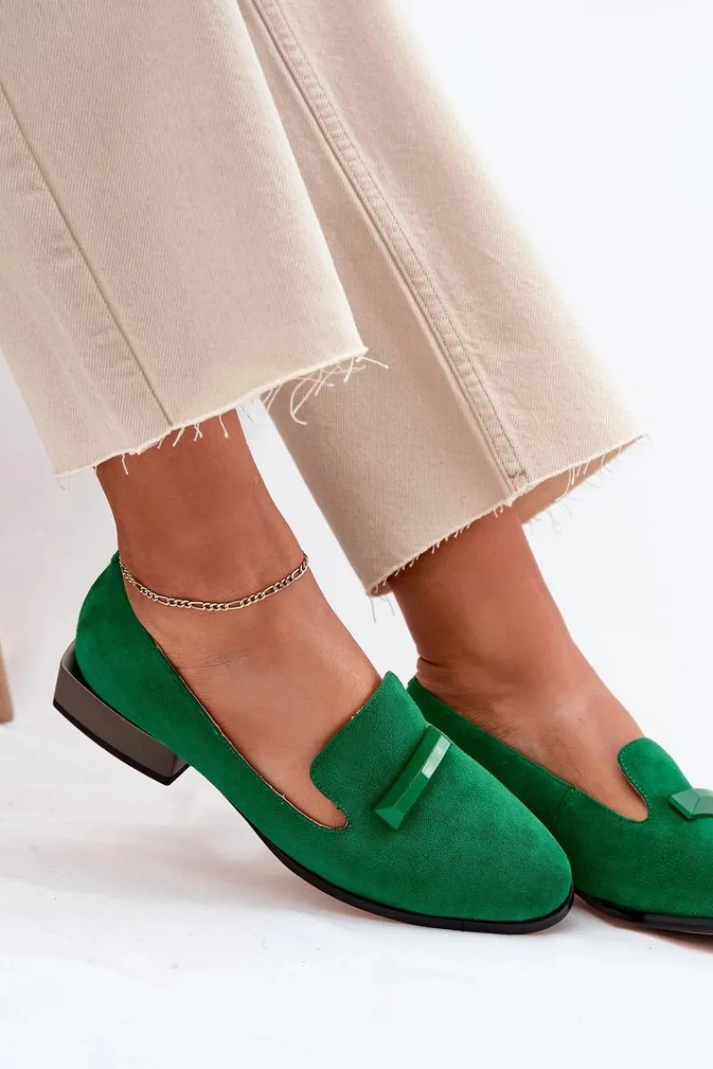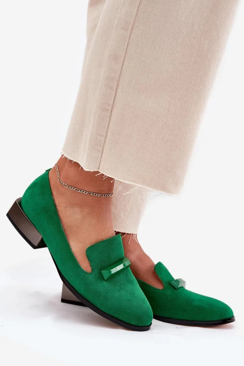 Hot Zamszowe Półbuty Mokasyny Damskie Z Ozdobą D&A LZ51-505 Zielone Damskie Półbuty Skórzane|Mokasyny Damskie Zamszowe