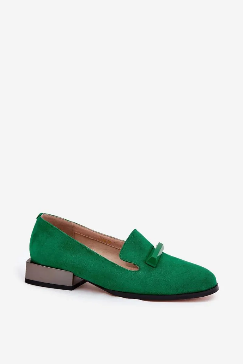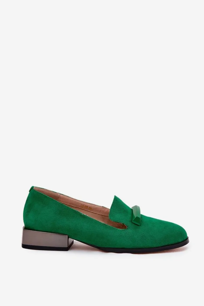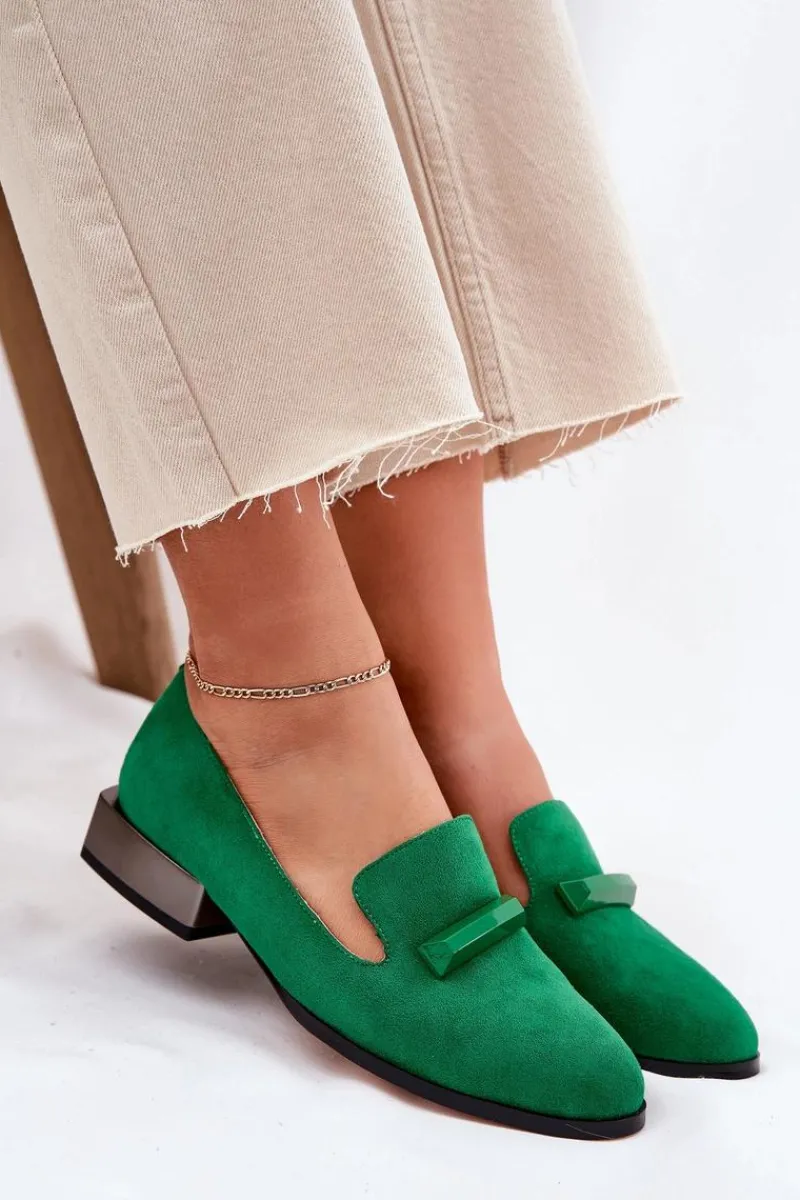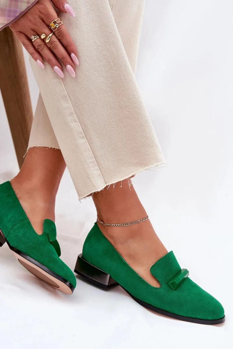 Hot Zamszowe Półbuty Mokasyny Damskie Z Ozdobą D&A LZ51-505 Zielone Damskie Półbuty Skórzane|Mokasyny Damskie Zamszowe
