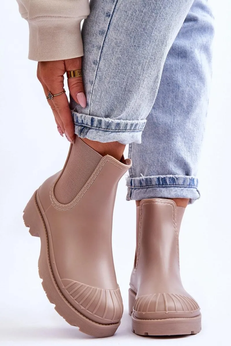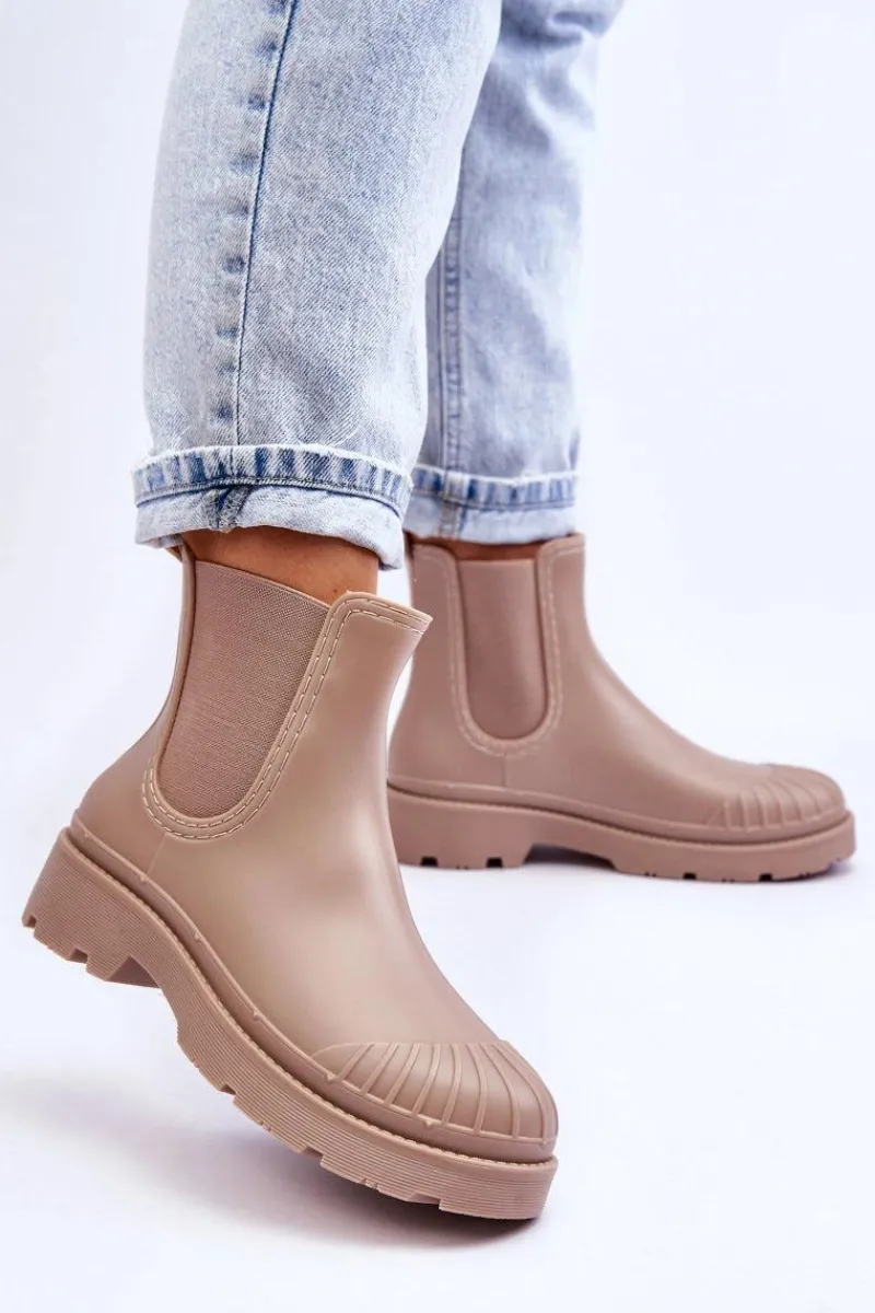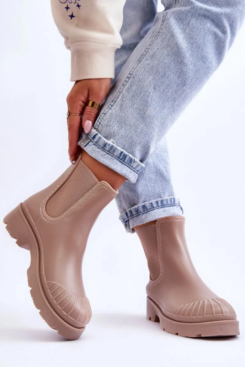 Botki zostały wykonane z gumowego tworzywa. Posiadają zdobienie na nosku. Wewnątrz obuwia wkładka została wykonana z tkaniny. Płaski obcas oraz niska platforma zapewnią stabilność na każdym kroku. Świetny model na sezon wiosenno-jesienny. Koniecznie powinnaś mieć te sztyblety w swojej szafie! Przy wyborze rozmiaru prosimy sugerować się tabelą rozmiarów.