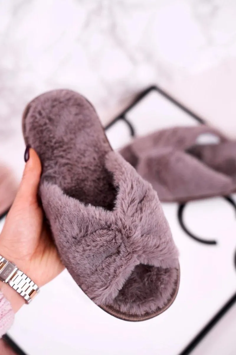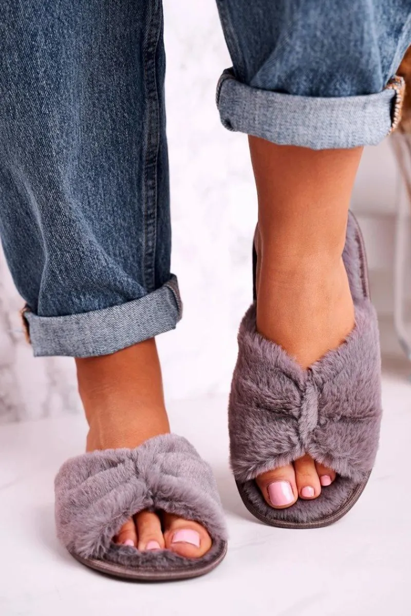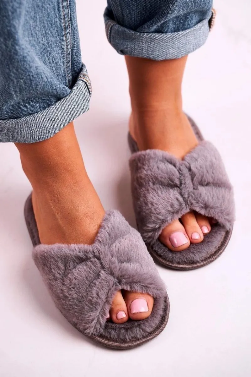 Kapcie Klasyczne>Evento Damskie Klapki Papcie Futrzane Szare Bow