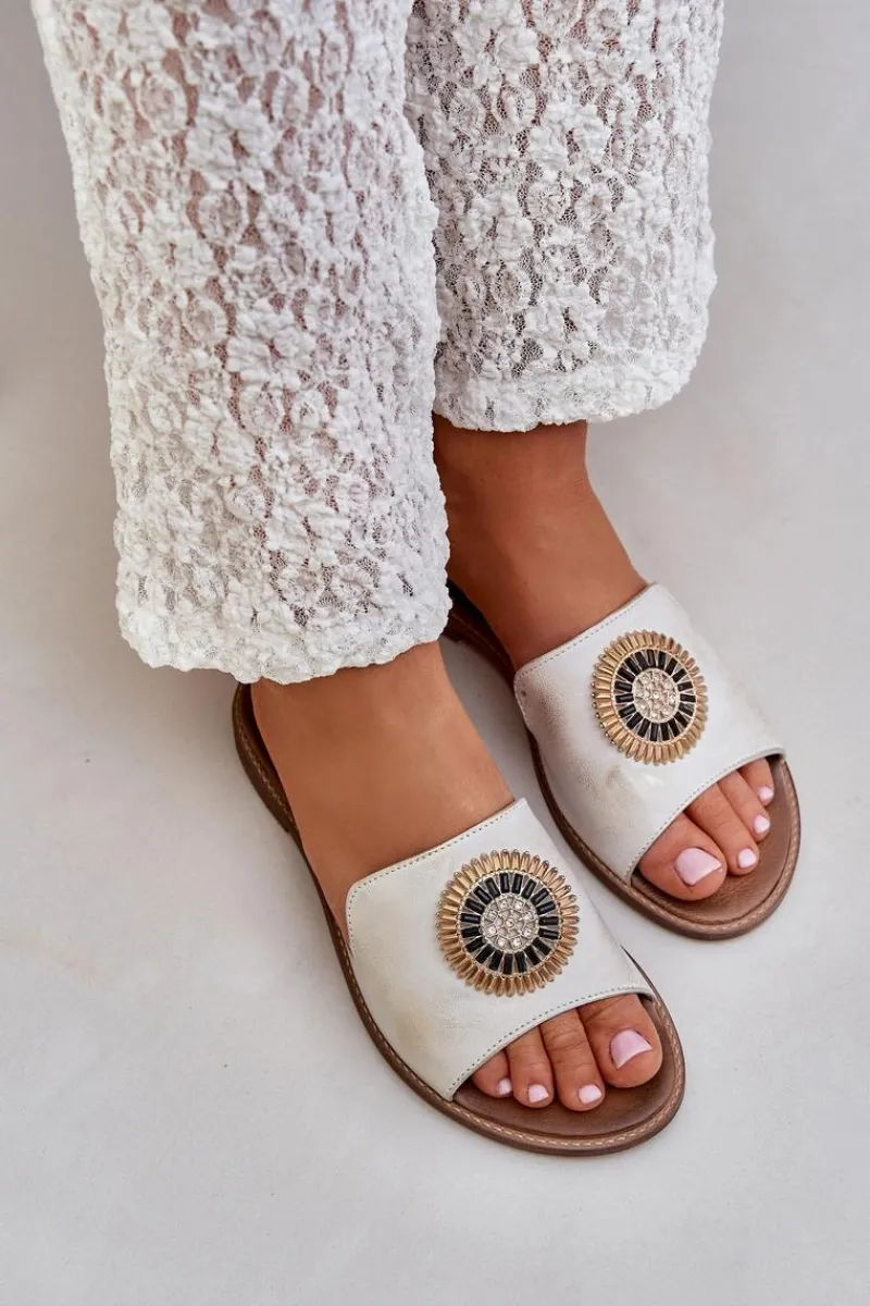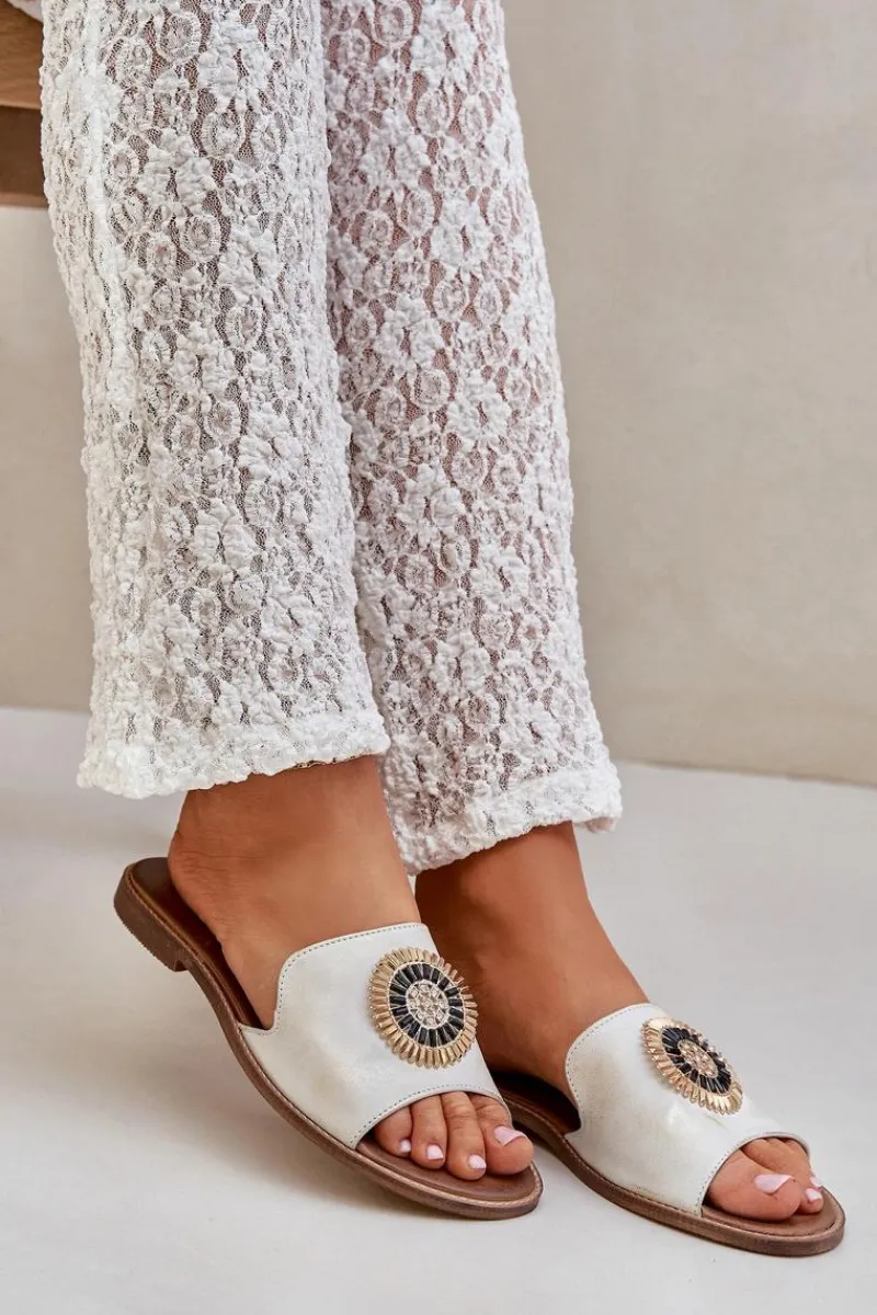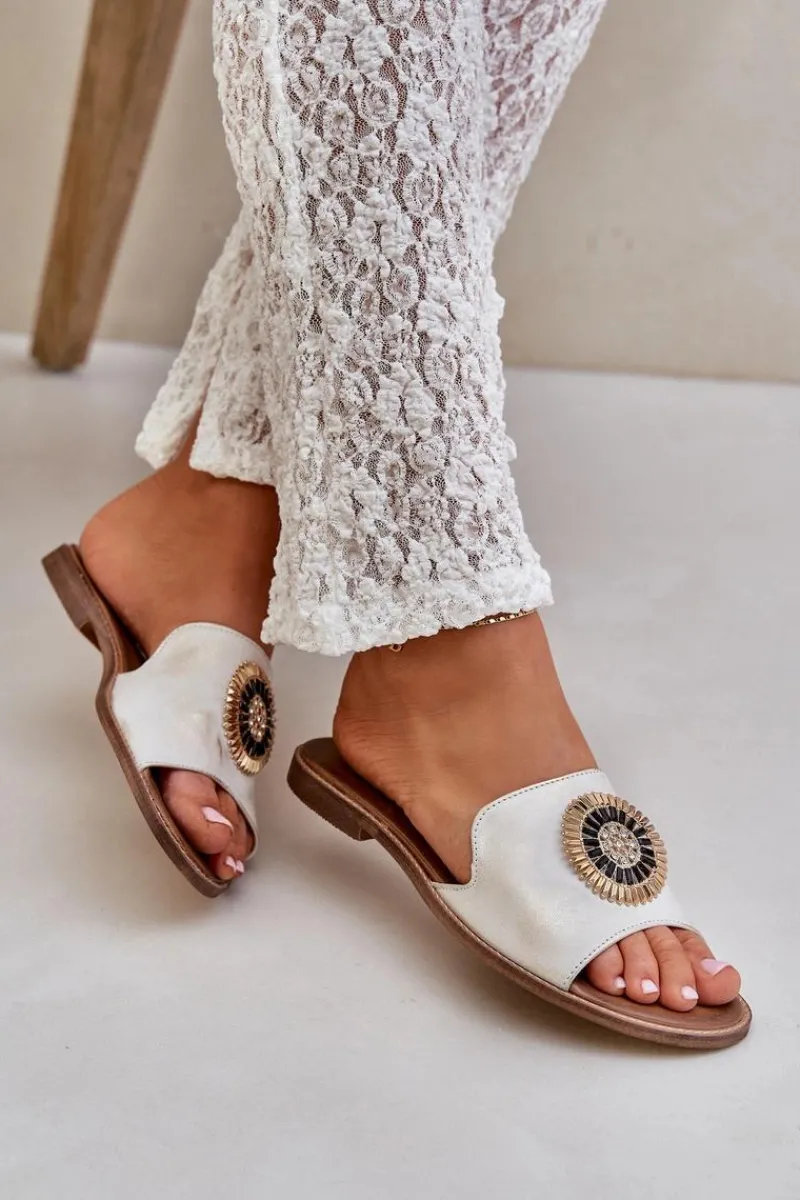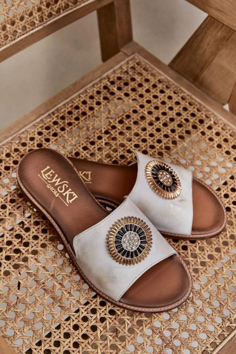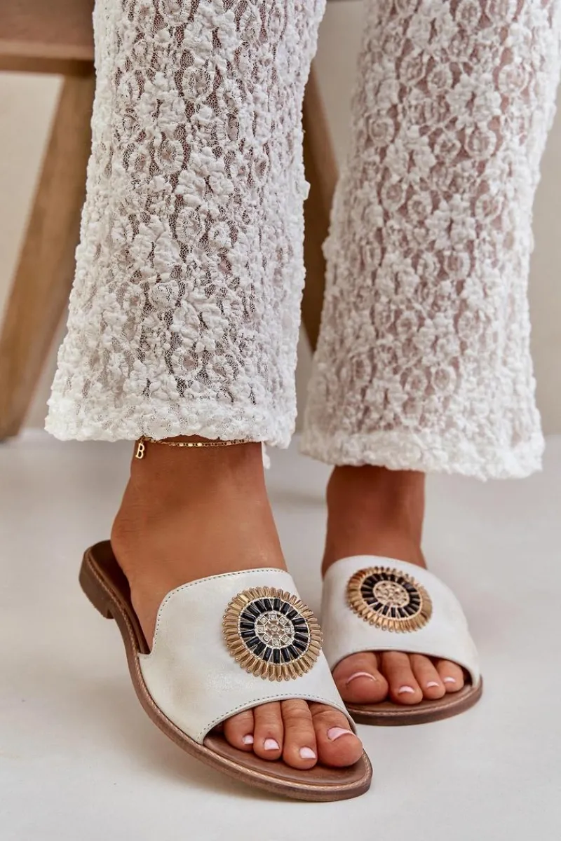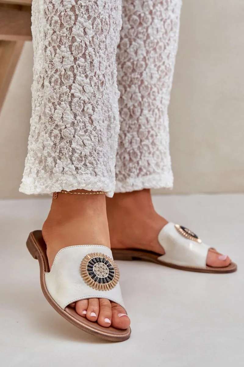 Damskie klapki wykonane z wysokiej jakości skóry naturalnej to połączenie elegancji i wygody. Osadzone na płaskim obcasie, zapewniają komfort noszenia przez cały dzień. Subtelna ozdoba na cholewce nadaje im wyjątkowego uroku i klasy, dzięki czemu świetnie sprawdzą się zarówno w casualowych, jak i bardziej eleganckich stylizacjach. Idealne na ciepłe dni, stanowią niezastąpiony dodatek do letnich sukienek, spodni czy spódnic. Przy wyborze rozmiaru prosimy sugerować się tabelą rozmiarów.