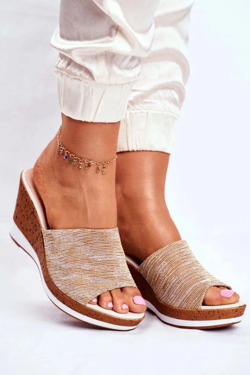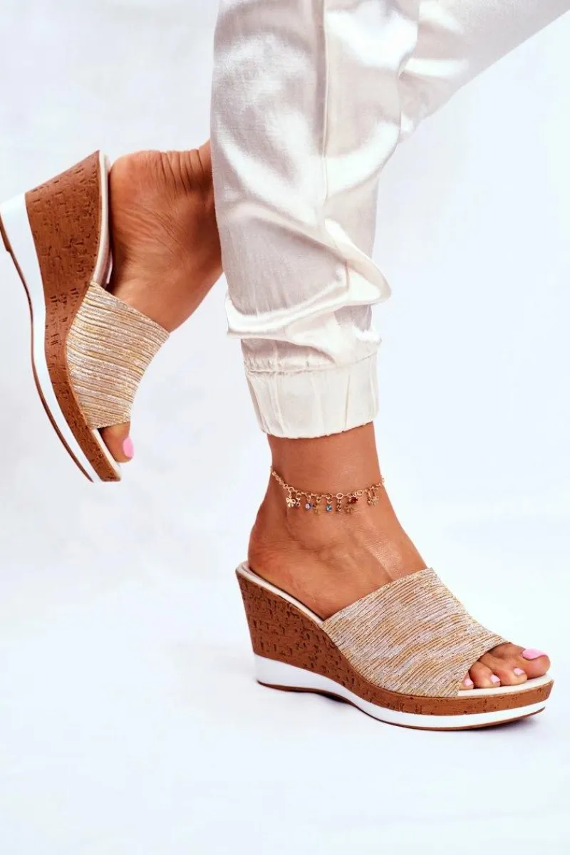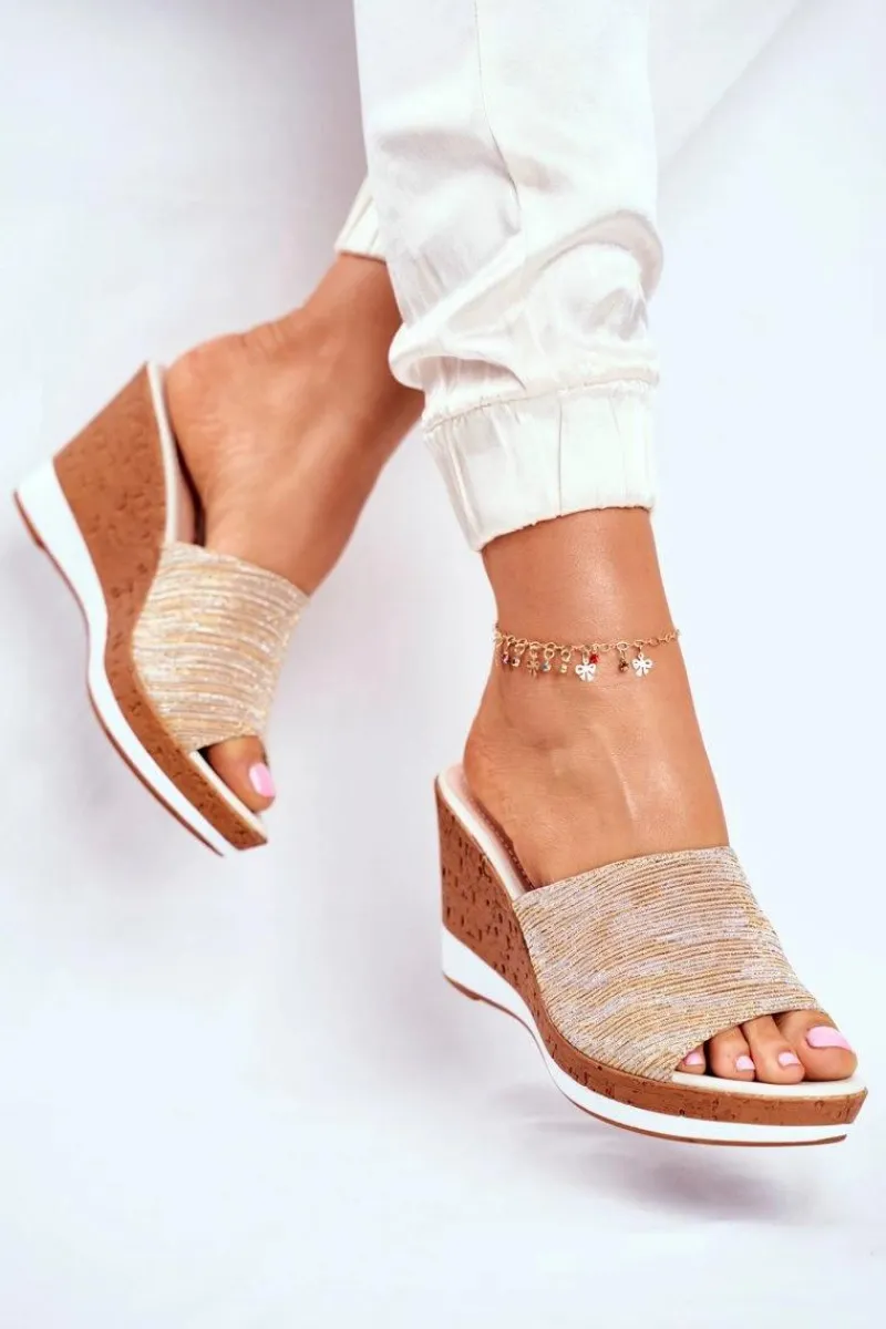 Klapki Damskie Klasyczne>Buty Sergio Leone Klapki Damskie Na Koturnie Sergio Leone Beżowe SK320