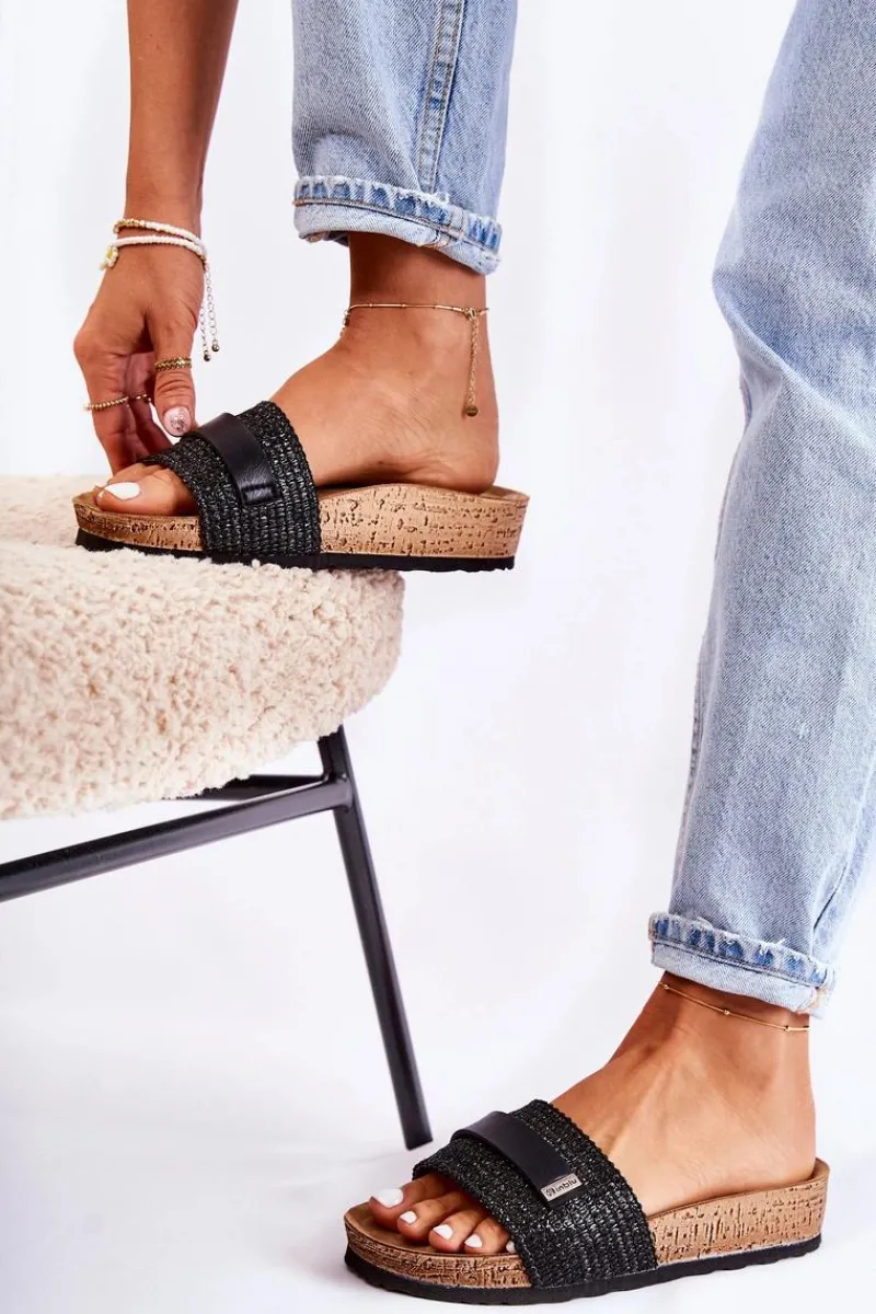 Modne klapki od marki INBLU. Wykonane z wierzchu z połączenia wysokiej jakości eko skóry oraz tworzywa sztucznego. Model wsuwany. Wkładka jest profilowana, dostosowana do anatomicznego kształtu stopy, a także wykonana z naturalnego zamszu. Podeszwa wraz z platformą wykonana jest z połączenia pianki oraz tworzywa sztucznego. Dzięki zastosowaniu odpowiedniej technologii i materiałów, klapki zapewniają wysoki komfort użytkowania i wygodę. Przy wyborze rozmiaru prosimy sugerować się tabelą rozmiarów.