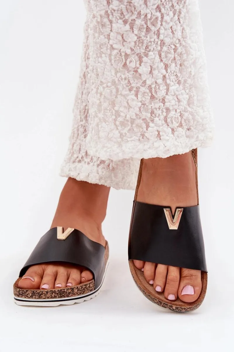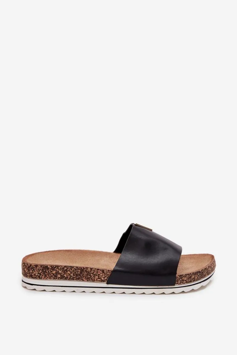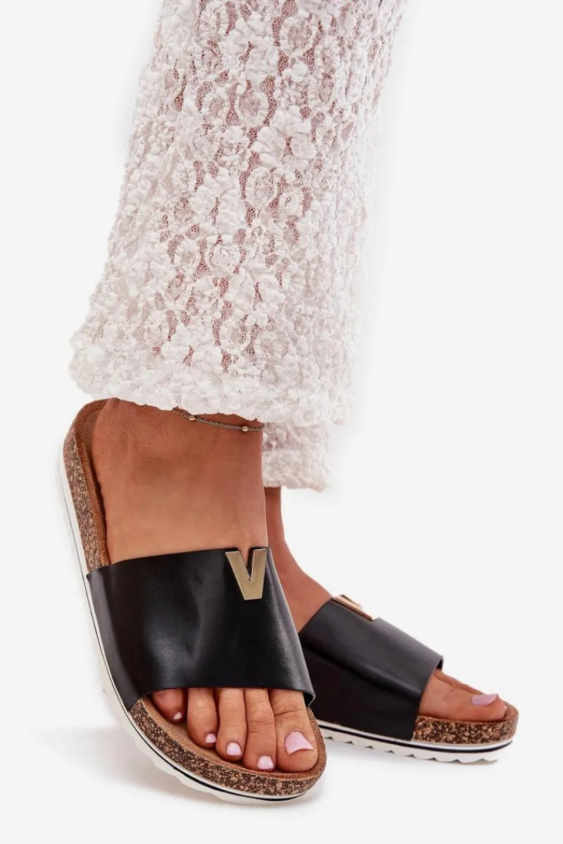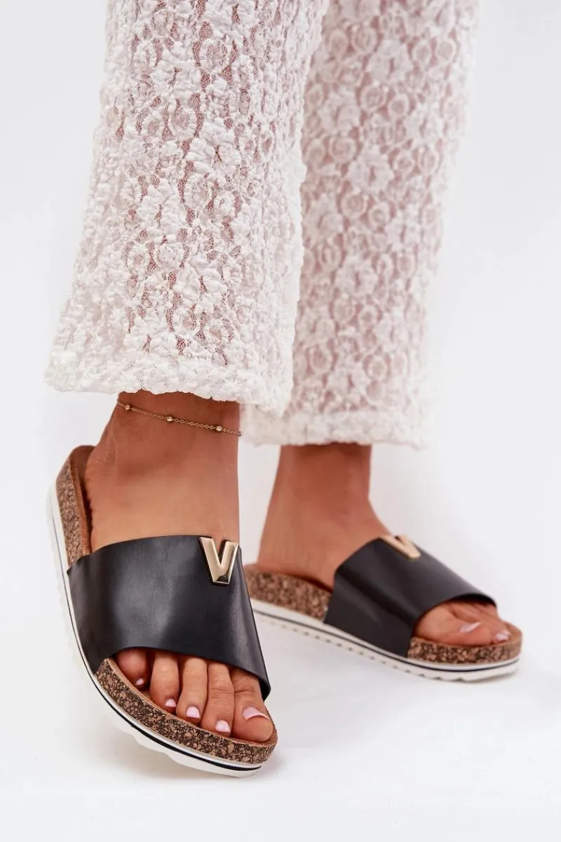 Klapki Damskie Na Korkowej Platformie Z Ozdobnym Detalem Czarne Vessira Damskie Klapki Korkowe|Klapki Na Platformie