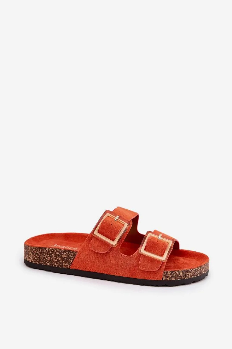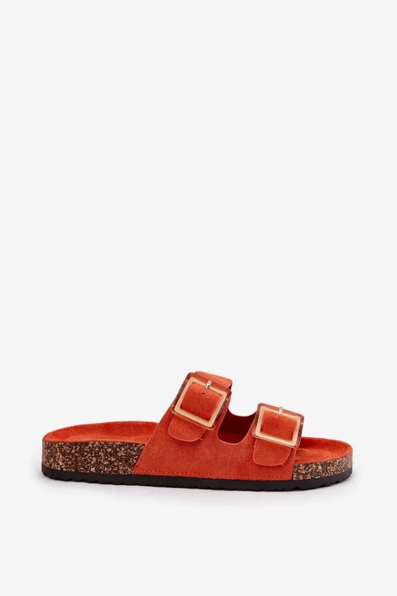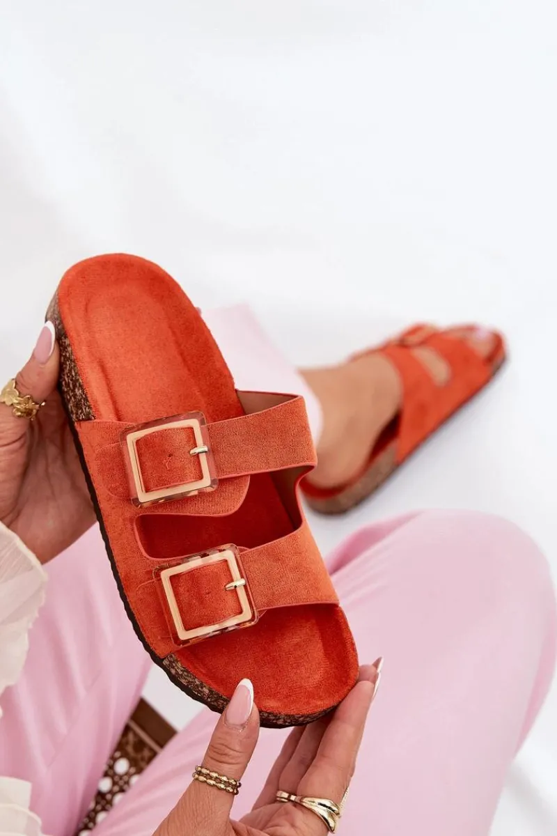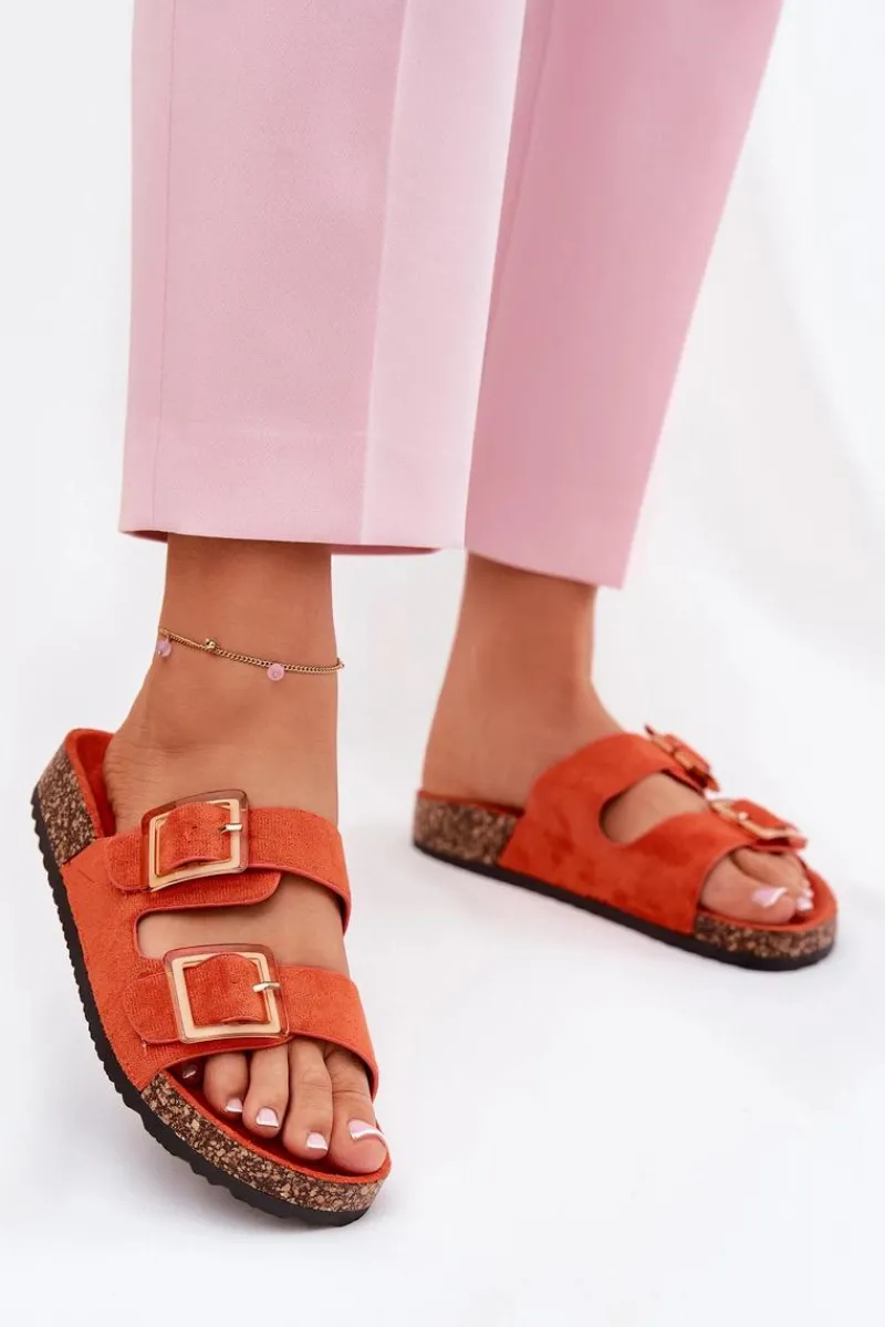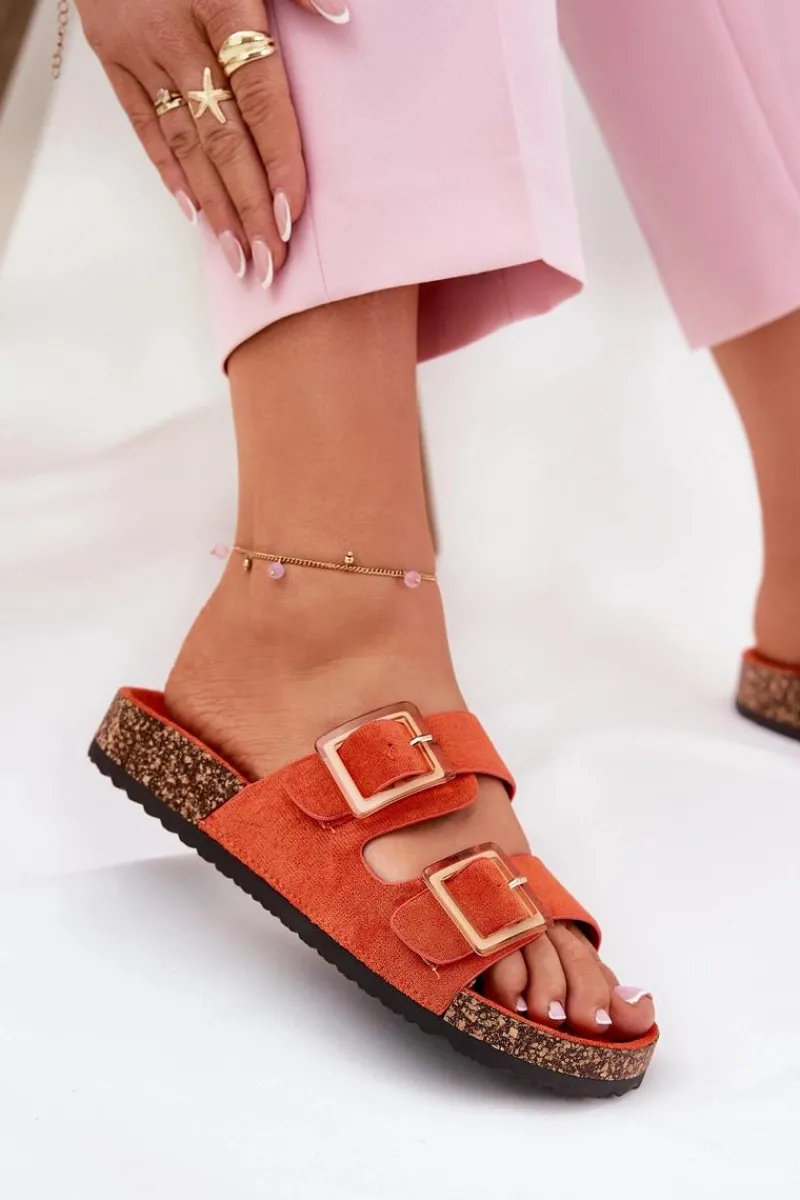 Klapki Damskie Z Klamrami Na Korkowej Podeszwie Pomarańczowe Sercele Damskie Klapki Korkowe|Klapki Na Platformie