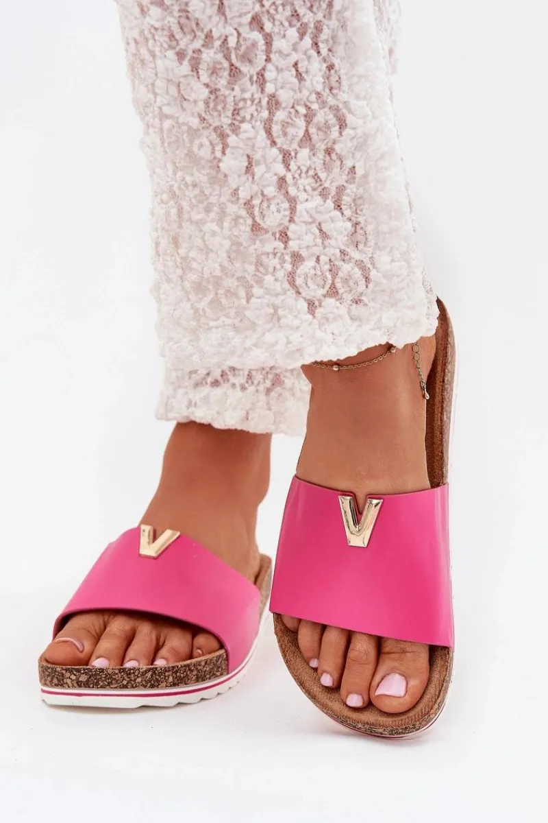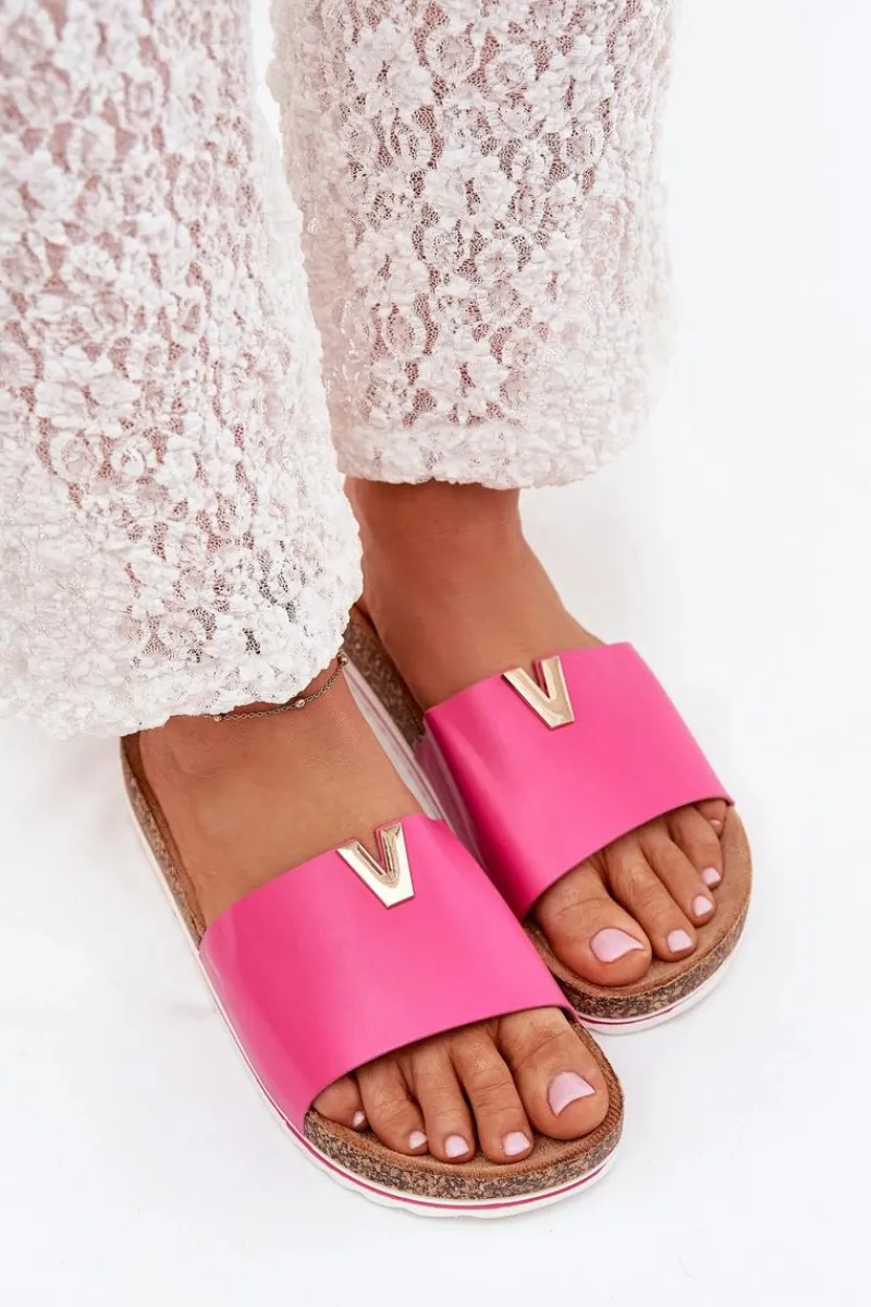 Klapki damskie z eko skóry, osadzone na korkowej platformie, to połączenie komfortu i stylu. Złoty detal w kształcie litery „V” dodaje im elegancji, a profilowana, eko zamszowa wkładka zapewnia wygodę przez cały dzień. Idealne do codziennych stylizacji, doskonale komponują się z sukienkami, spódnicami czy spodniami, łącząc funkcjonalność z modnym wyglądem. Przy wyborze rozmiaru prosimy sugerować się tabelą rozmiarów.