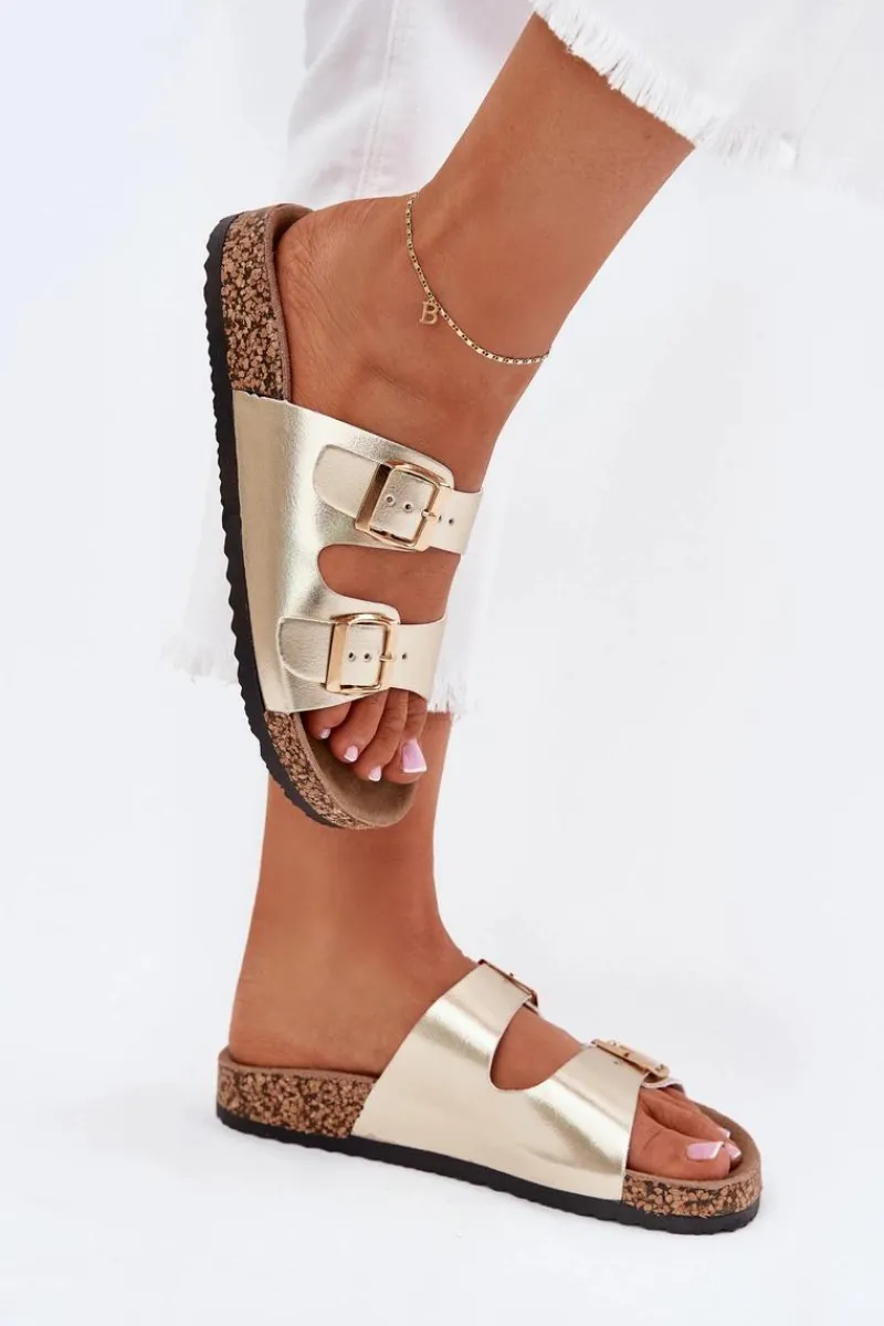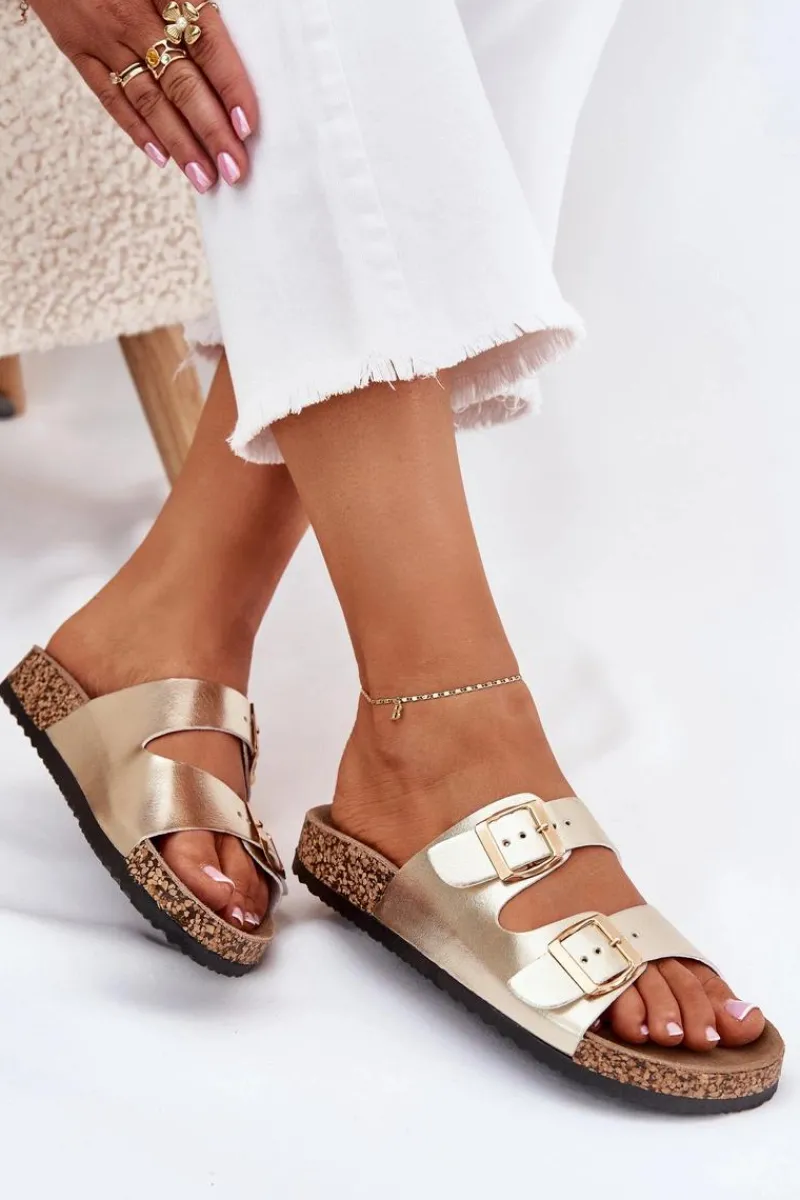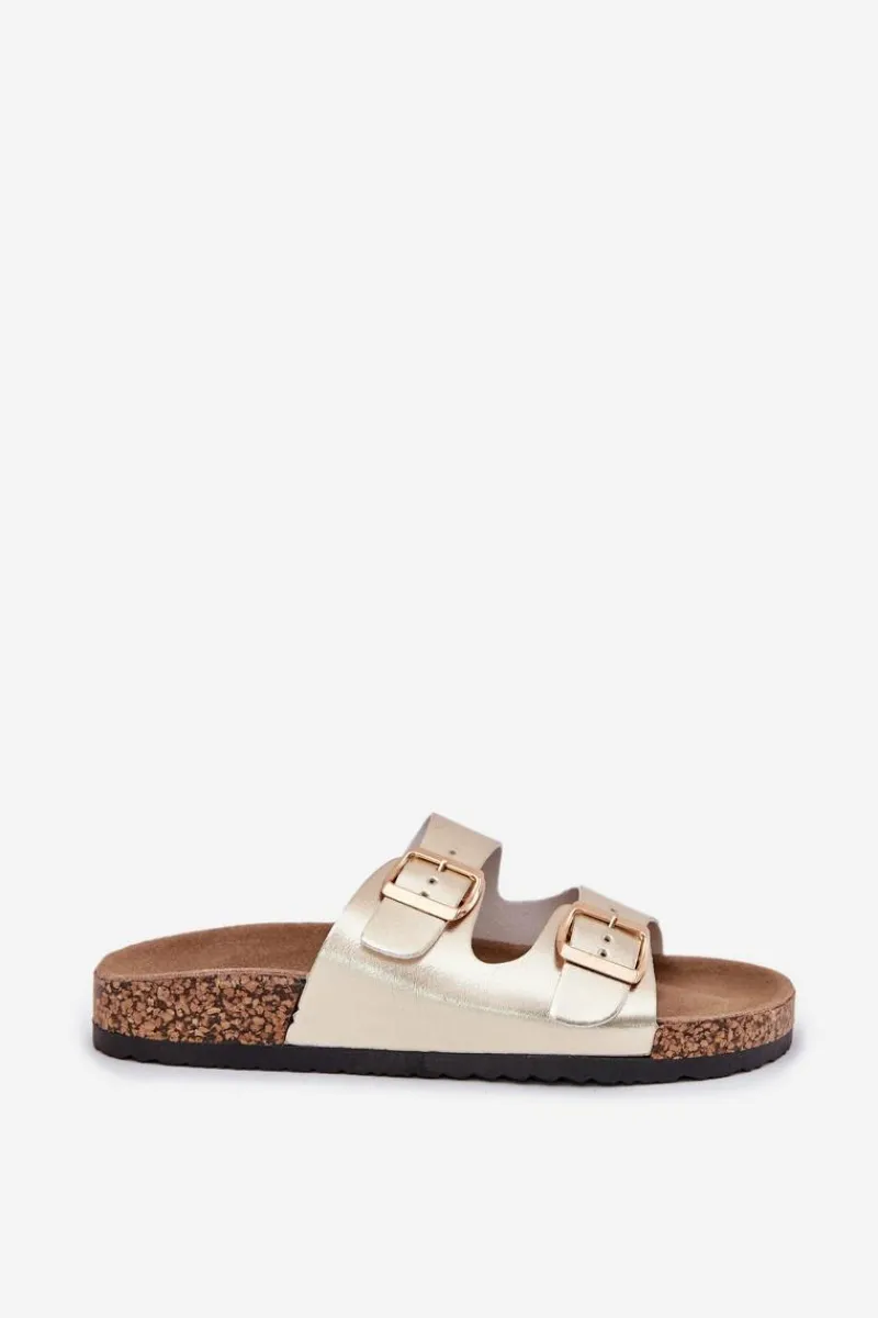 Klapki Korkowe|Klapki Na Platformie>Evento Klapki Damskie Z Klamrami Z Eko Skóry Złote Iskira