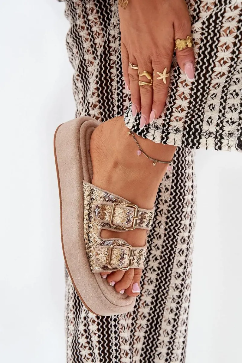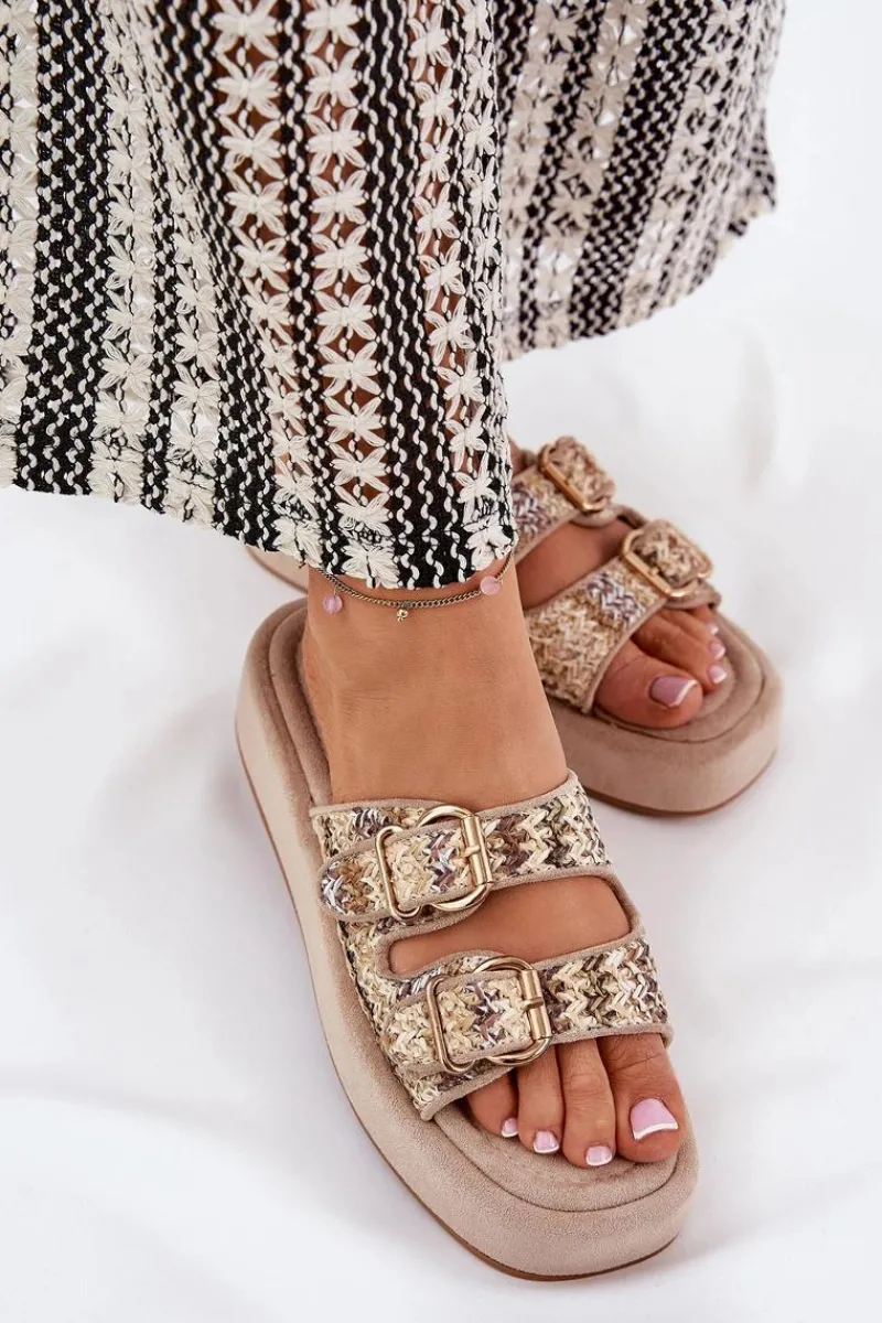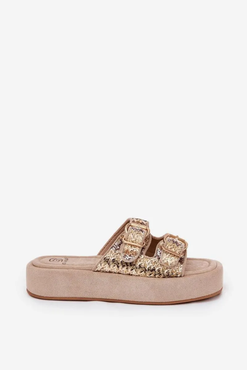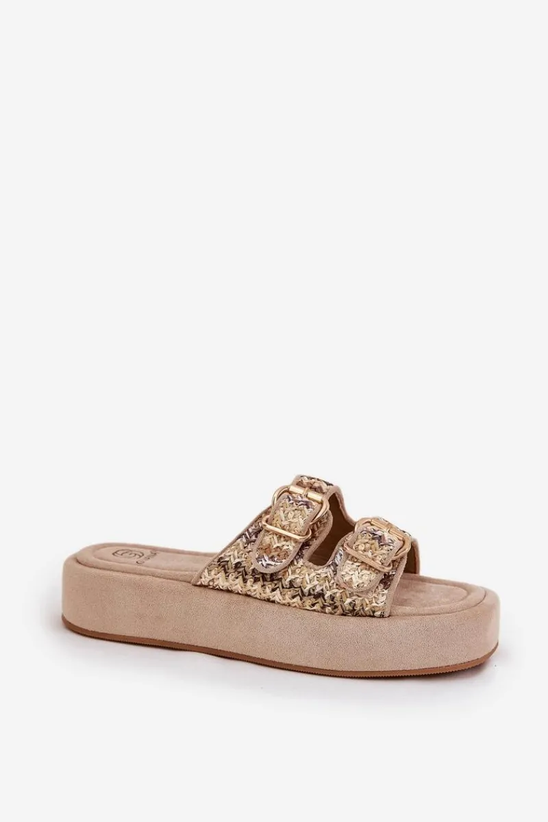 Klapki Na Platformie|Klapki Damskie Klasyczne>Boto Klapki Damskie Na Platformie Z Klamrami I Plecionką Khaki Limme Beżowy