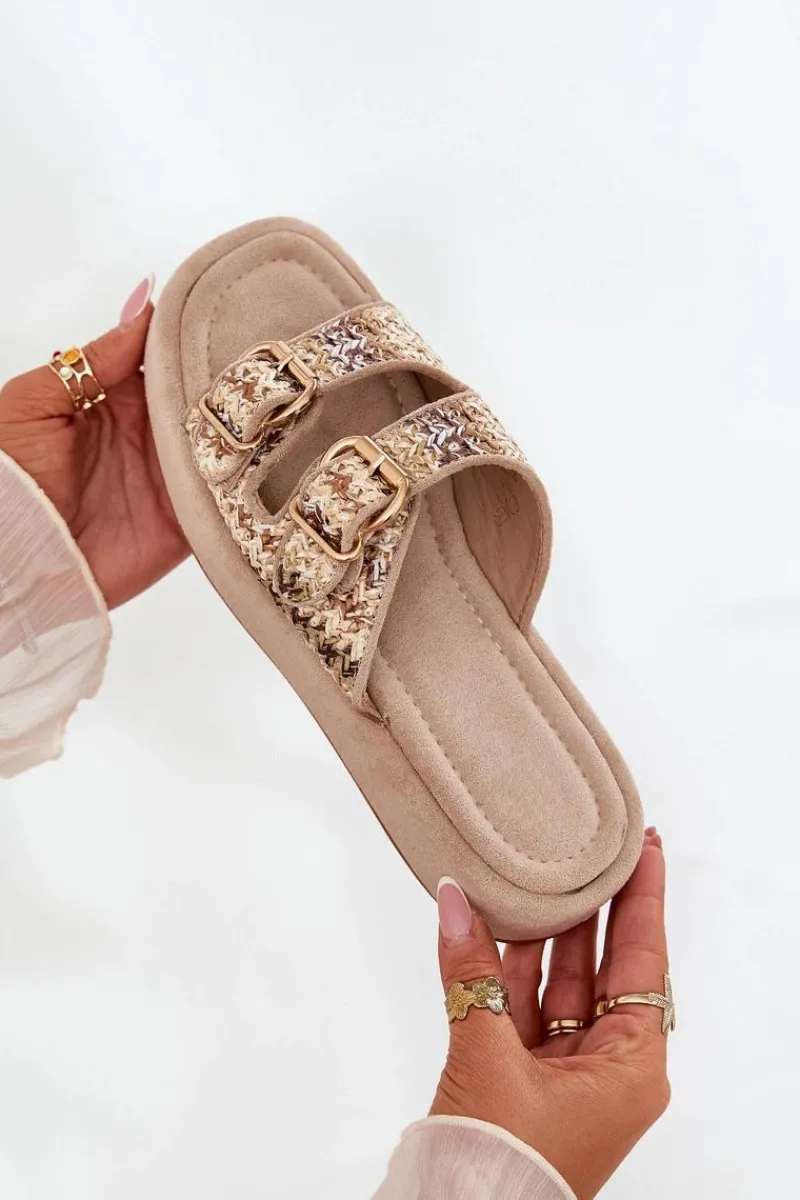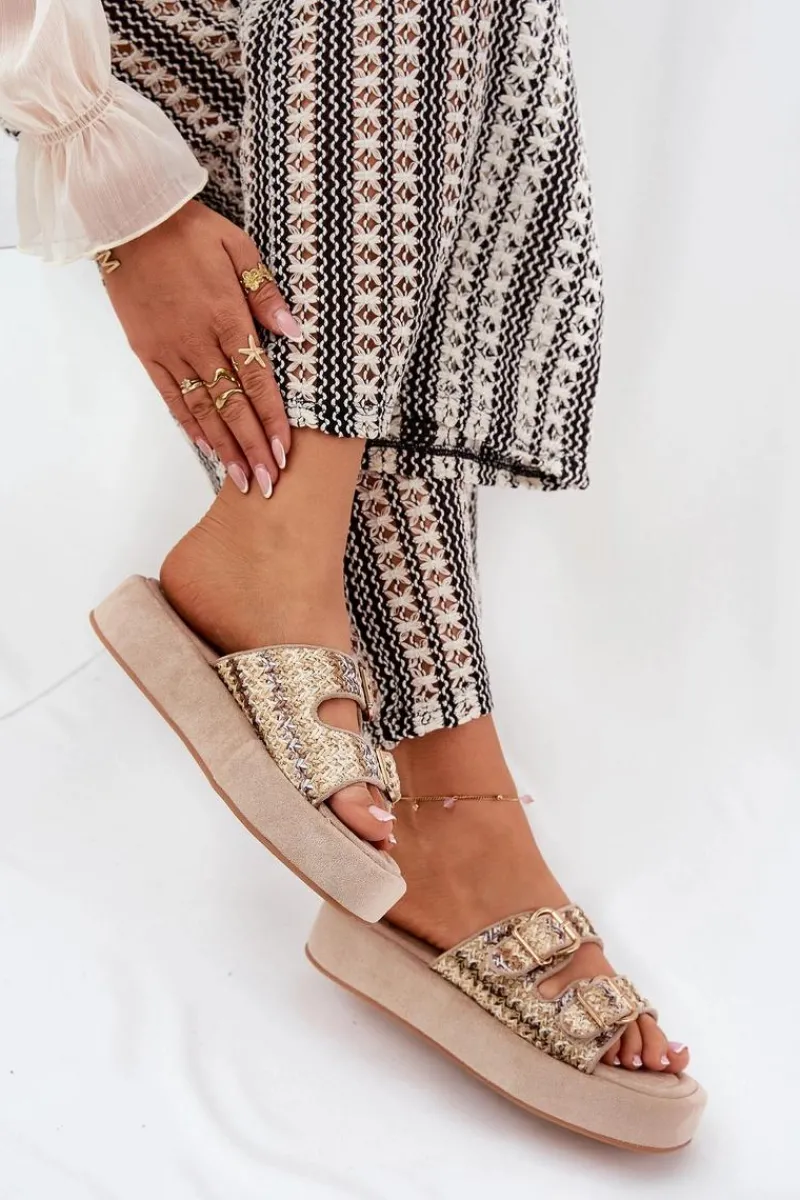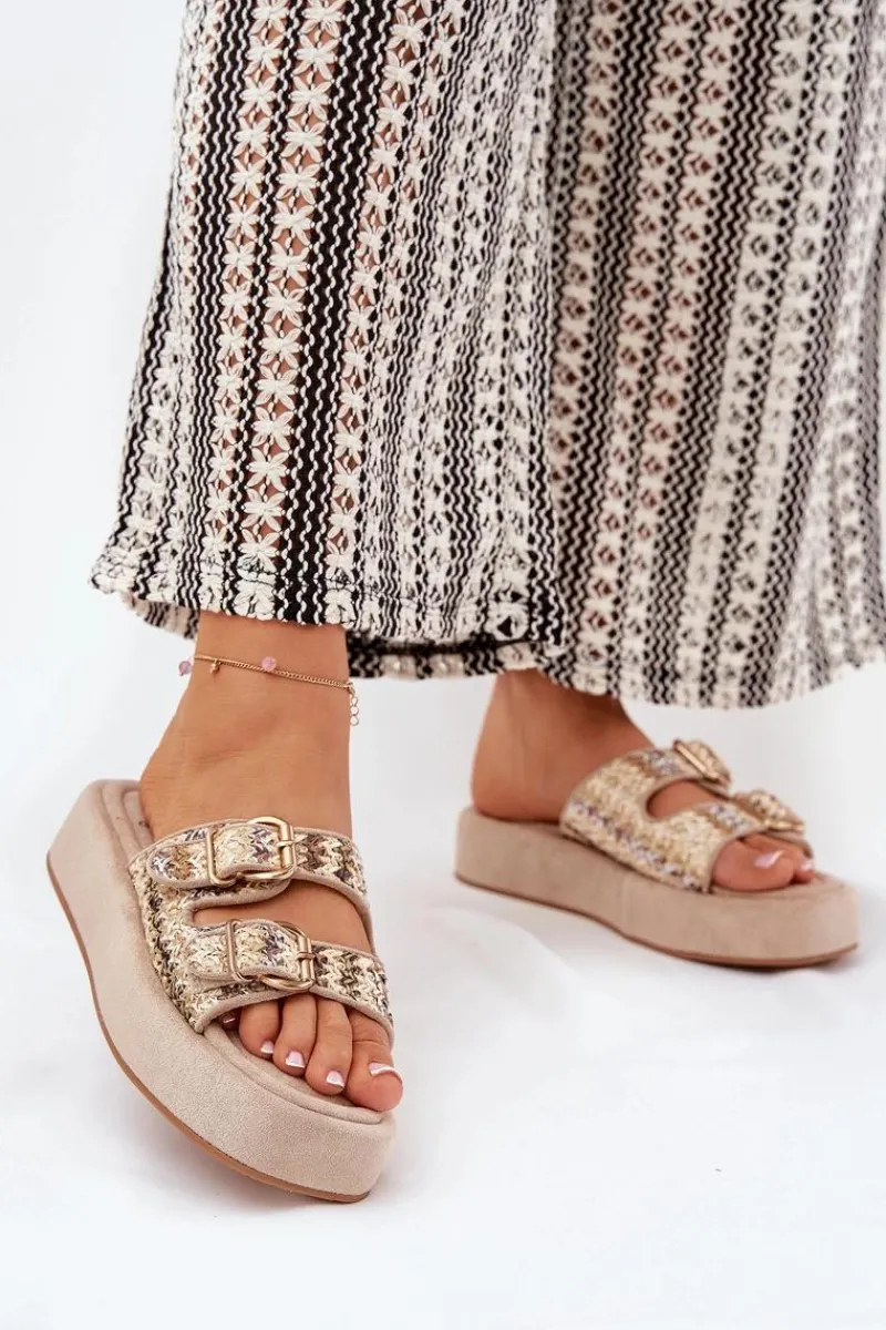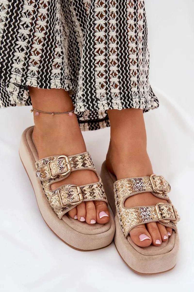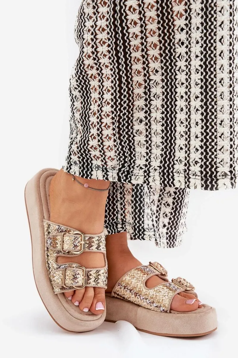 Klapki Na Platformie|Klapki Damskie Klasyczne>Boto Klapki Damskie Na Platformie Z Klamrami I Plecionką Khaki Limme Beżowy