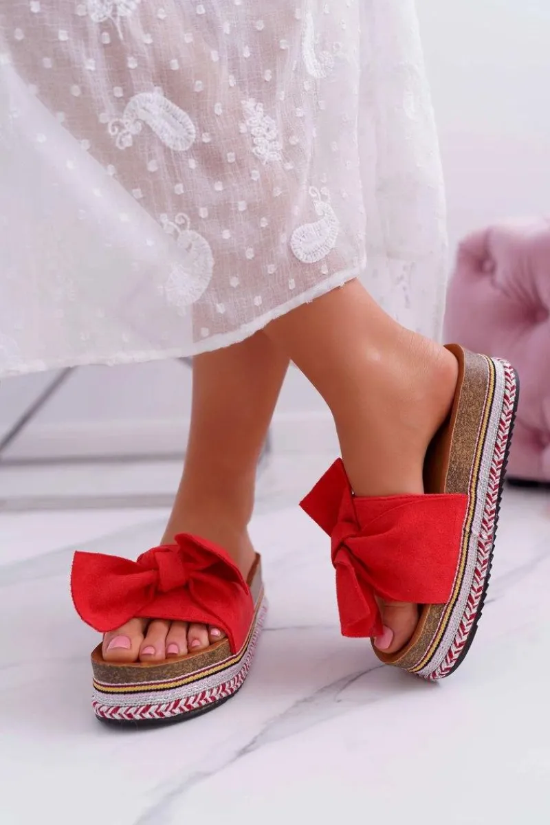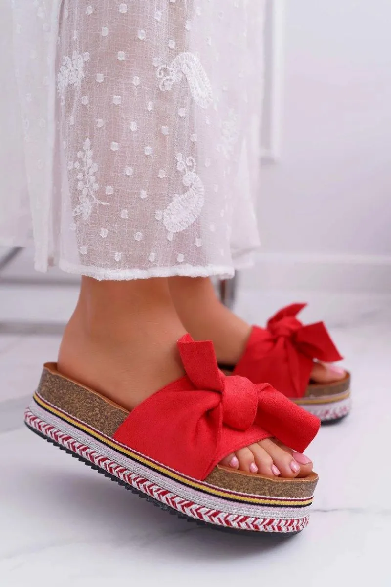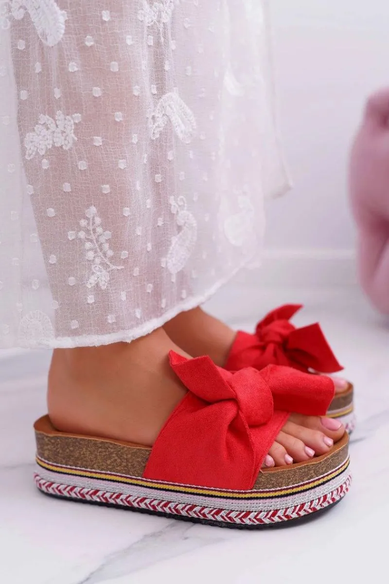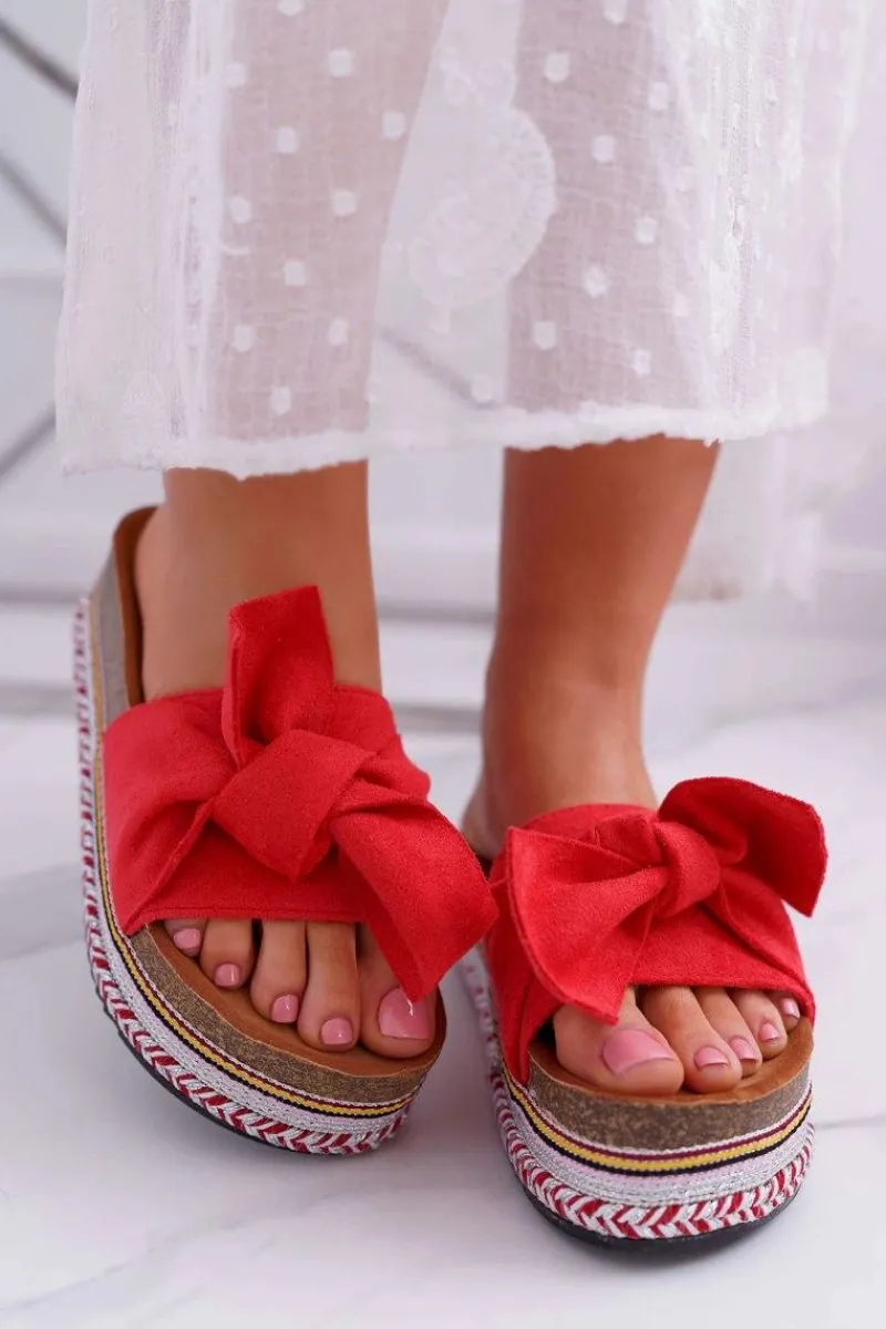 Klapki Na Platformie|Klapki Damskie Klasyczne>Boto Klapki Damskie Na Platformie Z Kokardą Czerwone Chantal