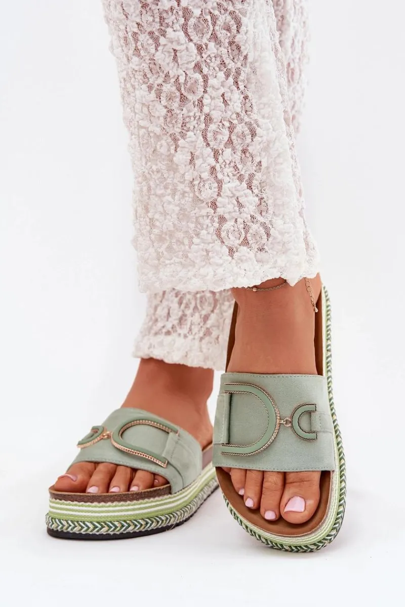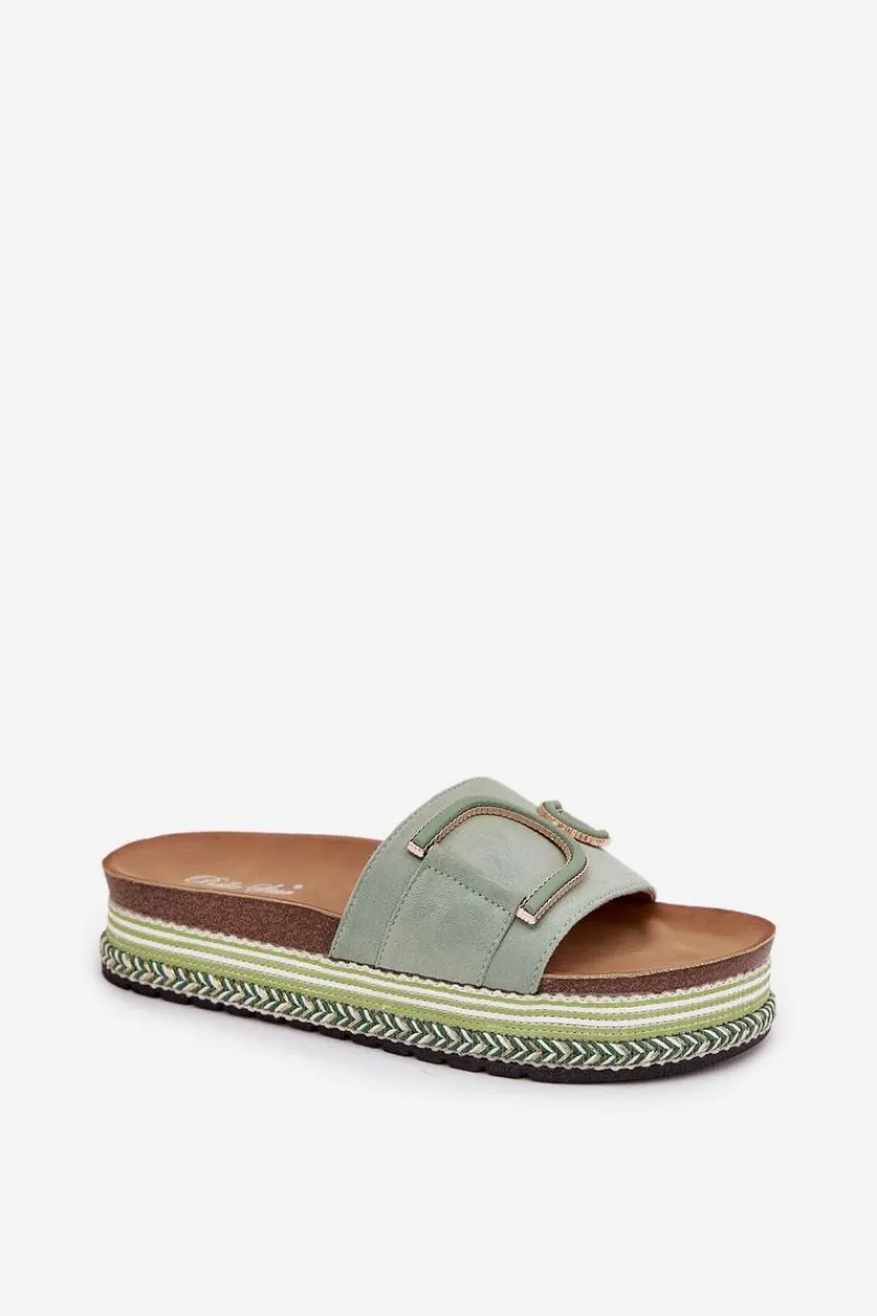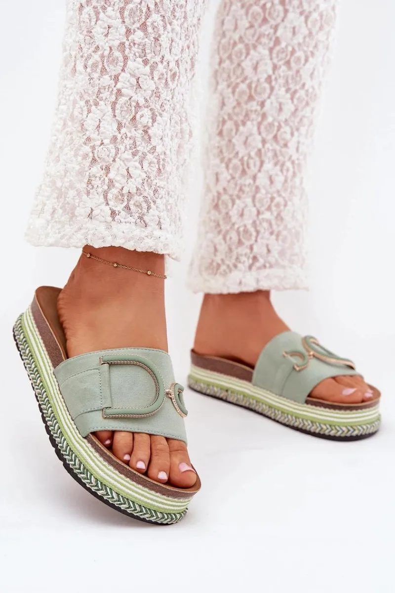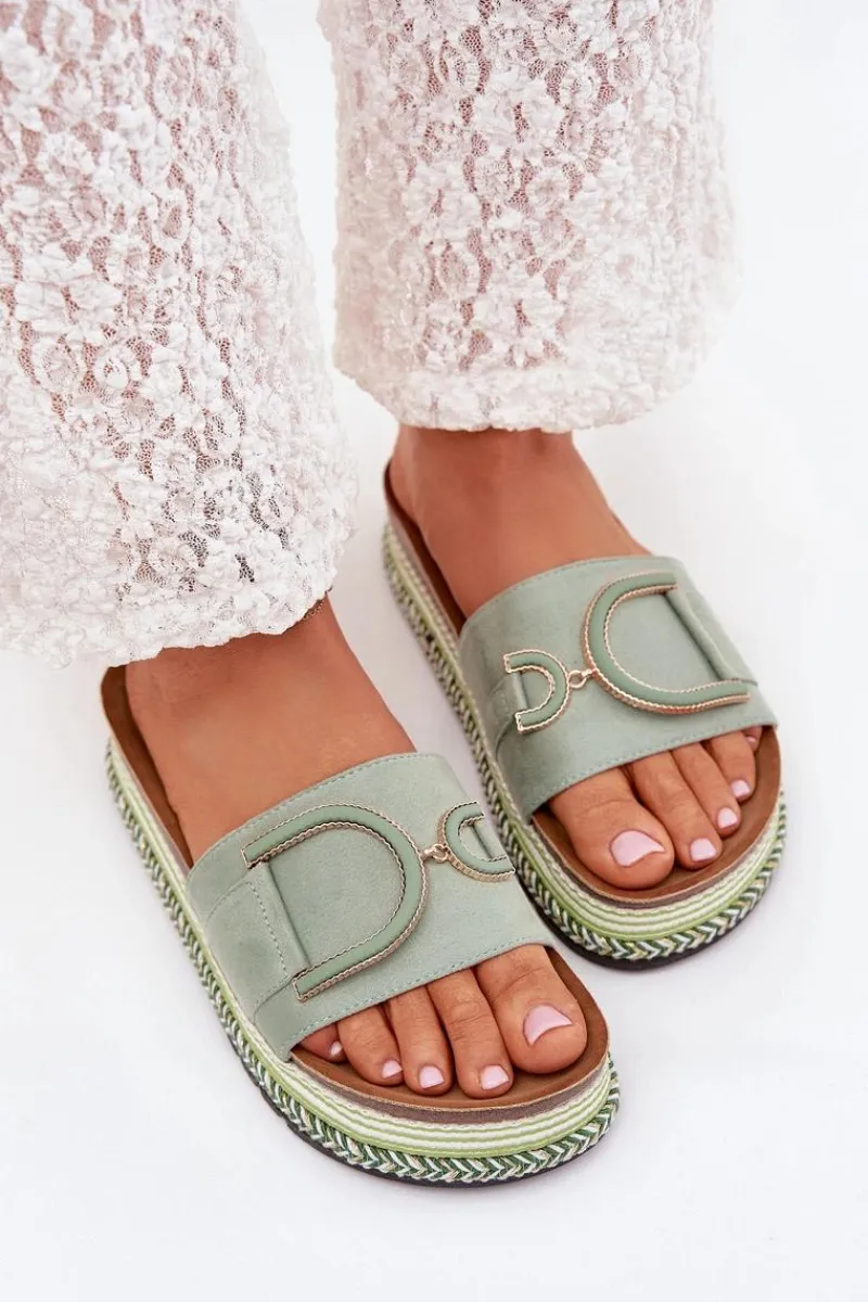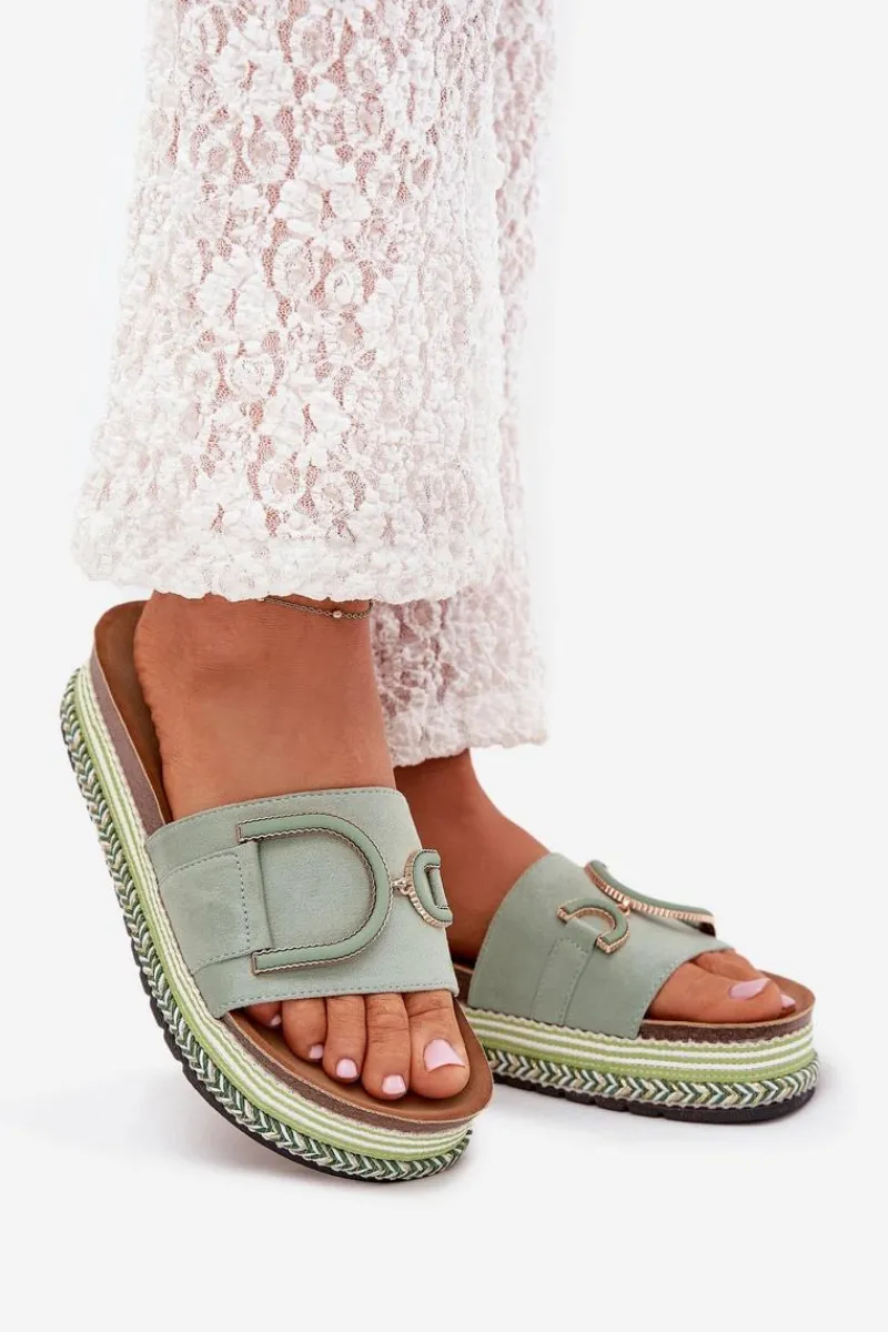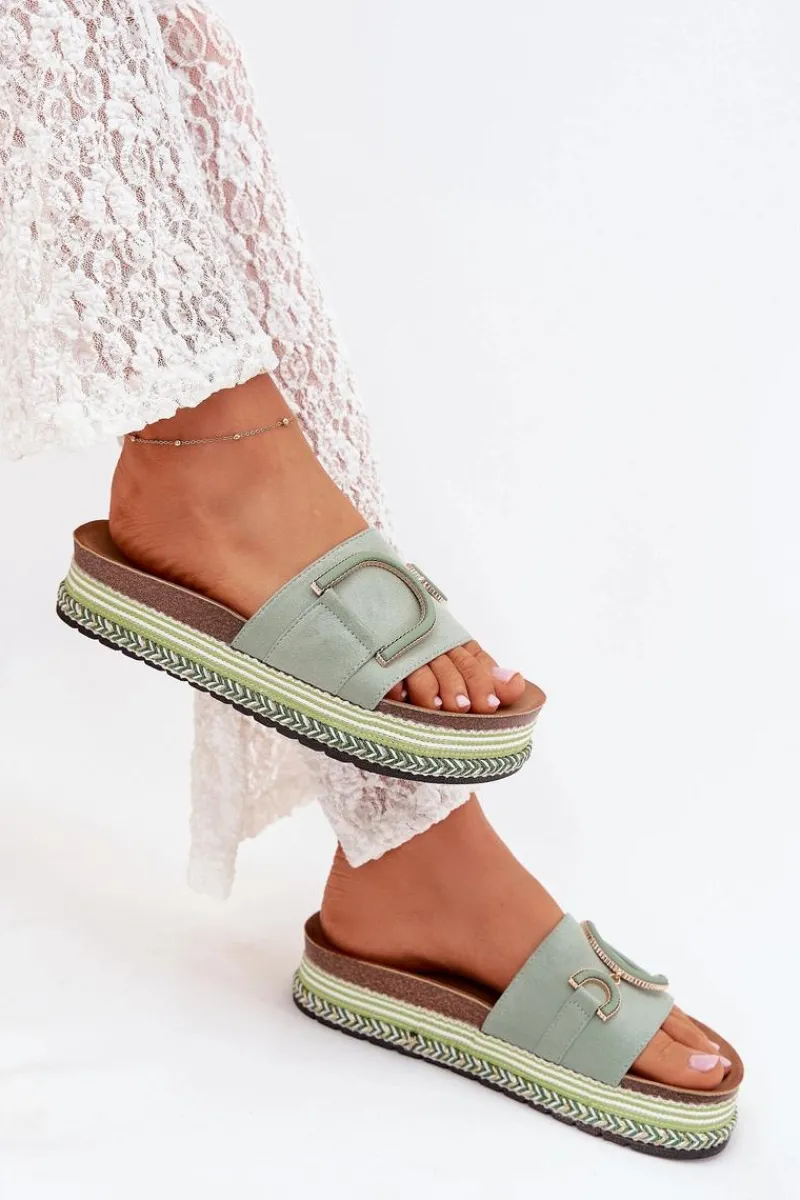 Klapki Na Platformie|Klapki Damskie Klasyczne>Boto Klapki Damskie Na Platformie Z Ozdobą Zielone Daphira