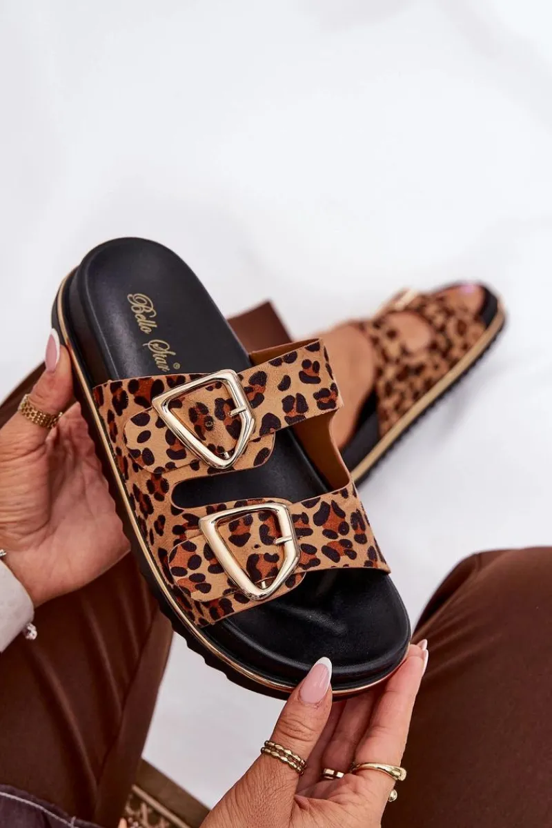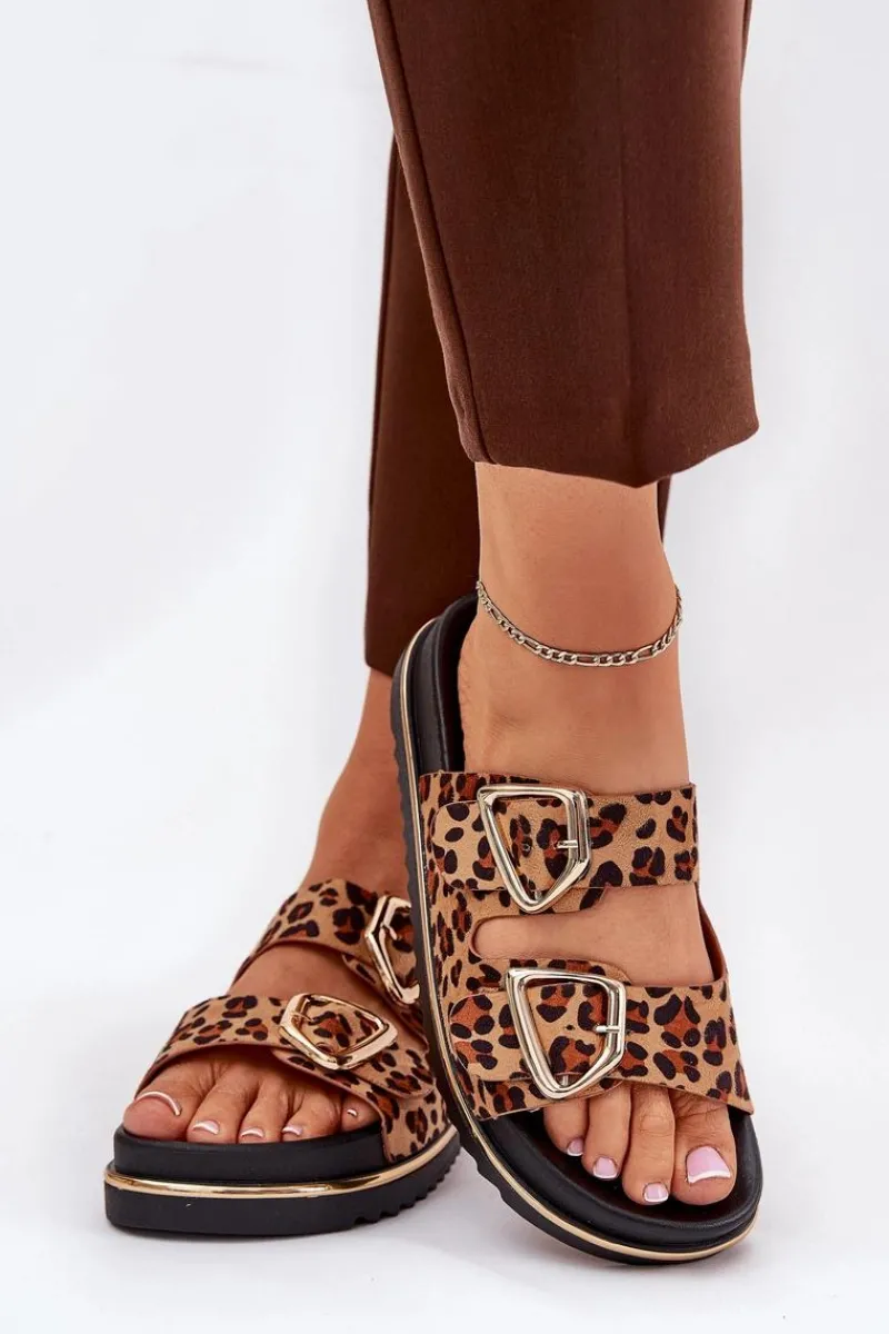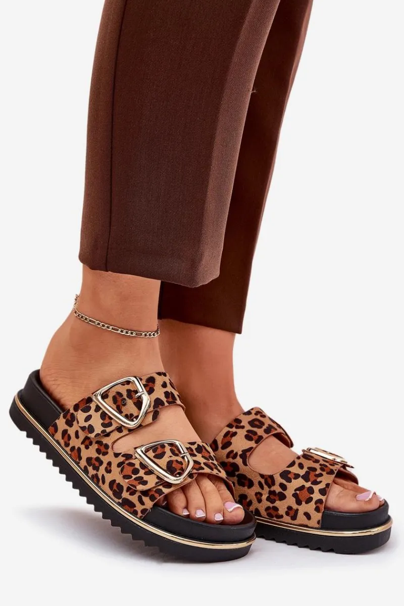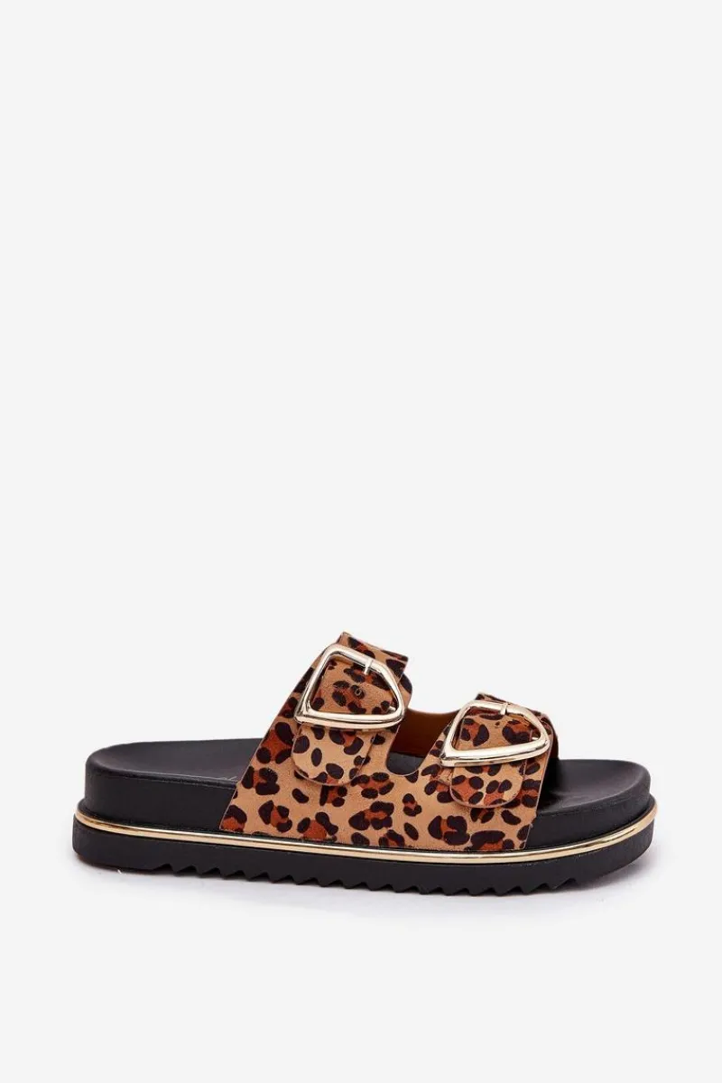 Klapki Na Platformie|Klapki Damskie Klasyczne>Boto Klapki Damskie w Panterkę Na Platformie Ze Złotymi Klamrami Brązowe Tersele