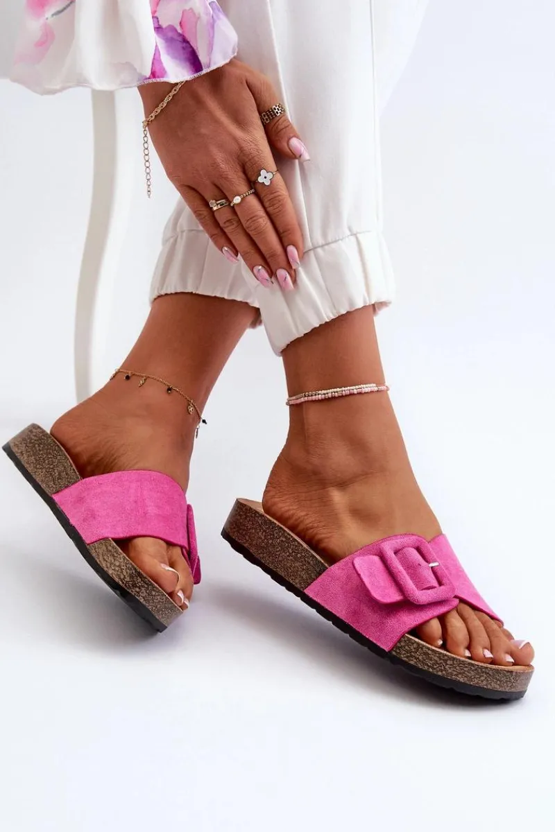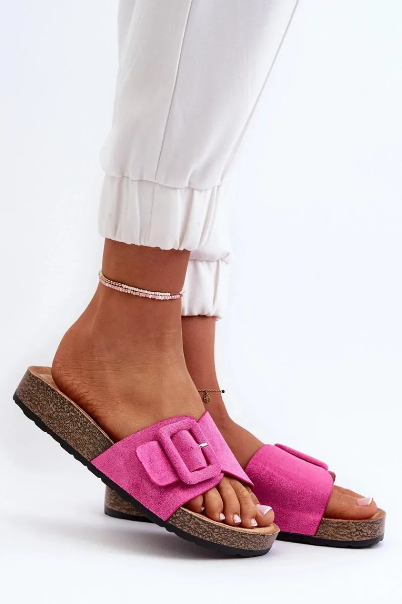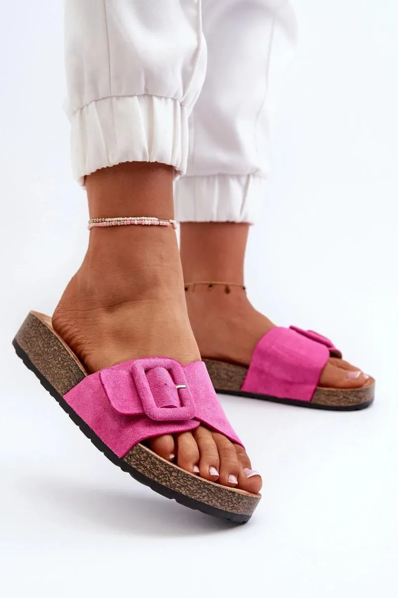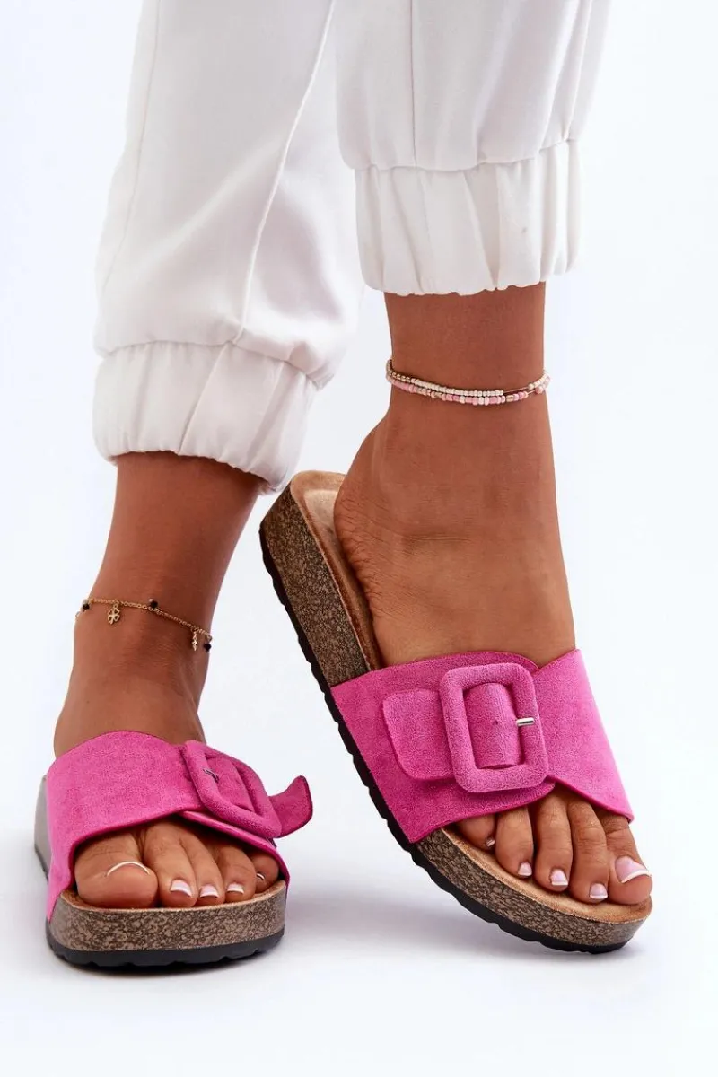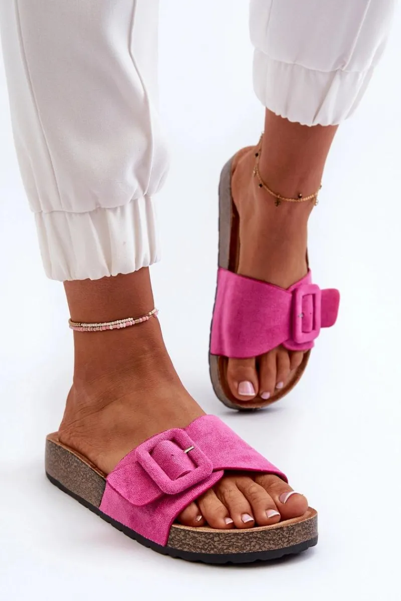 Kapki damskie wykonane z eko zamszu to doskonały wybór na lato. Pasek z klamrą nadaje im modny wygląd. Osadzone na grubej podeszwie, która zapewni stabilność i wygodę podczas chodzenia. Idealne, aby dodać do swojej letniej garderoby nutę stylu i komfortu. Przy wyborze rozmiaru prosimy sugerować się tabelą rozmiarów.