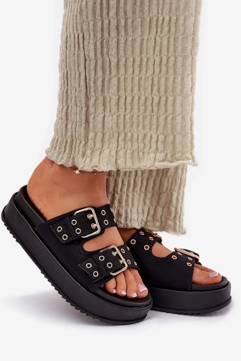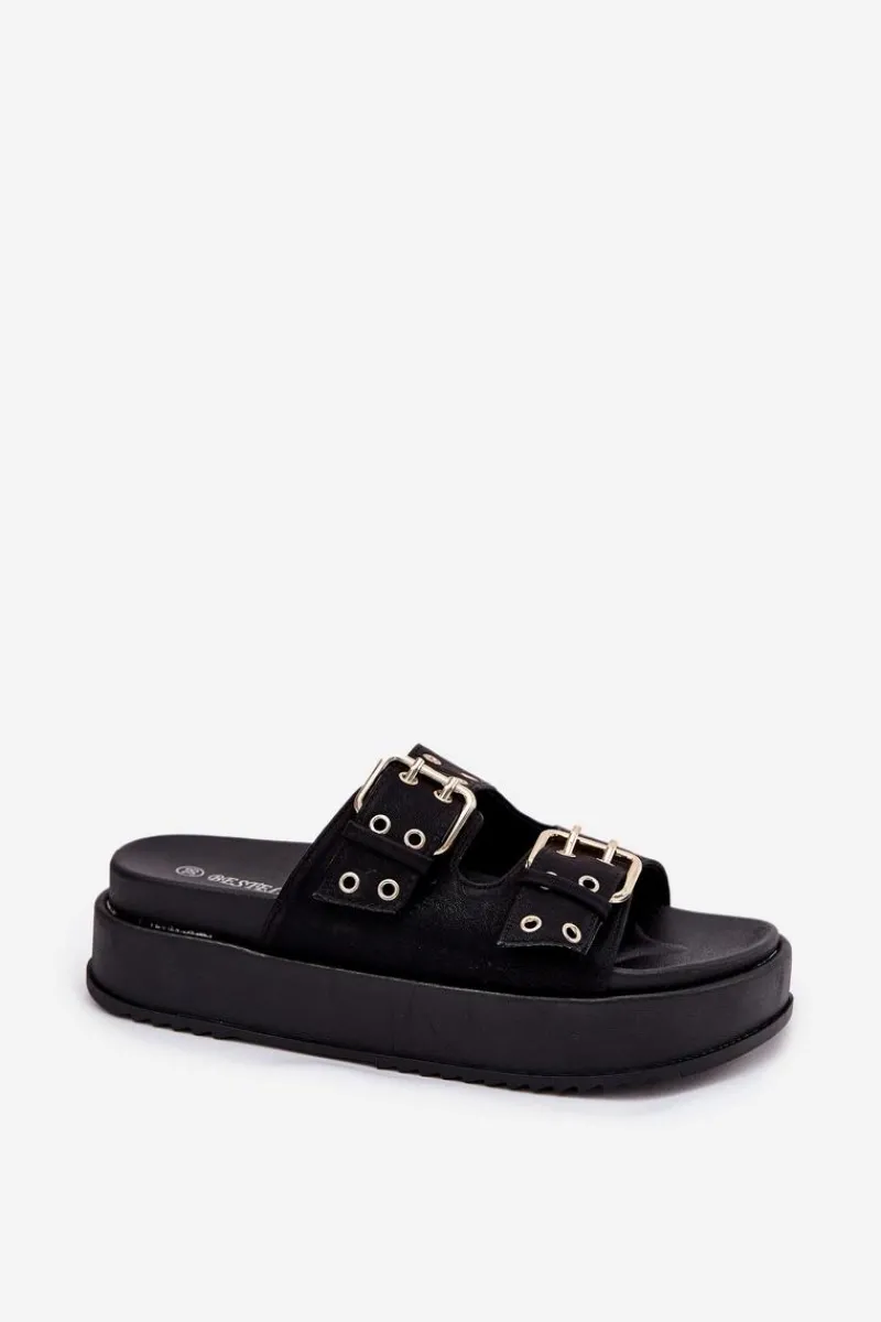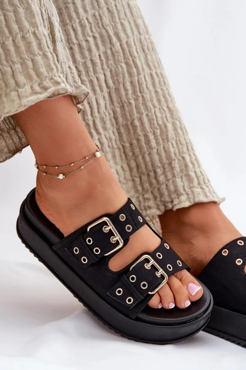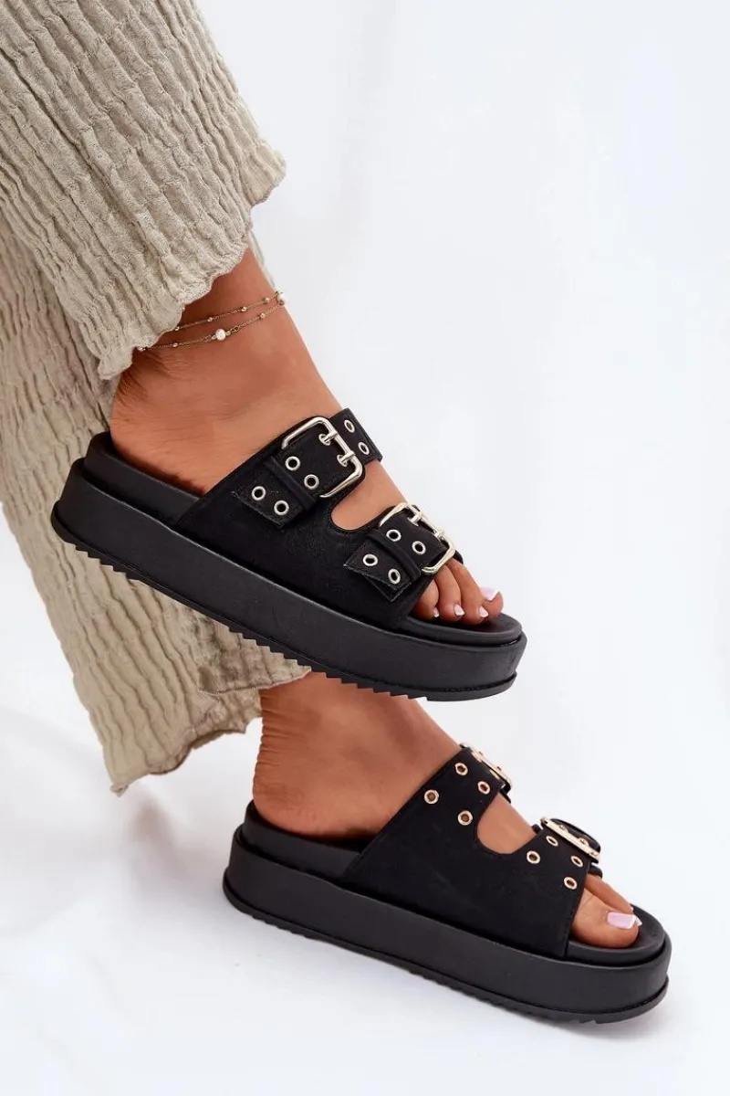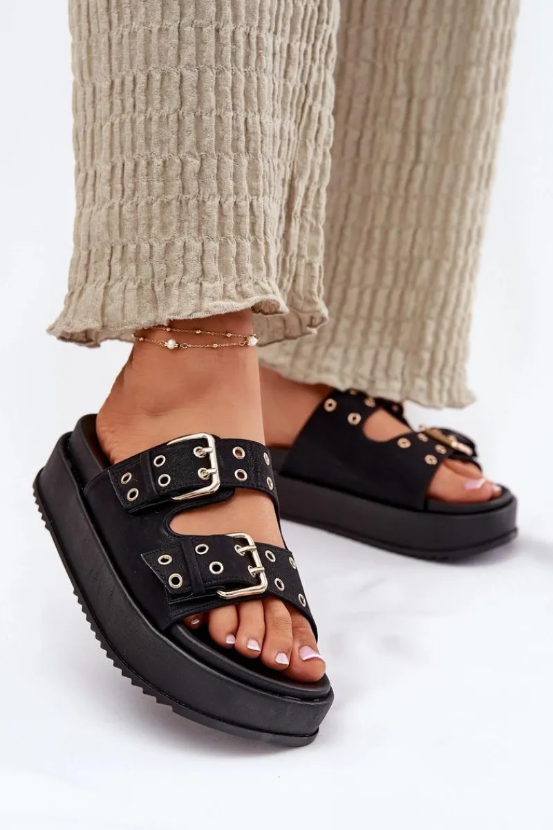 Klapki Na Platformie|Klapki Damskie Klasyczne>Boto Klapki Damskie Z Klamrami Na Platformie Czarne Nilatha