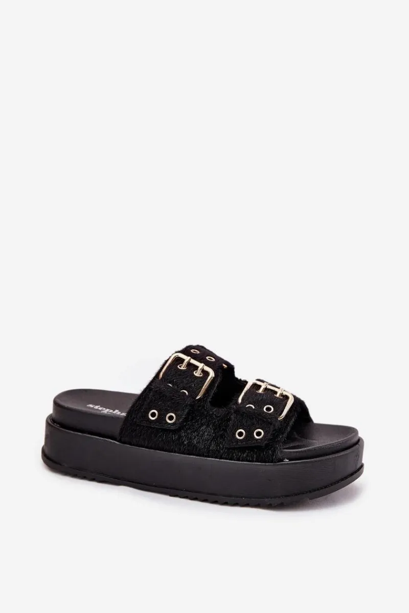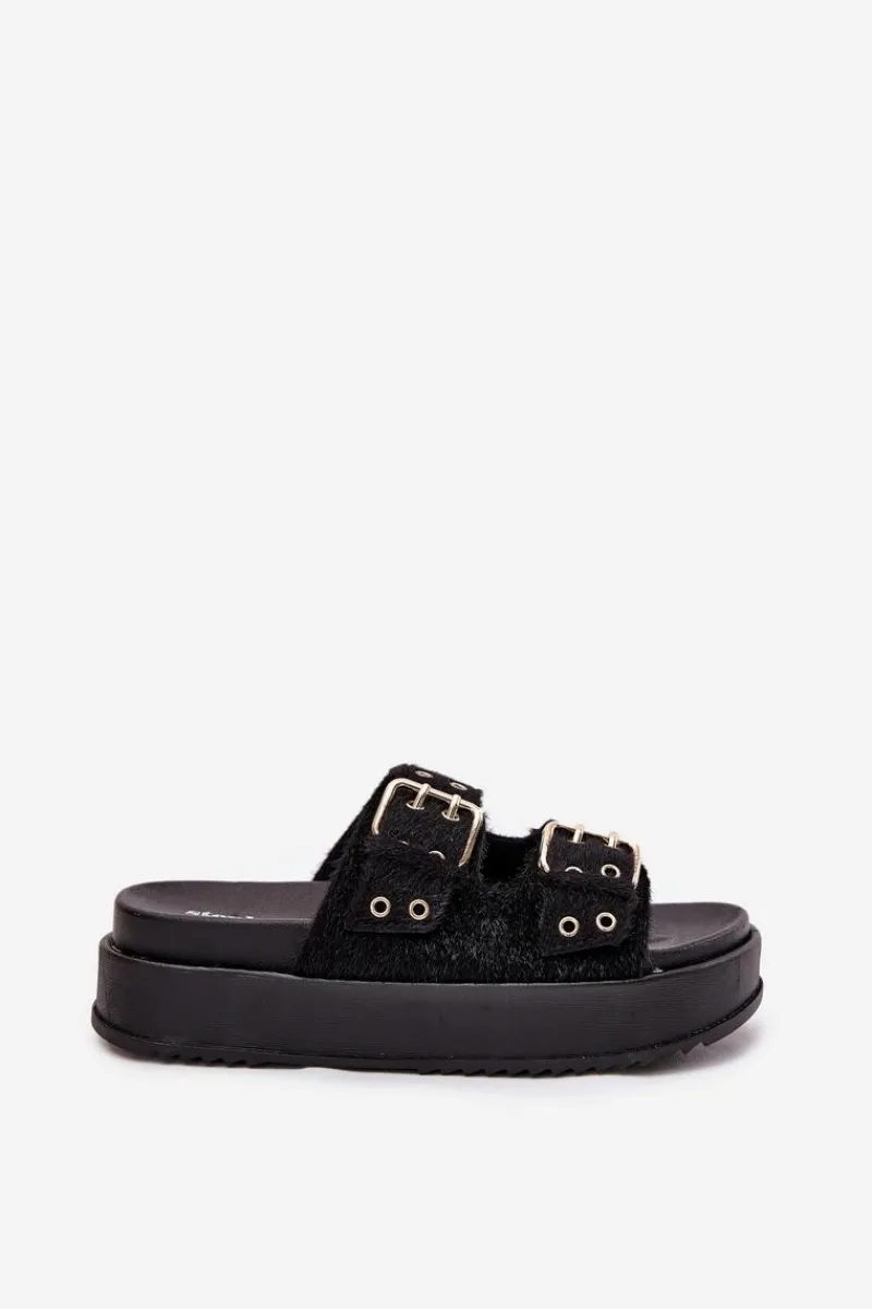 Klapki Na Platformie|Klapki Damskie Klasyczne>Boto Klapki Damskie Ze Złotymi Klamrami Na Platformie Czarne Virvania