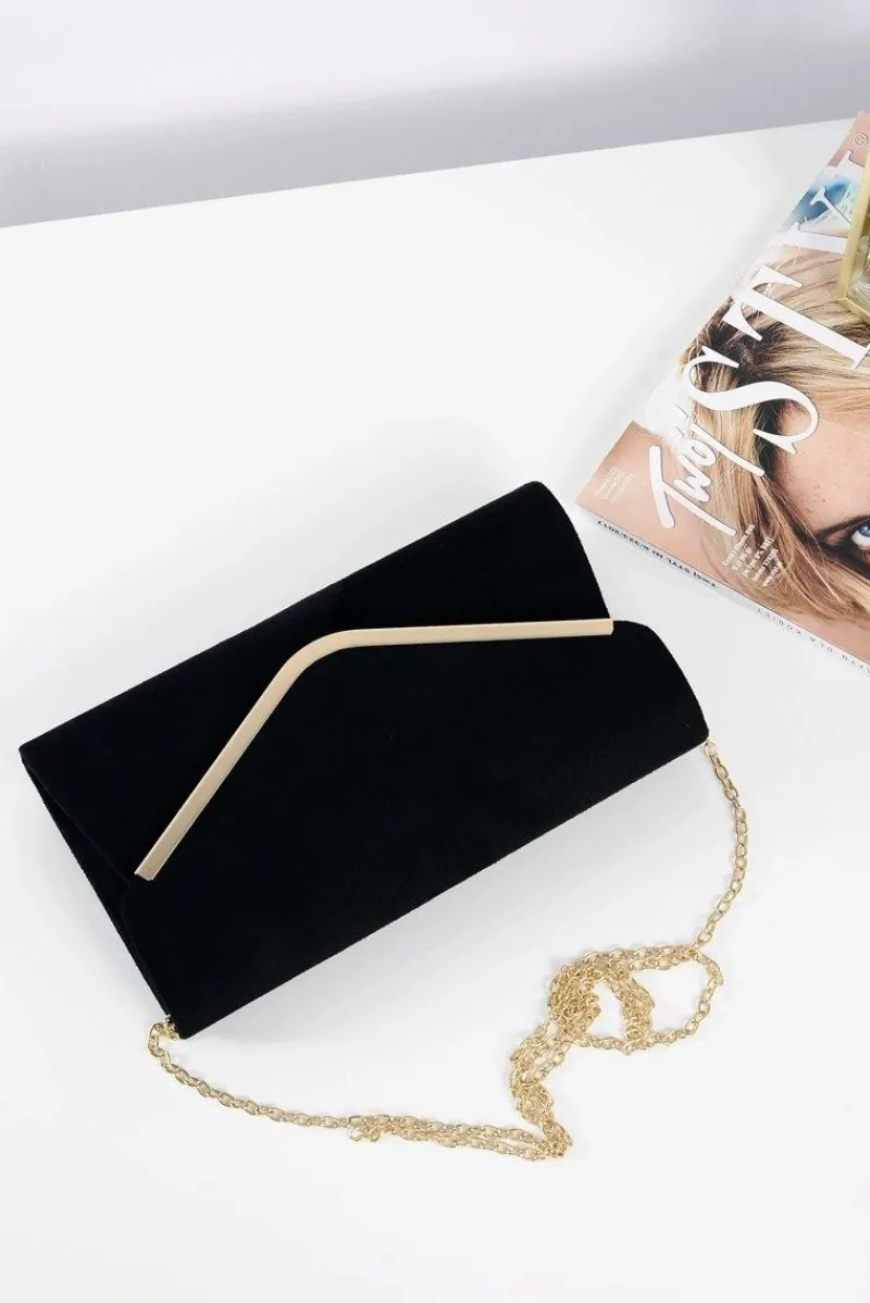 Stylowa torebka o fasonie kopertówki zaprojektowana specjalnie na wszelkie okazje! Wygodne zapinanie dzięki zatrzaskowi w złotym kolorze. Torebka posiada jedną komorę z małą kieszonką na drobne rzeczy. Wykonana z delikatnego ekozamszu. Eleganckim dodatkiem jest również złoty łańcuszek pozwalający nosić torebkę na ramieniu.