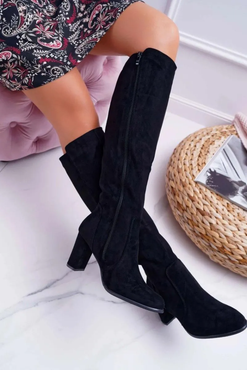 Kozaki Na Obcasie|Kozaki Zamszowe>Buty Sergio Leone Damskie Kozaki Sergio Leone Zamszowe Czarne KZ275