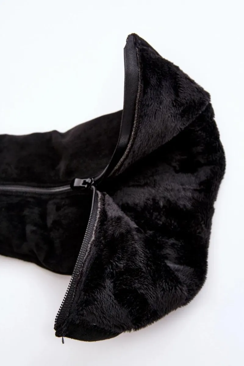 Kozaki damskie wykonane z eko zamszu. Cholewka przed kolano ozdobiona małymi błyszczącymi dżetami. Osadzone na masywnej platformie. Środek ocieplony kocem obuwniczym. Noski zaokrąglone. Dodatkowo kozaki posiadają usztywniony zapiętek. Zapinane suwakiem. Z pewnością wykorzystasz je do wielu stylizacji. Przy wyborze rozmiaru prosimy sugerować się tabelą rozmiarów.