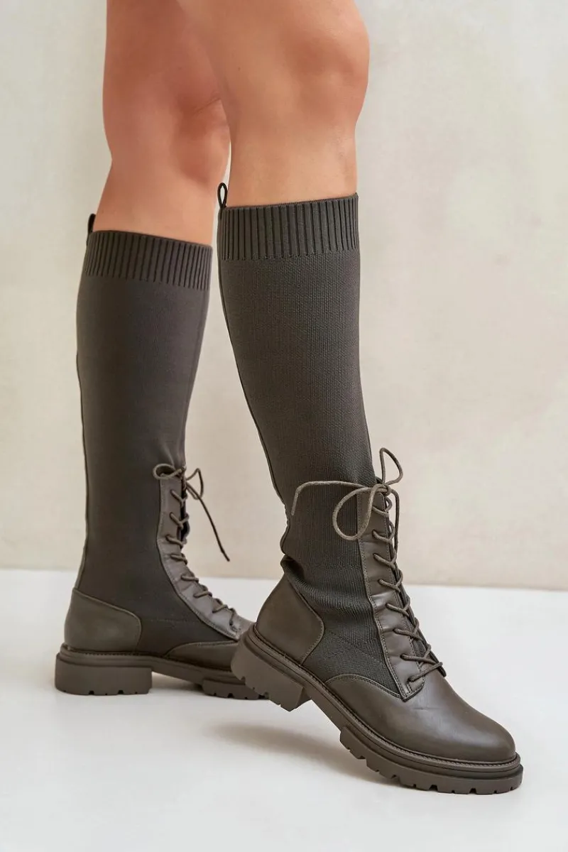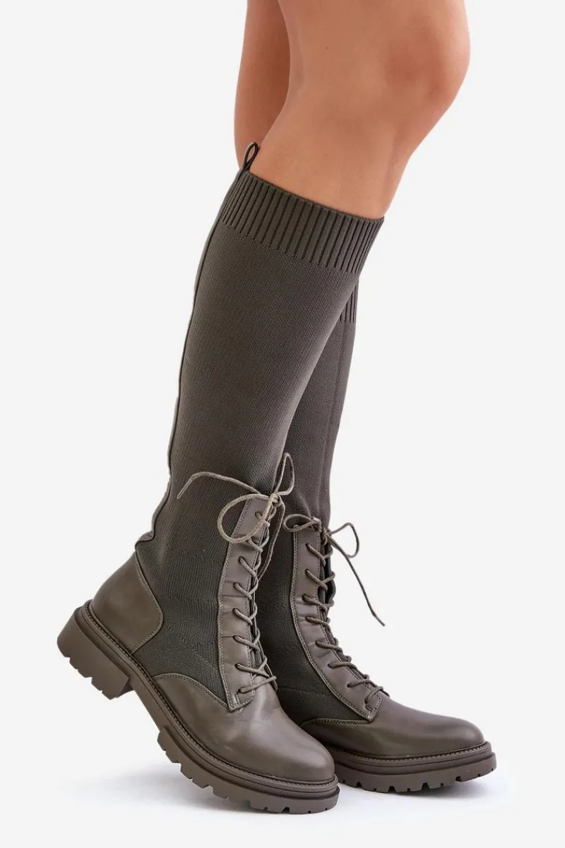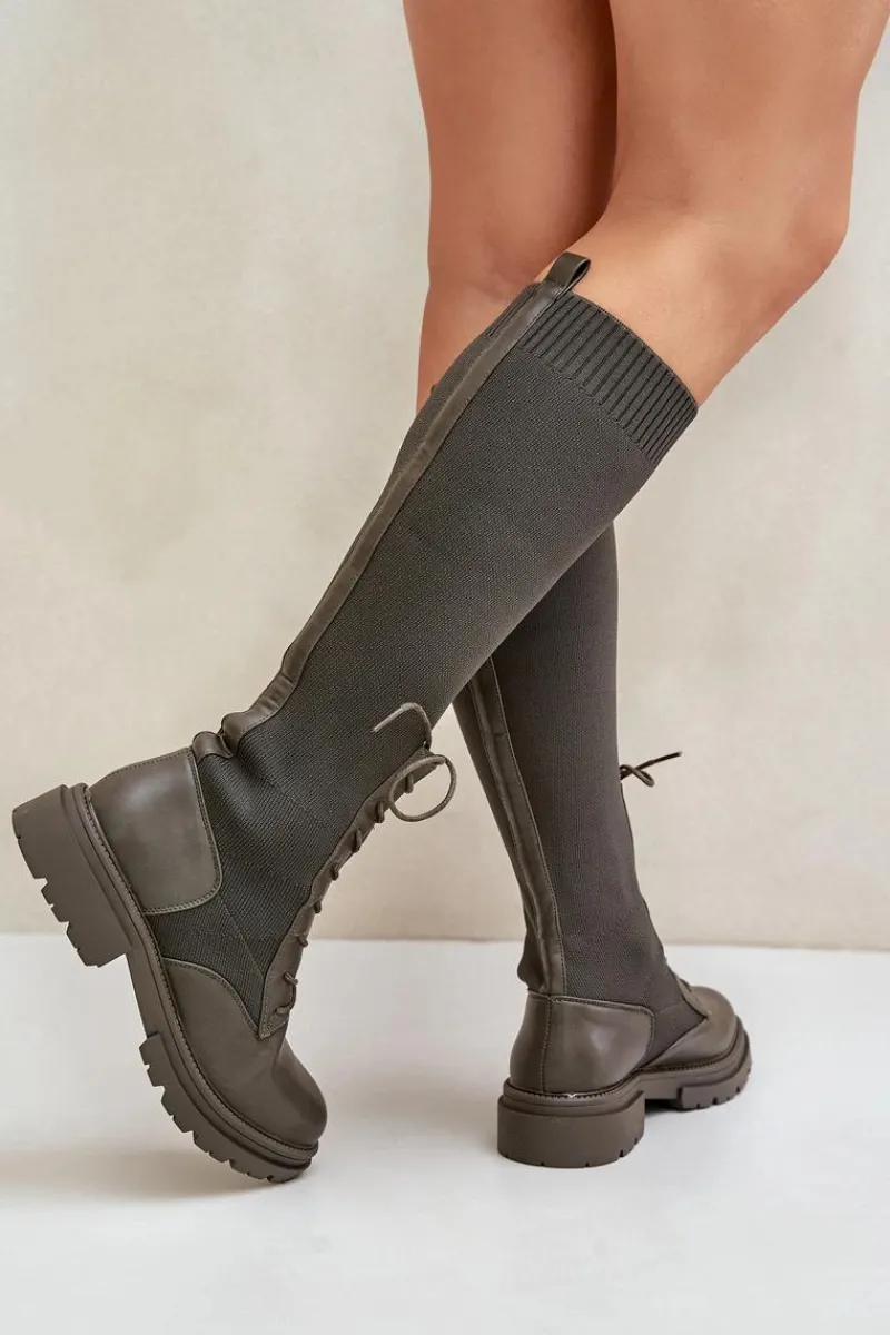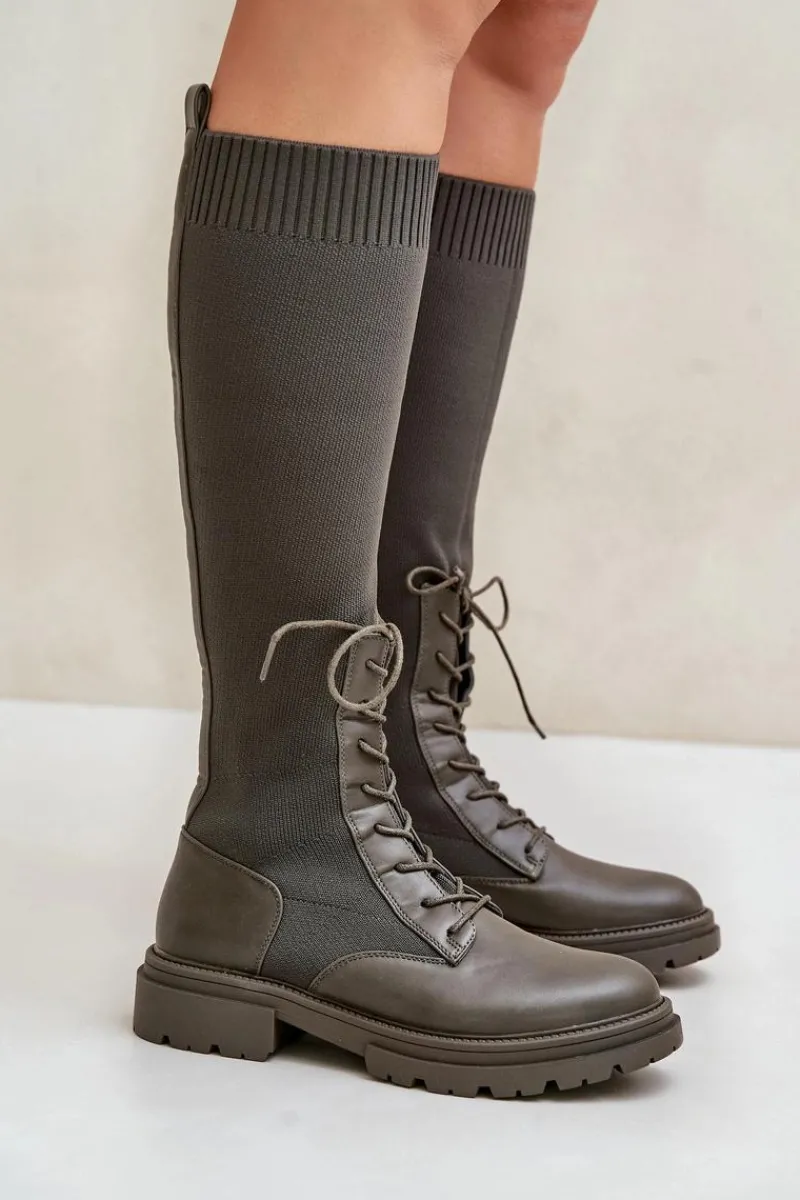 Kozaki Ocieplane|Kozaki Wiosenne>Boto Wsuwane Kozaki Ze Skarpetkową Cholewką Ciemnozielone Iranel Zielony