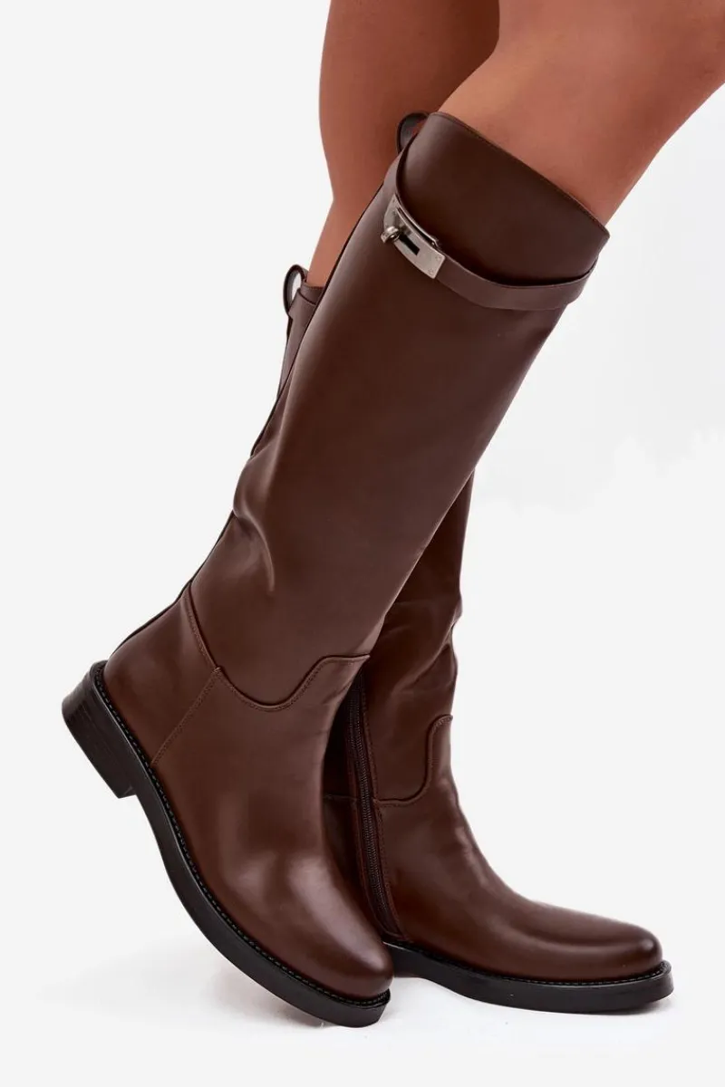 Kozaki damskie wykonane z eko skóry to stylowa i praktyczna propozycja na chłodniejsze dni. Model osadzony na płaskim obcasie zapewnia wygodę podczas codziennego noszenia, a zapięcie na zamek ułatwia zakładanie i zdejmowanie. Zaokrąglone noski podkreślają klasyczny charakter obuwia, dzięki czemu kozaki doskonale komponują się z wieloma stylizacjami. Wnętrze ocieplone wyłącznie na wysokości stopy gwarantuje komfort i ciepło bez nadmiernego przegrzewania. U góry cholewki znajduje się ozdobny pasek z eleganckim detalem, który dodaje całości subtelnego uroku. To model, który świetnie sprawdzi się w zestawieniu z sukienkami, spódnicami, legginsami czy dopasowanymi jeansami typu skinny, tworząc kobiecy i stylowy look idealny na sezon jesienno-zimowy. Przy wyborze rozmiaru prosimy sugerować się tabelą rozmiarów.