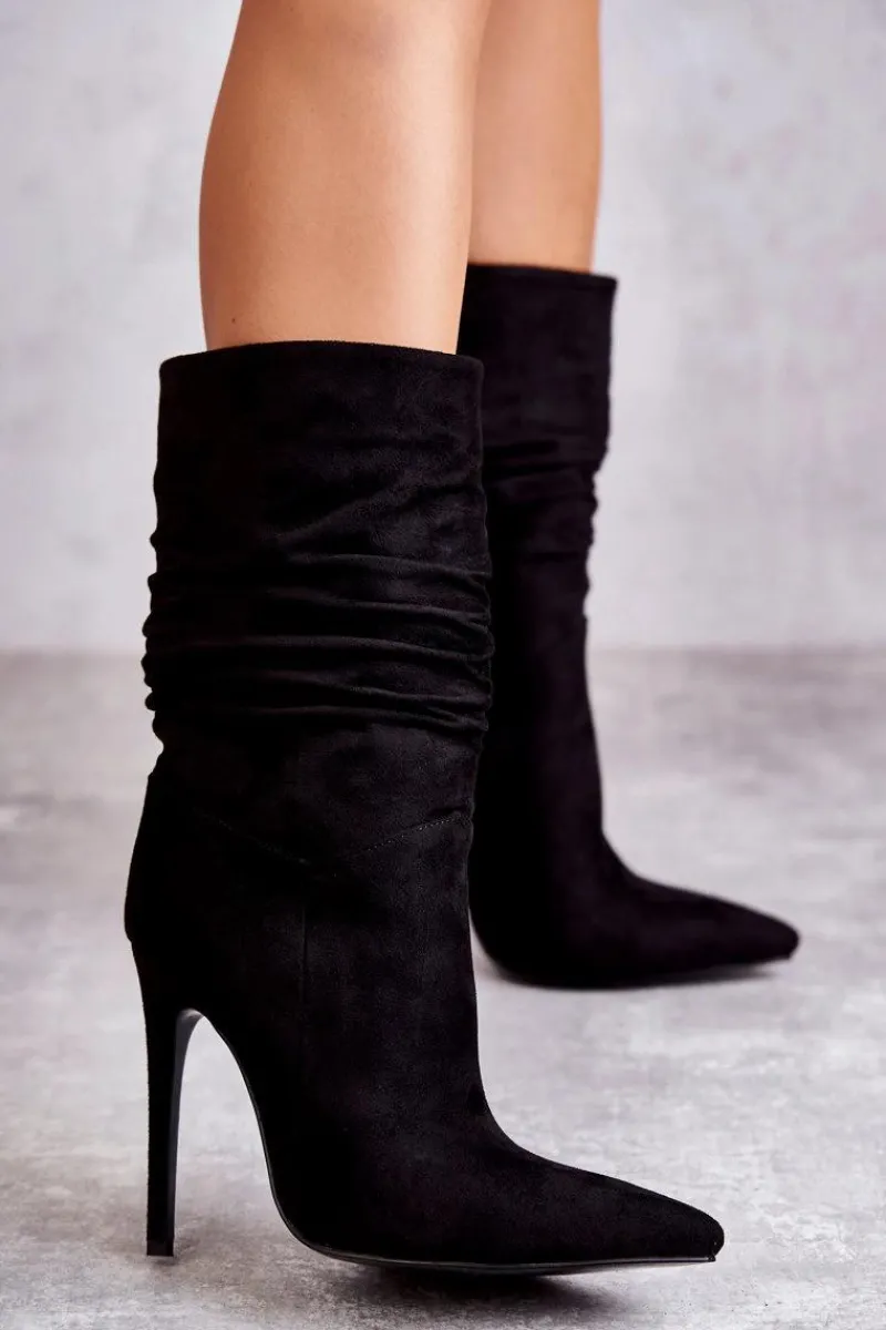 Kozaki Przed Kolano|Kozaki Na Obcasie>Boto Damskie Marszczone Botki Kozaki Czarne Laguna Czarny
